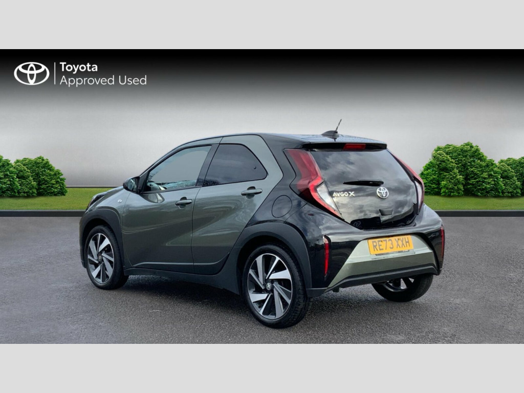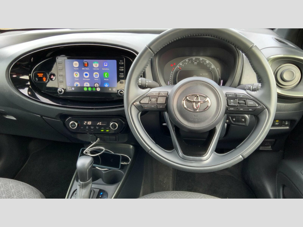 This 2023 Toyota Aygo X Automatic Edge presents an exceptional ownership proposition with its Toyota manufacturer approval and a comprehensive 12 month warranty for your peace of mind. This Euro 6 compliant 1.0L petrol model boasts an incredibly low mileage of just 11,500 miles, further supported by a full service history, with its last service completed on 2025-09-03 at 9,557 miles. The MOT remains valid until November 2026, ensuring its roadworthiness for years to come. Inside, you'll find a host of convenient features including automatic air conditioning, Bluetooth connectivity, and a reversing camera for easier parking. The steering wheel is equipped with controls for intelligent adaptive cruise control, part of the advanced Toyota Safety Sense suite. The Aygo X Edge stands out with its impressive fuel economy, achieving a remarkable 57 miles per gallon, which indicates it is more economical than many other vehicles in its class. Furthermore, its low insurance group and low CO2 emissions highlight its cost effectiveness and environmental consideration, making it a sensible choice for everyday driving. Toyota Approved Warranty: If your vehicle is under 10 years, or 100,000 miles, a minimum of 12 months warranty is included, with an additional 12 month/10,000 miles warranty with every qualifying service (up to 10 years or 100,000 miles, whichever comes first). Fabric - Black and Cardamom Green, 18in Alloy Wheels - 4-Double-Spoke - Bi-Tone Dark Grey - Machined-Face, 3-Spoke Leather Steering Wheel, 4.2in Colour Multi-Information Display Screen, 8in Toyota Touch Multimedia System, ABS - Anti Lock Braking System with Emergency Brake-Light System - EBS, Adjustable Speed Limiter -ASL- Switch on Steering Wheel, Analogue Speedometer, Audio Switches on Steering Wheel, Auto Headlights, Auto Wipers, Automatic Air Conditioning, Automatic Headlight Cut-Off, Black Door Moulding, Black Insert on Steering Wheel, Black Wheel Arch Moulding, Bluetooth Connectivity, Boot Door Scuff Plate, Centre Room Light, Child Safety Door Locks, Chrome Interior Door Handles, Chrome Surround on Air Conditioning Button, Clean Air Filter, DAB Digital Radio, Digital Tachometer, Door Handles - Body Coloured, Door Mirrors - Gloss Black, Eco Driving Indicator, Electric Power Steering - EPS, Floor Mats, Follow Me Home Headlights, Front 12V Power Outlet, Front Bumper - Body Coloured, Front Fog Lights, Front LED Light Guide, Front Passenger Airbag On-Off Switch, Front Power Windows, Front Seat Belt Reminder, Gloss Black Upper Front Grille, HAC - Hill Start Assist Control, Headlight Cut-Off Reminder, Headlights - Halogen, Headrests - Front - Deco Art, ISOFIX Child Restraint System - 2x Rear, Intelligent Adaptive Cruise Control Switch on Steering Wheel, Key Reminder Warning, Lane Departure Alert with Switches on Steering Wheel, Manual Headlight Levelling, Manual Tilt Steering Wheel, Manually Reclining Driver and Passenger Seat, Manually Sliding Driver and Passenger Seat, Multi-Info Switches on Steering Wheel, Pollen Air Filter, Power Back Door, Power-Adjustable - Electric - Heated Door Mirrors, Pre-Collision System with Emergency Steering Assist, Privacy Glass - Rear Side Windows, Rear Headrests x2, Rear Seat Belt Reminder, Rear Window Defogger - De-Icer, Rear Window Wiper, Remote Power Door Locks, Reversing Camera, Roof - Head Lining Adhesive Head Lining, Seats - 50-50 Split Folding Rear, Seats - Drivers Height Adjustment, Short Antenna, Smartphone Integration - Apple Car Play and Android Auto, Speakers x4, Speed Limiter Information, Storage - Rear Door Pockets, Supplemental Restraint System - SRS - Airbags - 6 Airbags, Telephone Switches on Steering Wheel, Toyota Safety Sense, Traction Control - TRC, Tyre Pressure Warning System, Tyre Repair Kit, USB Connector, VSC - Vehicle Stability Control, Vanity Mirror on Driver and Passengers Sun Visor, Variable Intermittent Windscreen Wipers, Voice Recognition Switch on Steering Wheel, eCall Emergency Call System