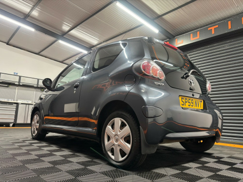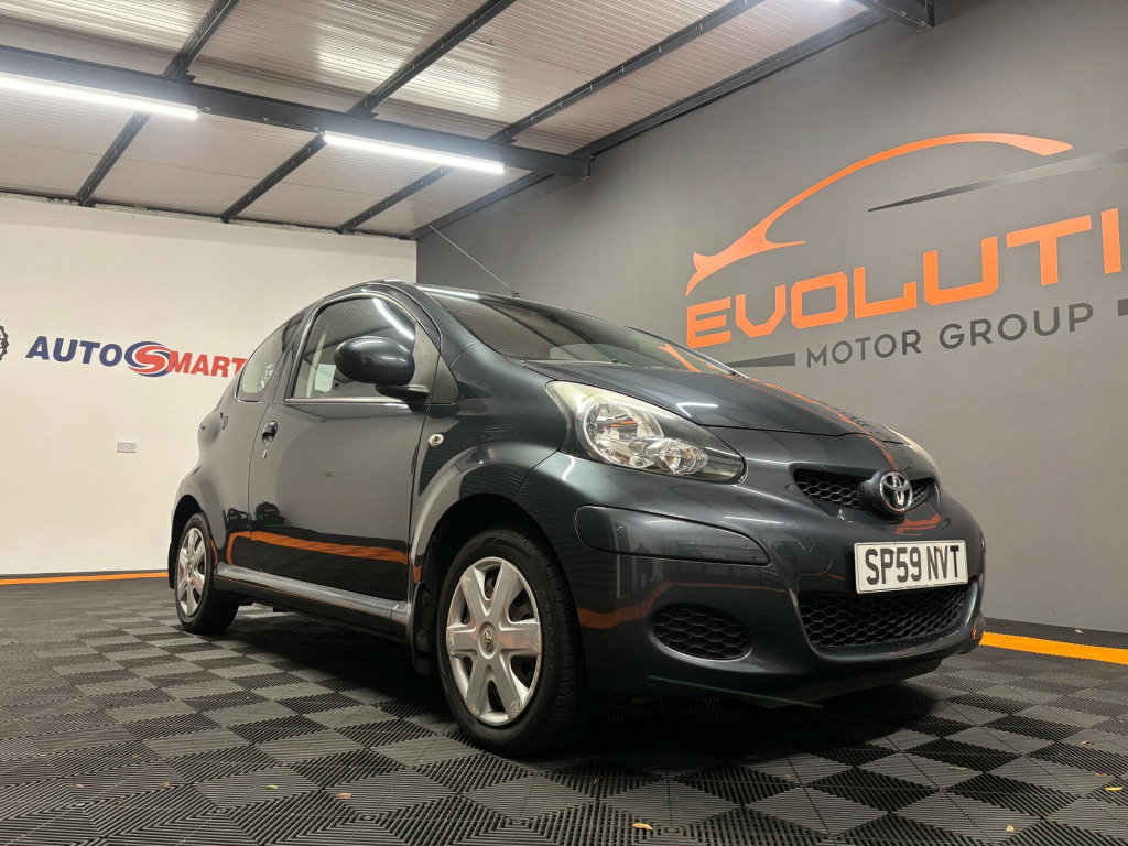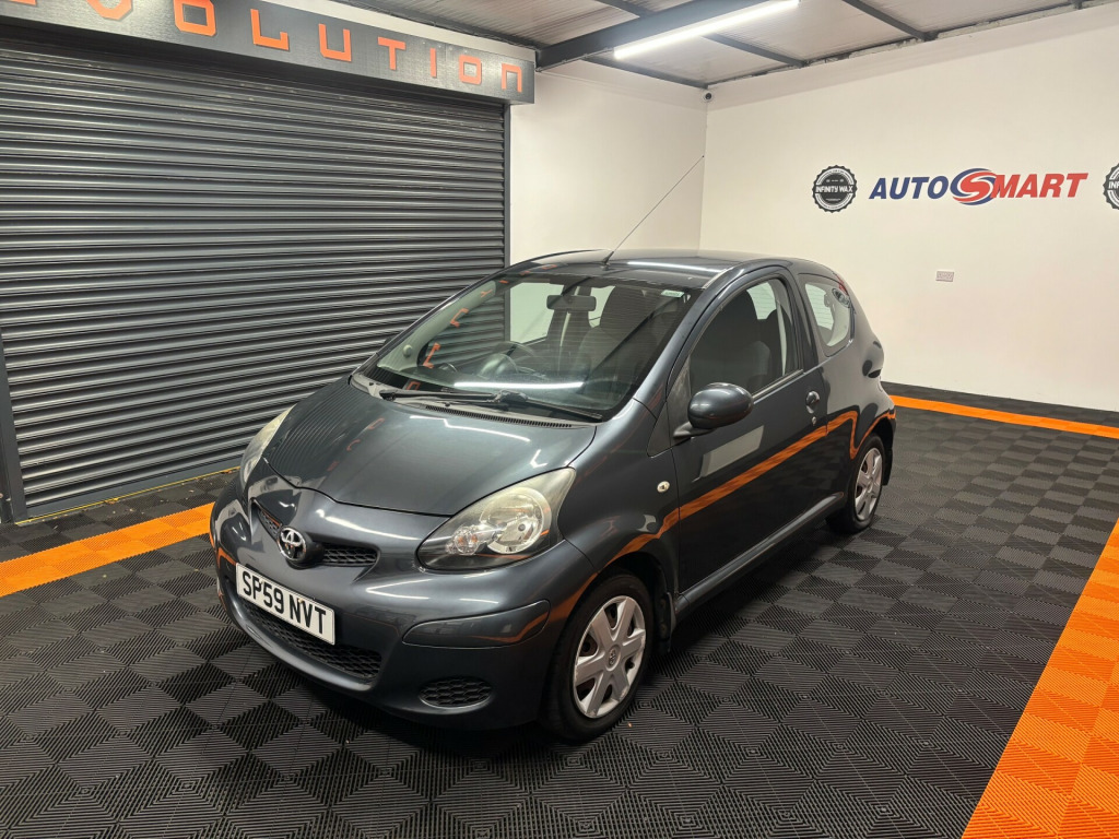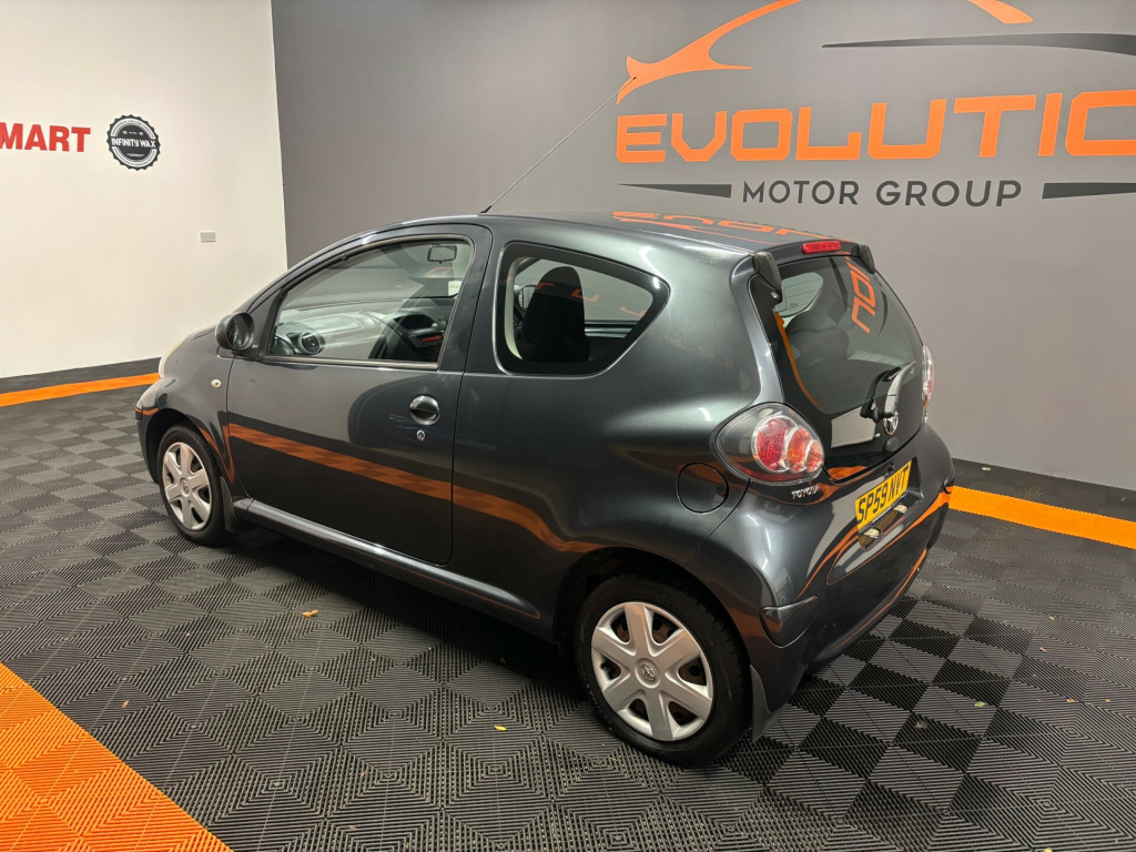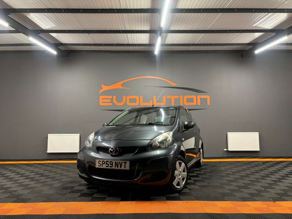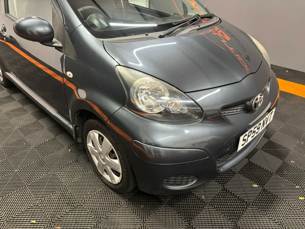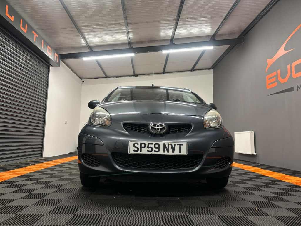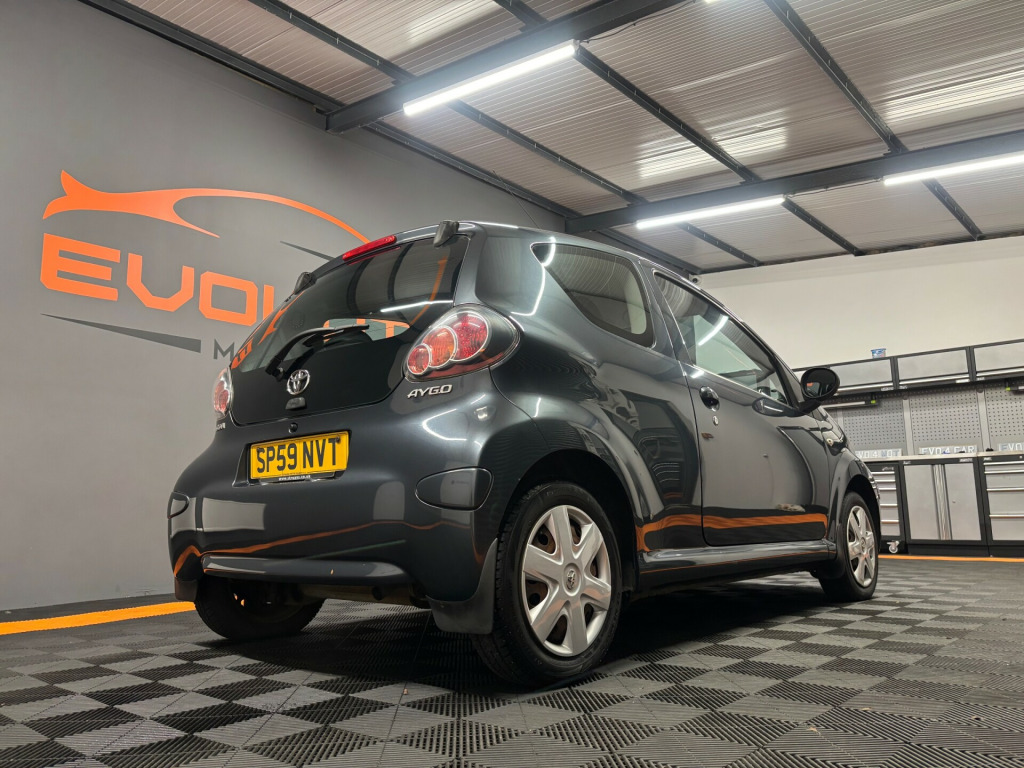 Toyota Aygo 1.0 VVT-i + 3dr Hatchback.. Registered - 05/09/2009 (59-reg).. 29,100 miles.. Service history.. Just serviced - September 2025.. MOT - September 2026.. 1 year MOT.. 2 x keys.. Only 1 owner from new.. HPI clear with very low guaranteed miles.. Grade 2 immaculate condition - very rare to find.. Great tyres all round.. Full size spare wheel and tool kit.. Very scarce colour.. Factory fitted CD player with AUX input.. Power assisted steering.. ABS.. Alarm / central locking.. Electric windows.. Outstanding example.. Ideal first car with extremely low running costs.. Up to 2 years warranty available with the UK's best award winning warranty company..