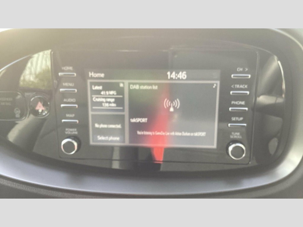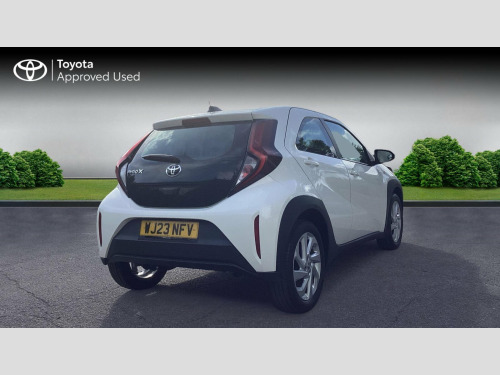 The Aygo X Pure trim is equipped with a range of modern features designed for convenience and enjoyment. Navigate tight spots with ease thanks to the reversing camera and parking assistance. Stay comfortable in all conditions with manual air conditioning. The intelligent adaptive cruise control, operated via the steering wheel, makes longer journeys more relaxed. Seamlessly integrate your smartphone with Apple CarPlay and Android Auto, and enjoy wireless connectivity through Bluetooth. These features, combined with its exceptional fuel economy of 59 mpg, low CO2 emissions, and low insurance group, make this Toyota Aygo X a remarkably economical and appealing choice compared to other vehicles in its class. 17in Alloy Wheels - 5 Double Spoke, 3-Spoke Leather Steering Wheel, 4.2in Colour Multi-Information Display Screen, 7in Toyota Touch Multimedia System, ABS - Anti Lock Braking System with Emergency Brake-Light System - EBS, Adjustable Speed Limiter -ASL- Switch on Steering Wheel, Analogue Speedometer, Audio Switches on Steering Wheel, Auto Headlights, Automatic Headlight Cut-Off, Black Door Moulding, Black Insert on Steering Wheel, Black Upper Front Grille, Black Wheel Arch Moulding, Bluetooth Connectivity, Boot Door Scuff Plate, Centre Room Light, Child Safety Door Locks, Chrome Interior Door Handles, Chrome Surround on Air Conditioning Button, Clean Air Filter, DAB Digital Radio, Digital Tachometer, Door Handles - Body Coloured, Door Mirrors - Gloss Black, Electric Power Steering - EPS, Floor Mats, Follow Me Home Headlights, Front 12V Power Outlet, Front Bumper - Body Coloured, Front LED Light Guide, Front Passenger Airbag On-Off Switch, Front Power Windows, Front Seat Belt Reminder, HAC - Hill Start Assist Control, Headlight Cut-Off Reminder, Headlights - Halogen, Headrests - Front - Deco Art, ISOFIX Child Restraint System - 2x Rear, Intelligent Adaptive Cruise Control Switch on Steering Wheel, Key Reminder Warning, Lane Departure Alert with Switches on Steering Wheel, Manual Air Conditioning, Manual Headlight Levelling, Manual Tilt Steering Wheel, Manually Reclining Driver and Passenger Seat, Manually Sliding Driver and Passenger Seat, Multi-Info Switches on Steering Wheel, Pollen Air Filter, Power Back Door, Power-Adjustable - Electric - Heated Door Mirrors, Pre-Collision System with Emergency Steering Assist, Rear Headrests x2, Rear Seat Belt Reminder, Rear Window Defogger - De-Icer, Rear Window Wiper, Remote Power Door Locks, Reversing Camera, Roof - Head Lining Adhesive Head Lining, Seats - 50-50 Split Folding Rear, Seats - Drivers Height Adjustment, Short Antenna, Smartphone Integration - Apple Car Play and Android Auto, Speakers x4, Speed Limiter Information, Storage - Rear Door Pockets, Supplemental Restraint System - SRS - Airbags - 6 Airbags, Telephone Switches on Steering Wheel, Toyota Safety Sense, Traction Control - TRC, Tyre Pressure Warning System, Tyre Repair Kit, USB Connector, VSC - Vehicle Stability Control, Vanity Mirror on Driver and Passengers Sun Visor, Variable Intermittent Windscreen Wipers, Voice Recognition Switch on Steering Wheel, eCall Emergency Call System