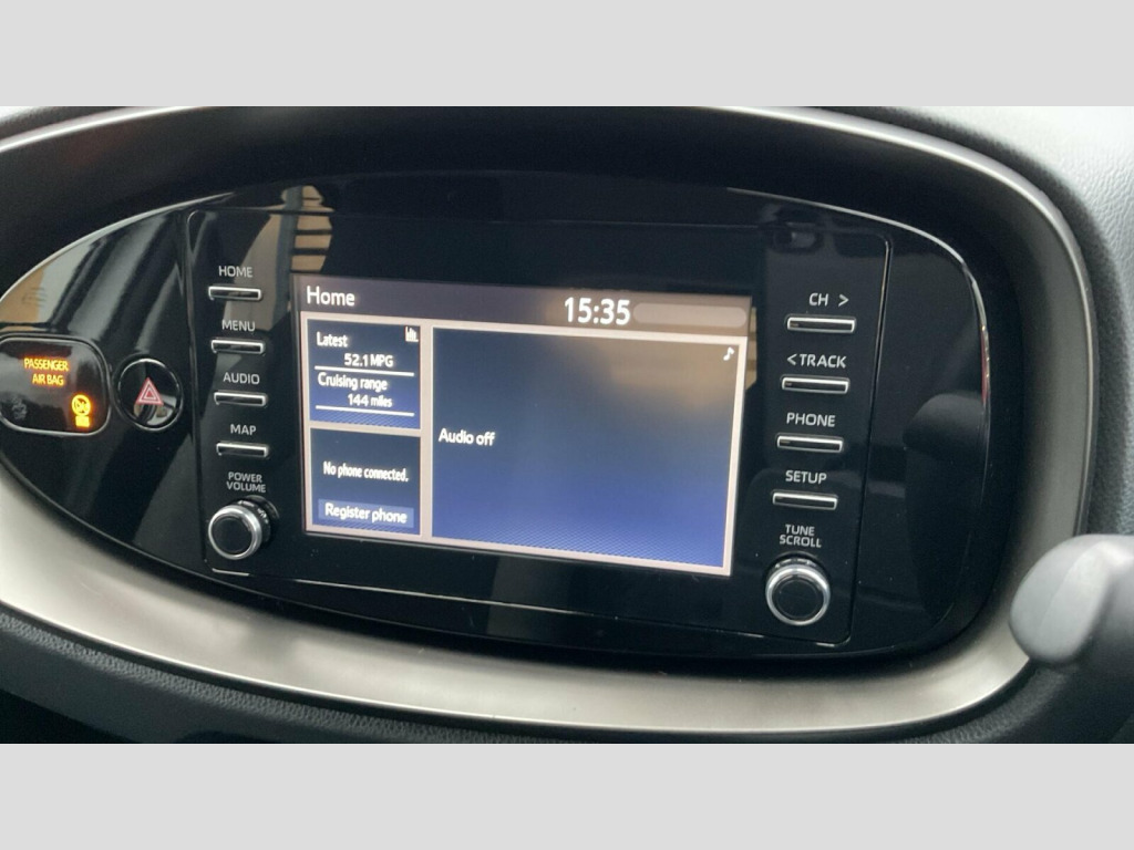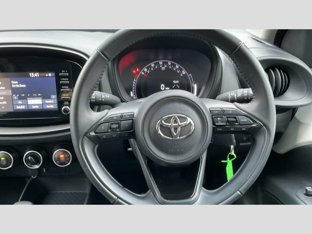 This 2022 Toyota Aygo X VVT-i Pure is a Toyota manufacturer approved vehicle, boasting a full service history with its last service completed on 03 December 2025 at 24,545 miles, and benefits from a 12 month warranty for your peace of mind. This one owner, Euro 6 compliant model features a 1.0L petrol engine and comes equipped with a reversing camera for parking assistance, manual air conditioning, and smartphone integration for both Apple CarPlay and Android Auto. You'll also find auto headlights and intelligent adaptive cruise control conveniently located on the steering wheel.