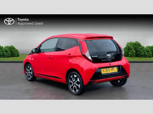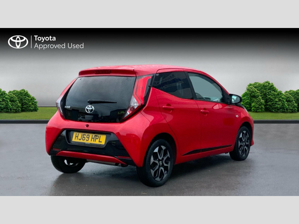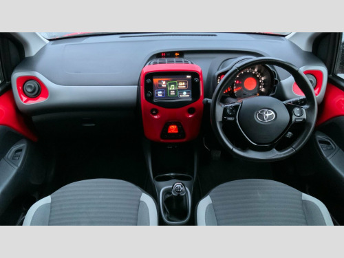 This 2019 Toyota AYGO X-Trend benefits from Toyota manufacturer approval and a comprehensive 12 month warranty, including roadside assist, for your peace of mind. This Euro 6 compliant, 1.0L petrol model has a full service history, with its last service completed on 2025-10-03 at 46812 miles. Its MOT is valid until October 2026, ensuring it is roadworthy for the foreseeable future. Inside, you'll find a body coloured centre console, automatic air conditioning with climate control, and a 7in x-touch multimedia system complete with Bluetooth and smartphone integration for both Apple CarPlay and Android Auto. A reversing camera with parking assistance is also included for easier manoeuvring. The AYGO x-trend stands out with its impressive fuel economy, achieving a highlight of 57 mpg, which indicates it is more economical than many similar vehicles. Furthermore, its low insurance group and low CO2 emissions highlight its cost effectiveness and environmental consideration compared to other cars in its class. Toyota Approved Warranty: If your vehicle is under 10 years, or 100,000 miles, a minimum of 12 months warranty is included, with an additional 12 month/10,000 miles warranty with every qualifying service (up to 10 years or 100,000 miles, whichever comes first). Graphite Fabric - Dark and Light Grey, Body Coloured Centre Console, 15in Alloy Wheels - 8 Spoke - Black Machined-Faced, 3-Spoke Leather Steering Wheel, 7in x-touch Multimedia System, ABS - Anti Lock Braking System, Auto Headlights, Automatic Air Conditioning, Bluetooth Connectivity, Chrome Insert on Gear Shift, Chrome Inside Door Handles, Clean Air Filter, Cupholder - Front and Rear, DAB Digital Radio, Daytime Running Lights - LED and Rear LEDs, Decal Kit - Front and Rear Bumper and Side Sills, Door Handles - Body Coloured, Door Mirrors - Body Colour, Electric Front Windows, Electric Power Steering - EPS, Electrically Adjustable Heated Door Mirrors, Emergency Brake-Light Signal - EBS - Hazard Type, Front 12V Power Outlet, Front Fog Lights, Front Passenger Airbag On-Off Switch, Front Seat Belt Reminder, Glovebox, HAC - Hill Start Assist Control, Headlights - Electronic Levelling, ISOFIX Fixing Points, Instrument Panel - Body Coloured, Integrated Rear Spoiler, Leather Gear Shift, Manual Rear View Mirror, Manual Tilt Steering Wheel, Projector Halogen Headlight with LED Tracer Lights, Rear Headrests x2, Rear Privacy Glass, Rear Seat Belt Reminder, Rear Window Demister, Recline and Slide Adjustment - Driver and Front Passengers, Reversing Camera, Seat Belt - Pre-Tensioners and Force Limiters, Seats - 50-50 Split Folding Rear, Seats - Drivers Height Adjustment, Smartphone Integration - Apple Car Play and Android Auto, Space Saver Spare Wheel, Steering Wheel - Audio and Telephone Controls, Storage - Front Door Pockets, Storage - Rear Door Pockets, Storage Pocket in Central Console, Supplemental Restraint System - SRS - Airbags - 6 Airbags, Tonneau Cover, Tyre Pressure Warning System, USB Connection, Unique Design Air Vents with Colour Surround, VSC - Vehicle Stability Control