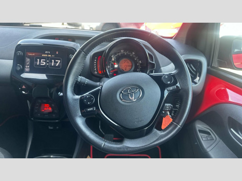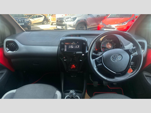 This 2021 Toyota AYGO X-Trend is a stylish city car that combines practicality with modern technology. The x-trend trim adds a touch of flair to this already appealing model, making it a great choice for those seeking a blend of efficiency and convenience. Equipped with a 1.0 petrol engine and Euro 6 emission class, this AYGO is ready for urban adventures and has had the mud flap set fitted. Inside, you'll find a range of features designed to enhance your driving experience. Automatic air conditioning, including climate control, ensures a comfortable environment no matter the weather. Graphite Fabric - Dark and Light Grey, Front and Rear Mud Flaps, Apple CarPlay and Android Auto, 15in Alloy Wheels - 10 Spoke - Black Machined-Faced, 3-Spoke Leather Steering Wheel, 4 Seat Capacity, 4 Speaker Sound System, 7in x-touch Multimedia System, ABS - Anti Lock Braking System, Analogue Tachometer, Auto Headlights, Automatic Air Conditioning, Black Roof Lining, Body Coloured Side Air Vent Surround, Chrome Insert on Gear Shift, Clean Air Filter, Cupholder - Front and Rear, DAB Digital Radio, Data Communication Module, Daytime Running Lights - LED and Rear LEDs, Decal Kit - Front and Rear Bumper and Side Sills, Door Handles - Body Coloured, Door Mirrors - Body Colour, Electric Front Windows, Electric Power Steering - EPS, Electrically Adjustable Heated Door Mirrors, Emergency Brake-Light Signal - EBS - Hazard Type, Front 12V Power Outlet, Front Fog Lights, Front Passenger Airbag On-Off Switch, Front Seat Belt Reminder, Glovebox, HAC - Hill Start Assist Control, Headlights - Electronic Levelling, ISOFIX Fixing Points, Immobiliser, Instrument Panel - Body Coloured, Integrated Rear Spoiler, LED Rear Brake Lights, Leather Gear Shift, Manual Rear View Mirror, Manual Tilt Steering Wheel, Projector Halogen Headlight with LED Tracer Lights, Rear Headrests x2, Rear Privacy Glass, Rear Seat Belt Reminder, Rear Window Demister, Recline and Slide Adjustment - Driver and Front Passengers, Reversing Camera, Seat Belt - Pre-Tensioners and Force Limiters, Seats - 50-50 Split Folding Rear, Seats - Drivers Height Adjustment, Silver Interior Door Handles, Smartphone Integration - Powered by Pioneer, Space Saver Spare Wheel, Steering Wheel - Audio and Telephone and LDA Controls, Storage - Front Door Pockets, Storage - Rear Door Pockets, Storage Pocket in Central Console, Supplemental Restraint System - SRS - Airbags - 6 Airbags, Tonneau Cover, Toyota Safety Sense, Tyre Pressure Warning System, USB and Aux Connection, Unique Design Air Vents with Colour Surround, VSC - Vehicle Stability Control, Vanity Mirror on Driver and Passengers Sun Visor