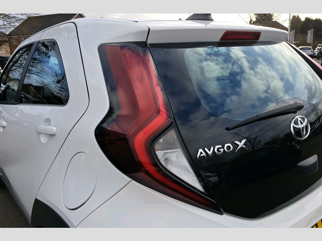 The Toyota Aygo X VVT-i Pure is a 2023 model, boasting a 1.0L Petrol Engine and a Euro 6 emission class. This vehicle has been well-maintained, with a full dealership service history and a last service carried out on 3rd November 2025 at 22,072 miles. The previous owner has taken excellent care of this car, ensuring it has been serviced regularly. The Aygo X VVT-i Pure is equipped with a range of advanced features, including a reversing camera with parking assistance, intelligent adaptive cruise control, and Toyota Safety Sense. Additionally, it comes with smartphone integration, allowing seamless connectivity with Apple CarPlay and Android Auto. The vehicle also features auto headlights and a switch on the steering wheel for easy access to cruise control.This Toyota Aygo X VVT-i Pure is an excellent choice for those seeking a reliable and efficient vehicle. Its impressive fuel economy of up to 59 mpg makes it a cost-effective option for daily driving. Furthermore, its low insurance group rating and low CO2 emissions make it an attractive choice for those looking to save on running costs. With its MOT valid until November 2026, you can drive away with peace of mind, knowing this vehicle is roadworthy for years to come. As a one-owner vehicle, you can be confident in the car's history and maintenance record.. 17in Alloy Wheels - 5 Double Spoke, 3-Spoke Leather Steering Wheel, 4.2in Colour Multi-Information Display Screen, 7in Toyota Touch Multimedia System, ABS - Anti Lock Braking System with Emergency Brake-Light System - EBS, Adjustable Speed Limiter -ASL- Switch on Steering Wheel, Analogue Speedometer, Audio Switches on Steering Wheel, Auto Headlights, Automatic Headlight Cut-Off, Black Door Moulding, Black Insert on Steering Wheel, Black Upper Front Grille, Black Wheel Arch Moulding, Bluetooth Connectivity, Boot Door Scuff Plate, Centre Room Light, Child Safety Door Locks, Chrome Interior Door Handles, Chrome Surround on Air Conditioning Button, Clean Air Filter, DAB Digital Radio, Digital Tachometer, Door Handles - Body Coloured, Door Mirrors - Gloss Black, Electric Power Steering - EPS, Floor Mats, Follow Me Home Headlights, Front 12V Power Outlet, Front Bumper - Body Coloured, Front LED Light Guide, Front Passenger Airbag On-Off Switch, Front Power Windows, Front Seat Belt Reminder, HAC - Hill Start Assist Control, Headlight Cut-Off Reminder, Headlights - Halogen, Headrests - Front - Deco Art, ISOFIX Child Restraint System - 2x Rear, Intelligent Adaptive Cruise Control Switch on Steering Wheel, Key Reminder Warning, Lane Departure Alert with Switches on Steering Wheel, Manual Air Conditioning, Manual Headlight Levelling, Manual Tilt Steering Wheel, Manually Reclining Driver and Passenger Seat, Manually Sliding Driver and Passenger Seat, Multi-Info Switches on Steering Wheel, Pollen Air Filter, Power Back Door, Power-Adjustable - Electric - Heated Door Mirrors, Pre-Collision System with Emergency Steering Assist, Rear Headrests x2, Rear Seat Belt Reminder, Rear Window Defogger - De-Icer, Rear Window Wiper, Remote Power Door Locks, Reversing Camera, Roof - Head Lining Adhesive Head Lining, Seats - 50-50 Split Folding Rear, Seats - Drivers Height Adjustment, Short Antenna, Smartphone Integration - Apple Car Play and Android Auto, Speakers x4, Speed Limiter Information, Storage - Rear Door Pockets, Supplemental Restraint System - SRS - Airbags - 6 Airbags, Telephone Switches on Steering Wheel, Toyota Safety Sense, Traction Control - TRC, Tyre Pressure Warning System, Tyre Repair Kit, USB Connector, VSC - Vehicle Stability Control, Vanity Mirror on Driver and Passengers Sun Visor, Variable Intermittent Windscreen Wipers, Voice Recognition Switch on Steering Wheel, eCall Emergency Call System. Full dealership history