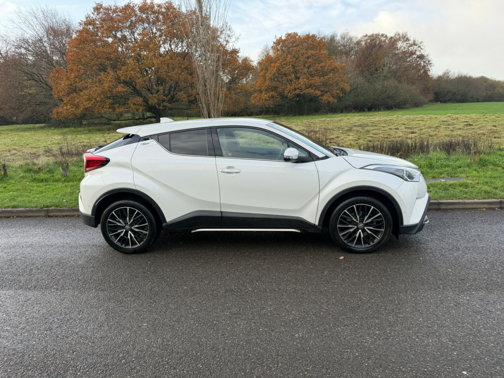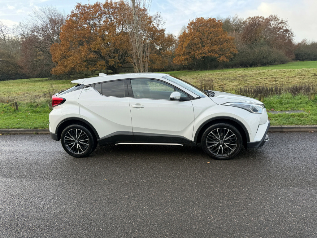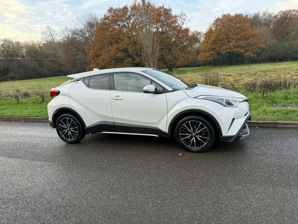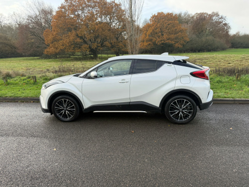 ULEZ COMPLIANT - 17 Reg - Pearl White with Charcoal Half Leather Trim, this stunning C-HR comes with a very high specification which includes: Factory Colour Satellite Navigation, Reversing Camera, DAB Radio, Bluetooth, Heated Seats, Xenon Headlamps, Dual Climate Control, Cruise Control, Trip Computer, Power Folding Mirrors, Auto Lights, Auto Dipping Mirror, Piano Black Interior Trim, Leather Steering Wheel, Airbags, ISO-Fix Seating, 18'' Alloy Wheels, Rear Window Tints, Front Fogs, Fitted Mats, comes with 6 Toyota main dealer services then self-serviced for the last 3 years, comes from us with a fresh new service and a brand new MOT, really a very nice looking car in very clean condition throughout, drives superbly so any inspection welcome, HPI Clear, Part Exchange up or down welcome. **Debit/Credit Cards Accepted** **Open 6 Days a week** **POOR CREDIT NO PROBLEMS - Finance available (subject to status)** (*Sometimes we may still reserve the right to not offer unaccompanied test drives)
