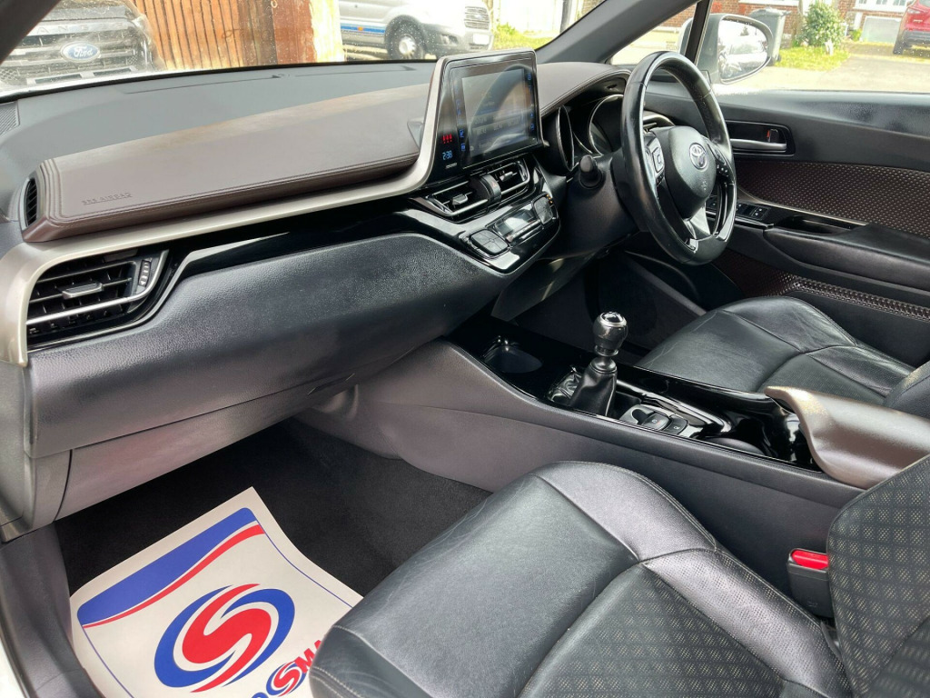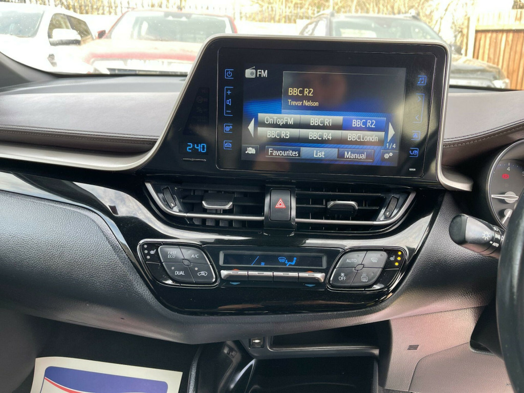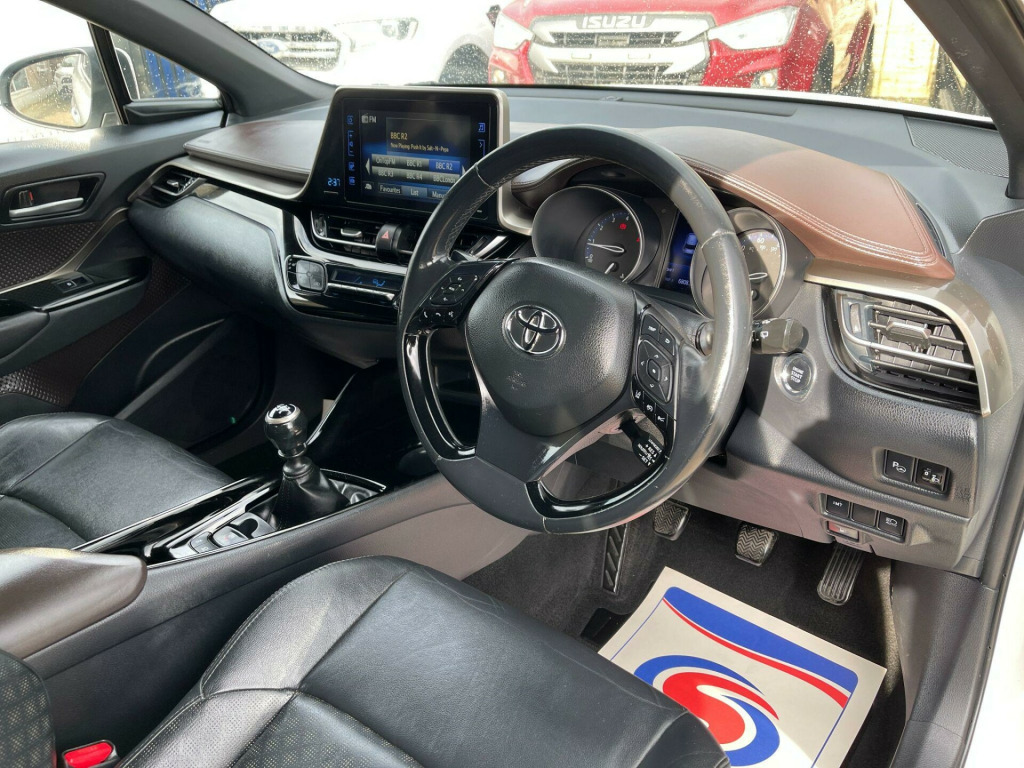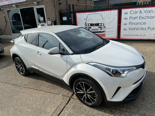 We are delighted to be presenting to you this wonderful 2019 high spec Toyota CH-R in lovely condition with plenty of upgrades such as Leather Seats, laser-cut alloys, LED day-lights, Cruise Control, SATNAV, reverse camera, Large LCD Touch Display with many functions,...,amongst others. This example has only had ONE previous owner, it will be given to you with a long MOT and it has just been serviced fully:-Engine Oil Removed and Replaced-Engine Oil Filter Removed and Replaced-Air Filter Removed and Replaced Internal and external condition of the vehicle are good for its age and mileage; you can judge for yourself just by looking at the images and the video (more, larger images available on our website TRUSTMOTORCARS CO UK) or hopefully if you visit us very soon. Please do get in touch with us should you wish to arrange a viewing or if you would like to have it delivered to your door. More images of this car and many more are available on our website so please feel free to visit us there. Part Exchange Welcome., , -GUARANTEED MOT: WE WILL HAVE A NEW MOT DONE FOR YOU IF THE MOT RUNS OUT SOON, -AFFORDABLE FINANCE OPTIONS AVAILABLE - PLEASE GET IN TOUCH WITH US FOR MORE DETAILS, -THREE MONTHS WARRANTY , -OPTIONAL EXTENDED AA WARRANTY COVER, -MORE PHOTOS AND VIDEOS OF THIS VEHICLE AND MANY OTHERS ON OUR WEBSITE: TRUSTMOTORCARS CO UK, -PART EXCHANGE WELCOME., -WE ARE BASED NEXT TO HEATHROW AIRPORT, MINUTES TO M25 J14, M4, M40, M3 and A312, -NATIONWIDE DELIVERY AVAILABLE. in alloy wheels - excel, 3-spoke leather steering wheel with multimedia switches, 4.2in colour tft screen for multi-information display, abs - anti lock braking system, adjustable speed limiter - asl, audio and telephone switches on steering wheel, auto headlights, ba - brake assist, black diffuser, black roof lining, black and body-coloured rear bumper, blind spot monitor - bsm, bluetooth connectivity, body-coloured door mirrors and handles, body-coloured front bumper, boot door release with push button, boot lamp, child safety locks on rear doors, dab digital radio, driver and front passenger personal lights, driver and front passenger whiplash injury lessening - wil - seats, driver and passenger seatback pockets, dual-zone automatic air conditioning, electrically assisted power steering - eps, electronic parking brake, follow me home headlights, front cup holders, front fog lights, front passenger airbag on-off switch, front and rear power windows with auto up-down and anti-jam protection, glovebox with internal light, hac - hill start assist control, hard tonneau cover, heated driver and front passenger seat, high mounted rear brake light - led, humidifying nanoe air purifier, isofix fixing points, illuminated entry system, immobiliser, intrusion alarm, led daytime running lights, led rear brake lights, leather effect padded armrest on front console box, leather gear shift, light blue ambient lighting on front doors, motion sensor alarm, parking pack, parking sensors and intelligent park assist - ipa, power adjustable lumbar support on driver seat, power door locks, power-adjustable door mirrors, projector and reflector halogen headlights, puddle lights on door mirrors, rain sensing wipers, rear cross traffic alert - rcta, rear lights - led, rear privacy glass, reversing camera, road sign assist, satin chrome rings on analogue speedometer, seat belt reminder - front and rear, speakers x6, supplemental restraint system - srs - airbags - 7 airbags, tpms - tyre pressure monitoring system, tech pack, toyota safety sense, toyota touch 2 multimedia system with 7in display, toyota touch 2 with go navigation, traction control - trc, trailer sway control - tsc, usb and aux in connectors and 12v front outlet, vsc - vehicle stability control, voice recognition