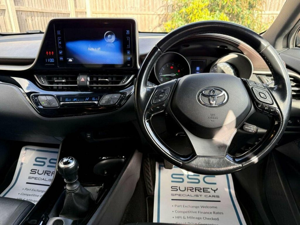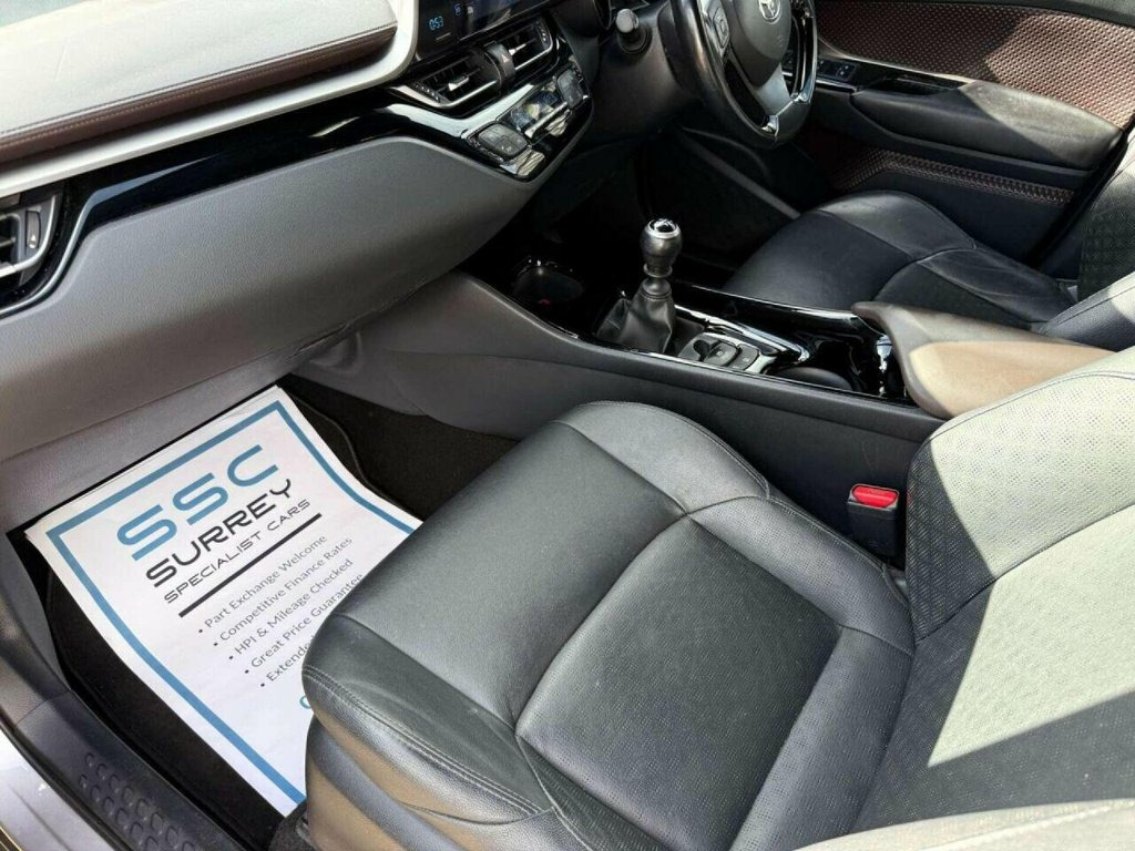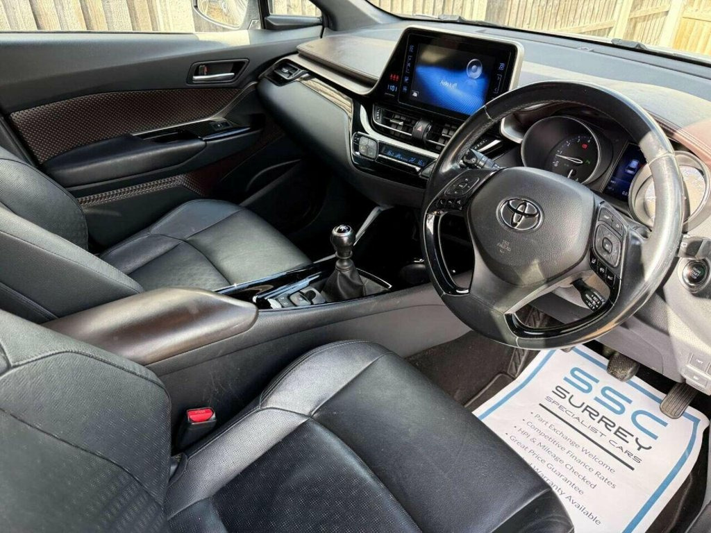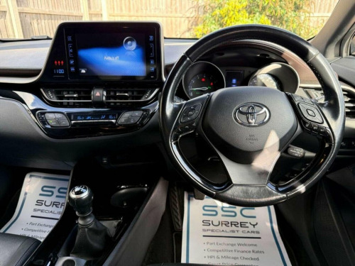 Surrey Specialist Cars are proud to present our lovely Toyota CH-R Excel. This amazing car comes with Service History, finished in stunning metallic silver with grey contrast interior. The 1.2L Petrol engine offers great economy at over 48 MPG on combined cycle. Features Include Multifunction Steering Wheel, Trip Computer, Satellite Navigation, Parking Camera, Parking Sensors, Heated Seats, Cruise Control, Stereo/Phone Control, FM/DAB Radio, Android Auto, Bluetooth Audio, AUX Input, USB Input, Climate Control, EV Mode, Eco Mode, Power Mode, 12V Charging Socket, two Cup Holders, 6 Speed Manual Gearbox, Electronic Hand Brake, 18 Inch Alloy Wheels and two Remote Control Keys to name a few. We are open 7 days a week, and prepare all of our cars to the highest standards. We have a Click & Collect option available, and can also arrange delivery on request. All cars are HPI clear and a full history report is provided with every car. We welcome any inspection and viewing is highly recommended. All cars are available with our AA warranty starting from just ?150 for 3 months. Debit and credit card facilities are available and we offer competitive finance packages. If you have any questions or would like to view any of our cars give us a call or drop us a message on whatsapp 01483 363 144 to arrange an appointment with one of our team. We also offer full bespoke walkaround videos on request. We are always on the lookout for high quality stock, if you have a car we are interested in w 18in Alloy Wheels - Excel, 3-Spoke Leather Steering Wheel with Mult, 4.2in Colour TFT Screen for Multi-Inform, ABS - Anti Lock Braking System, Adjustable Speed Limiter - ASL, Audio and Telephone Switches on Steering, Auto Headlights, BA - Brake Assist, Black Diffuser, Black Roof Lining, Black and Body-Coloured Rear Bumper, Blind Spot Monitor - BSM, Bluetooth Connectivity, Body-Coloured Door Mirrors and Handles, Body-Coloured Front Bumper, Boot Door Release with Push Button, Boot Lamp, Child Safety Locks on Rear Doors, DAB Digital Radio, Driver and Front Passenger Personal Ligh, Driver and Front Passenger Whiplash Inju, Driver and Passenger Seatback Pockets, Dual-Zone Automatic Air Conditioni