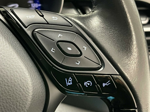 This 2022 Toyota C-HR VVT-h Design is a superb example, having been owned by just one careful keeper. This stylish hatchback boasts a 1.8 litre petrol hybrid engine, meeting Euro 6 emissions standards. Inside, you'll find a wealth of technology designed for comfort and convenience, including dual zone automatic air conditioning, heated front seats, and adaptive cruise control. Parking is made effortless thanks to a reversing camera, front and rear parking sensors, and intelligent clearance sonar with automatic braking.The C-HR Design offers impressive efficiency, achieving a remarkable 58 miles per gallon, which is a significant advantage for your running costs. Its low CO2 emissions and low insurance group also contribute to making this a cost effective choice. These factors, combined with its advanced features and single owner provenance, clearly set this Toyota C-HR apart from other vehicles in its class. in alloy wheels - 5 double spoke - black machined-faced, 3-spoke nappa leather steering wheel, 4.2in colour tft screen for multi-information display, abs - anti lock braking system, am-fm radio, acoustic vehicle alert system - avas, adaptive cruise control, adjustable rear headrests, adjustable speed limiter - asl, adjustable speed limiter -asl- switch on steering wheel, anti-jam protection on power windows, audio and telephone switches on steering wheel, auto dimming rear view mirror, auto headlights, auto up and down function on power windows, auto wipers, automatic headlight cut-off, automatic high beam, automatically retractable door mirrors, black centre console, black front door assist grips, black lower dashboard, black lower driver dashboard, black upper dashboard, black and body-coloured rear bumper, blue ambient lighting on front cup holders, blue ambient lighting on front doors, bluetooth connectivity, body coloured door handles, body coloured door mirrors, body coloured front spoiler, body-coloured front bumper, boot door release with push button, boot light, child safety locks on rear doors, chrome interior door handles, digital audio broadcast - dab, driver and front passenger personal lights, driver and front passenger whiplash lessening - headrest, driver and passenger seatback pockets, dual-zone automatic air conditioning, electric power steering - eps, electronic parking brake, floor mats, follow me home headlights, front 12v power outlet, front cup holders, front fog lights, front led light guide, front power windows, front and centre pillar assist grips, front and rear parking sensors and intelligent clearance sonar with automatic braking, glass-breaking alarm sensors, glovebox with light, hac - hill start assist control, hard tonneau cover, heated driver and front passenger seat, honeycomb lower front grille, hooks for luggage holding belt, humidifying nanoe air purifier, hybrid system indicator, isofix seat fixing - rear, illuminated entry system, immobiliser, intrusion alarm, led daytime running lights, led high-mounted stop light, led rear brake lights, led rear combination lights, led reflector headlights, lane departure alert with switches on steering wheel, leather gear shift, light on driver sun visor, light on passenger sun visor, manual headlight levelling, manual height adjustable front passengers seat, manual height adjustable for drivers seat, manual tilt steering wheel, manually reclining driver seat, manually reclining front passengers seat, manually sliding drivers seat, manually sliding front passenger seat, microphone on front personal light, mirror on driver sun visor, mirror on passenger sun visor, motion sensor alarm, multimedia switches on steering wheel, noise reduction layer on front windows and windscreen, passenger airbag on-off switch, pollen air filter, power adjustable lumbar support on driver seat, power door locks, power passenger window lock, pre-collision warning system with pedestrian detection, privacy glass, rear headrests x3, rear power windows, rear seats 60-40 split folding, rear spoiler, rear tailgate, rear window defogger, rear window wiper, remote door locking, reversing camera, road sign assist, satin grey deco line on upper dashboard, seat belt - pre-tensioners and force limiters, seat belt reminder - front and rear, seats - front sport, shark fin antenna, shopping bag hooks, simple intelligent park assist, slow opening lower glovebox, smart entry and push-button start, smartphone integration - apple car play and android auto, speakers x6, steering wheel - manual telescopic adjustment, supplemental restraint system - srs - airbags - 5 airbags, tpms - tyre pressure monitoring system, toyota touch 2 multimedia system with 8in display, toyota touch 2 with go navigation system, tyre repair kit, usb connector, uv-filter on drivers and front passenger windows, uv-filter on rear windows, vsc - vehicle stability control, voice recognition, voice recognition switch on steering wheel, wi-fi connectivity