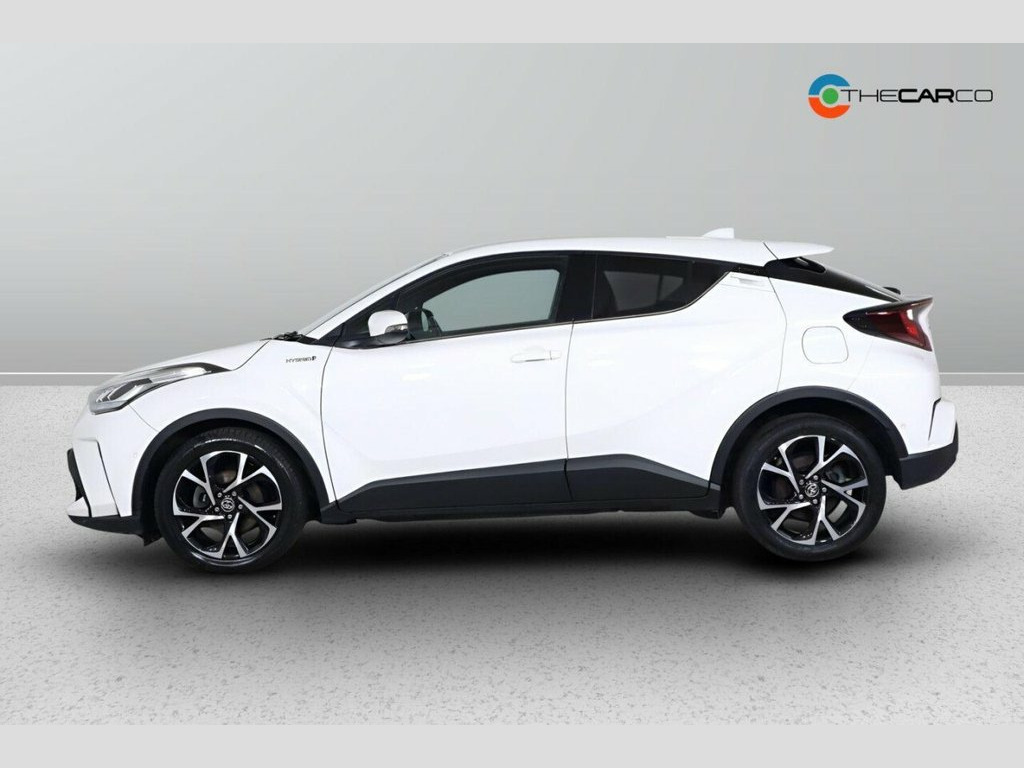 This 2021 Toyota C-HR VVT-h Design is a superb example, having been owned by just one careful keeper. It features a responsive 1.8L Petrol Hybrid engine, meeting the Euro 6 emission class. Inside, you'll find the intuitive Toyota Touch 2 Multimedia System, complete with an 8-inch display that seamlessly integrates Android Auto and Apple CarPlay, alongside Bluetooth connectivity for your devices. For added convenience and safety, it includes a reversing camera and LED reflector headlights that automatically switch on when needed. This C-HR Design offers excellent running costs, achieving an impressive fuel economy of 58 miles per gallon. Its low CO2 emissions and low insurance group rating further highlight its efficiency and affordability compared to similar vehicles. This combination of economical performance and desirable features makes it a smart choice for any driver. 18in Alloy Wheels - 5 Double Spoke - Bla, 3-Spoke Nappa Leather Steering Wheel, 4.2in Colour TFT Screen for Multi-Inform, ABS - Anti Lock Braking System, AM-FM Radio, Acoustic Vehicle Alert System - AVAS, Adaptive Cruise Control, Adjustable Rear Headrests, Adjustable Speed Limiter - ASL, Adjustable Speed Limiter -ASL- Switch on, Anti-Jam Protection on Power Windows, Audio and Telephone Switches on Steering, Auto Dimming Rear View Mirror, Auto Headlights, Auto Up and Down Function on Power Windo, Auto Wipers, Automatic Headlight Cut-Off, Automatic High Beam, Automatically Retractable Door Mirrors, Black Centre Console, Black Front Door Assist Grips, Black Lower Dashboard, Black Lower Driver D