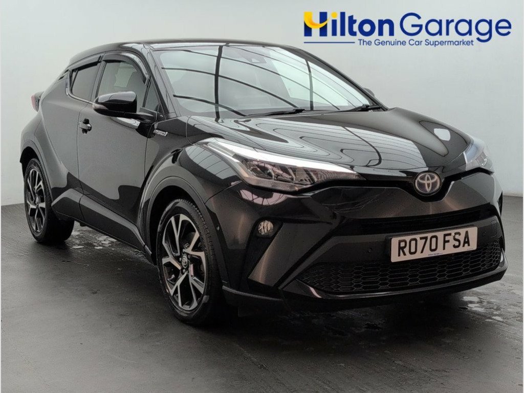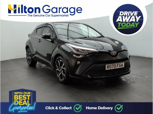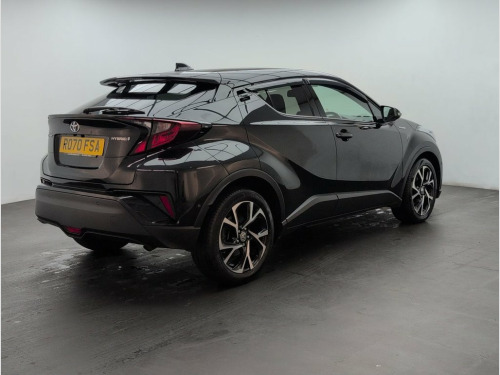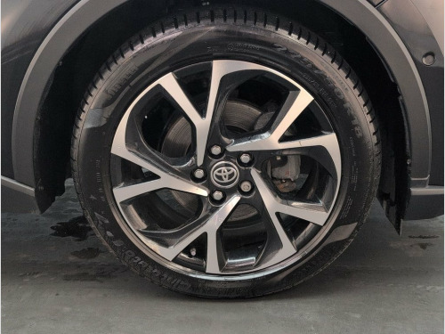 18" alloys, Cruise control, Reversing camera, Privacy glass and Bluetooth. The Toyota C-HR Design blends striking design, advanced hybrid efficiency, and practical SUV versatility. Powered by a 1.8 VVT-h petrol hybrid engine producing 122 ps, it delivers smooth, responsive driving with exceptional fuel efficiency and low emissions, thanks to Euro 6 compliance and start/stop technology. 4 services - last service done at 40207 miles. 18in Alloy Wheels - 5 Double Spoke - Bla, 3-Spoke Nappa Leather Steering Wheel wit, 4.2in Colour TFT Screen for Multi-Inform, ABS - Anti Lock Braking System, Adaptive Cruise Control, Adjustable Rear Headrests, Adjustable Speed Limiter -ASL- Switch on, Audio and Telephone Switches on Steering, Auto Headlights, Automatic Headlight Cut-Off, Automatic High Beam, Black and Body-Coloured Rear Bumper, Black Centre Console, Black Front Bumper, Black Front Door Assist Grips, Black Lower Dashboard, Black Lower Driver Dashboard, Black Upper Dashboard, Black Upper Front Grille, Blue Ambient Lighting on Front Cup Holde, Blue Ambient Lighting on Front Doors, Bluetooth Connectivity, Body-Coloured Door Mirr