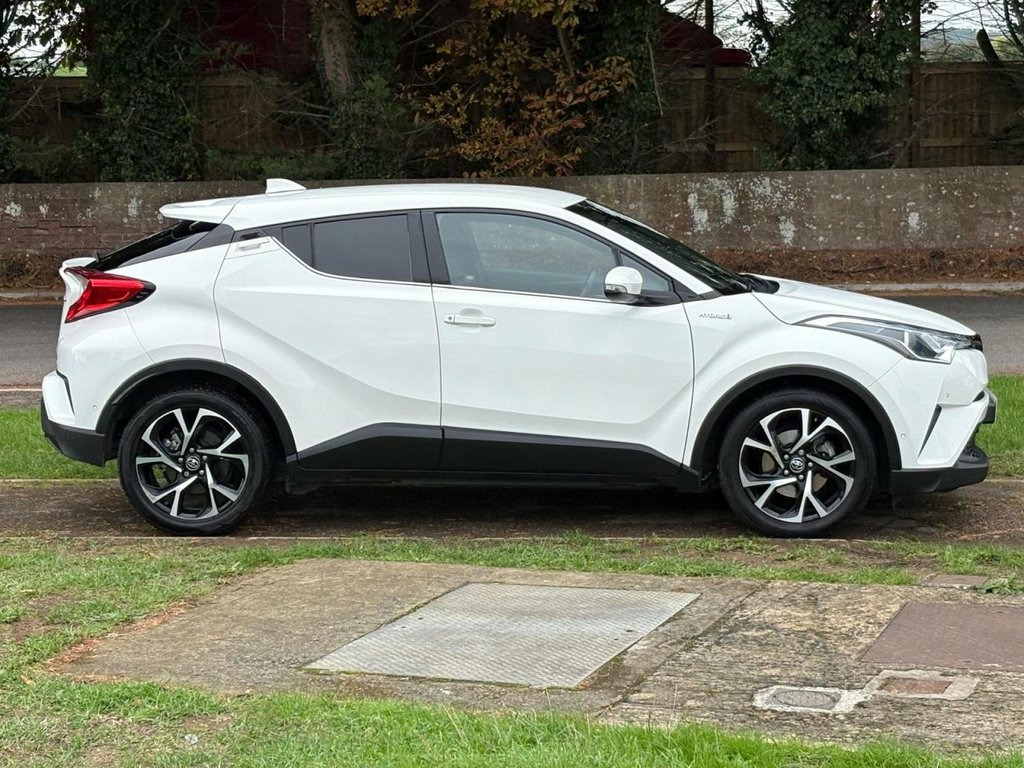 We are pleased to offer for sale this TOYOTA C-HR 1.8 VVT-H DESIGN SUV SPORT HYBRID 5dr finished in metallic white, petrol (auto), black cloth interior, with 32,052 warranted miles, this car has a good service history with 5 stamps in the service book. the car will come with a new 12-month MOT, 3 months warranty, 12 months AA breakdown cover, features include, central locking with 2 keys, electric windows, bluetooth, rear reversing camera, front and rear parking sensors, push button start, steering wheel controls, sat nav, electric mirror adjust, heated mirrors, auto lights, auto wipers, air conditioning, cruise control, 18 inch alloy wheels, lane assist, park assist, tinted rear windows, trip computer, DAB/AUX/USB/FM radio, drivers - passengers air bags, drivers seat height adjust, rake and reach steering, ISOFIX, rear heated screen, front and rear fog lights and inflation pack. White Pearl, 18in Alloy Wheels - Dynamic, 3-Spoke Leather Steering Wheel with Mult, 4.2in Colour TFT Screen for Multi-Inform, ABS - Anti Lock Braking System, Adjustable Speed Limiter - ASL, Audio and Telephone Switches on Steering, Auto Headlights, BA - Brake Assist, Black Diffuser, Black Roof Lining, Black and Body-Coloured Rear Bumper, Bluetooth Connectivity, Body-Coloured Door Mirrors and Handles, Body-Coloured Front Bumper, Boot Door Release with Push Button, Boot Lamp, Child Safety Locks on Rear Doors, DAB Digital Radio, Driver and Front Passenger Personal Ligh, Driver and Front Passenger Whiplash Inju, Dual-Zone Automatic Air Conditioning, Electrically Assisted Power Steering - E, Elec