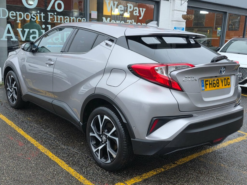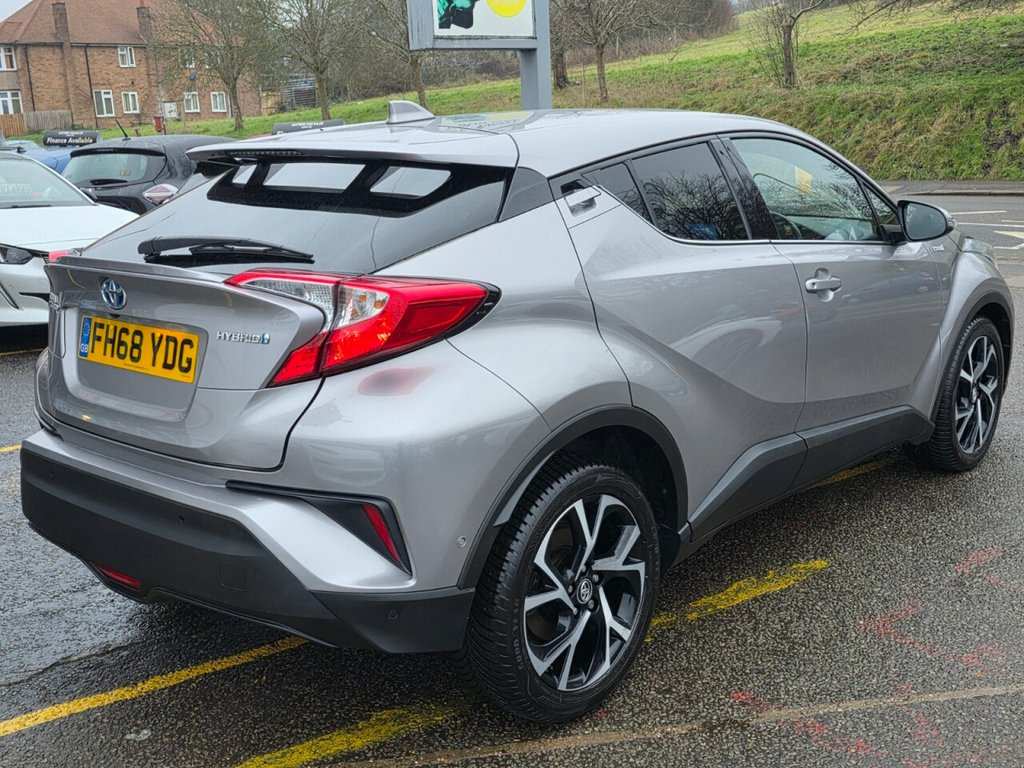TOYOTA C-HR 1.8 VVT-h Design SUV 5dr Petrol Hybrid CVT. Comes with 6 service stamps(5 main dealers, 1 independent) with the most recent one carried @ 67282 miles and it comes with fresh MOT for complete peace of mind. Additionally, it comes loaded with very high spec including Reverse Camera for aid, HAC - Hill Start Assist Control, Heated Driver and Front Passenger Seat, Adjustable Speed Limiter - ASL, BA - Brake Assist, Bluetooth Connectivity, DAB Digital Radio, Dual-Zone Automatic Air Conditioning, Electrically Assisted Power Steering - EPS, VSC - Vehicle Stability Control, Toyota Touch 2 Multimedia System with 7in Display, Toyota Touch 2 with Go Navigation, Traction Control - TRC, Trailer Sway Control - TSC, Parking Sensors and Intelligent Park Assist - IPA, Parking Pack, Motion Sensor Alarm, Road Sign Assist and so so much more. Extended Warranty Available for as little as £499 for 12 Months* Finance Offered - any credit history considered** Part Exchange Welcome Available for Nationwide Delivery (charged 1.70p per mile) *Warranty prices based on car make, model, CC, age **subject to acceptance 18in Alloy Wheels - Dynamic, 3-Spoke Leather Steering Wheel with Mult, 4.2in Colour TFT Screen for Multi-Inform, ABS - Anti Lock Braking System, Adjustable Speed Limiter - ASL, Audio and Telephone Switches on Steering, Auto Headlights, BA - Brake Assist, Black Diffuser, Black Roof Lining, Black and Body-Coloured Rear Bumper, Bluetooth Connectivity, Body-Coloured Door Mirrors and Handles, Body-Coloured Front Bumper, Boot Door Release with Push Button, Boot Lamp, Child Safety Locks on Rear Doors, DAB Digital Radio, Driver and Front Passenger Personal Ligh, Driver and Front Passenger Whiplash Inju, Dual-Zone Automatic Air Conditioning, Electrically Assisted Power Steering - E, Electronic Parkin