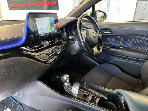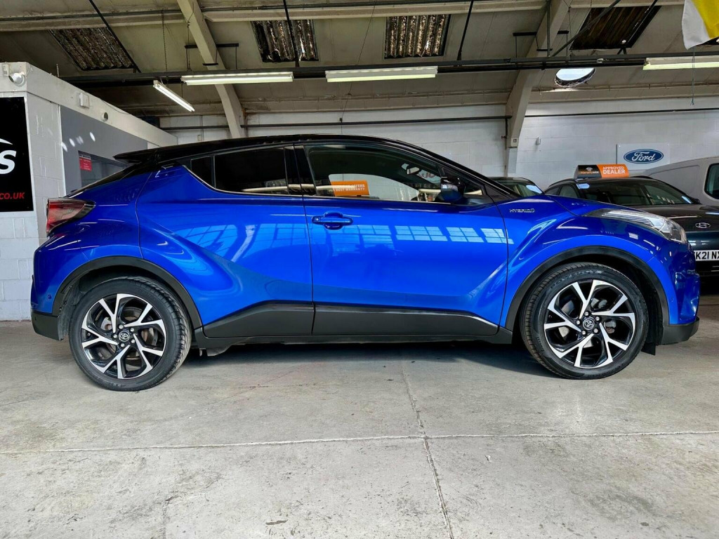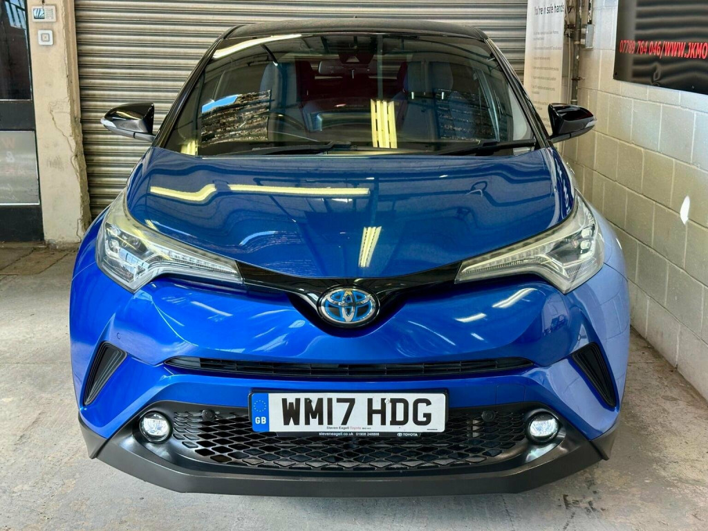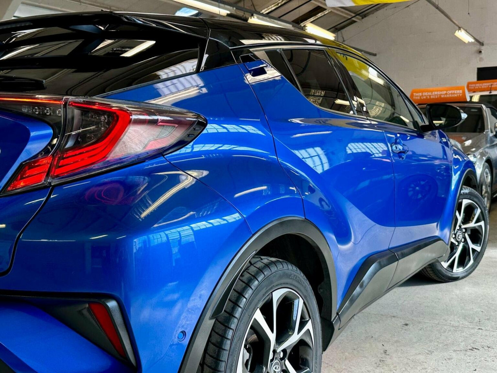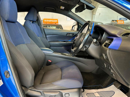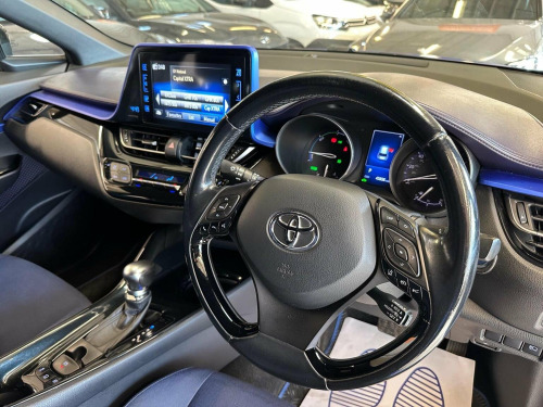 Ready to drive away today Toyota C-HR 1.8 VVT-h Dynamic CVT Euro 6, 2 owners from new, full Toyota main dealer history (8 services) last MOT carried out by Toyota. Looks stunning in metallic blue finished with 18 diamond cut alloy wheels. Great spec featuring reverse camera, parking sensors, park assist, collision alert, active cruise control, DRLs, gloss black roof. Interior finished in gloss black with blue detail, multifunction steering wheel, cruise control, folding mirrors, privacy glass, touchscreen multimedia, sat nav, DAB, heated seats, keyless entry and start, list goes on. 2 keys, buy with confidence from an award winning, AA Approved dealership with a variety of warranty products available. Viewing available seven days a week by appointment (evening and weekends available), nationwide delivery. Same day finance decisions in house at competitive rates, nil deposit options, please inquire with a simple call to drive away today. Drive away insurance, part exchange welcome, top prices paid. Member of the Motor Trade trading standards and motoring ombudsman code of practice.