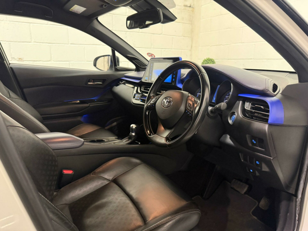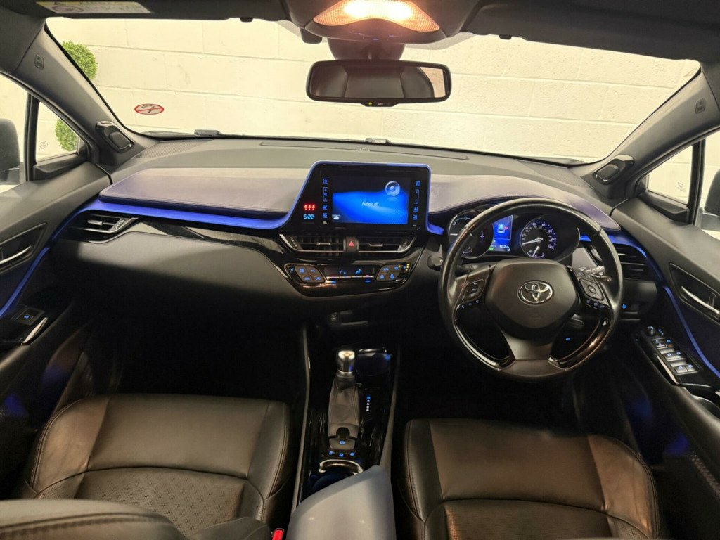 This 2016 Toyota C-HR VVT-h Dynamic is a standout example, boasting exceptionally low mileage for its age at just 58,000 miles and having been cared for by only two owners. This Euro 6 compliant 1.8L petrol hybrid model offers a sophisticated driving experience, enhanced by its Dynamic trim level. You'll appreciate the convenience of auto headlights, a reversing camera paired with front and rear parking sensors for effortless manoeuvring, and the added safety of a blind spot monitor. The striking LED headlights with sequential indicators further elevate its modern appeal.The highlights of this Toyota C-HR demonstrate its superior value and efficiency compared to other vehicles in its class. Achieving an impressive fuel economy of 72 mpg, it offers significant savings on running costs. Furthermore, its low CO2 emissions and low insurance group rating make it an economical and practical choice for many drivers. This combination of advanced features, excellent provenance, and outstanding efficiency makes this C-HR a truly compelling proposition. in alloy wheels - black machined-faced - 5-double-spoke, 3-spoke leather steering wheel with multimedia switches, 4.2in colour tft screen for multi-information display, abs - anti lock braking system, adjustable speed limiter - asl, anodised blue decoration line on front door and dashboard, audio and telephone switches on steering wheel, auto folding - door mirrors, auto headlights, automatic headlight levelling, ba - brake assist, bi-tone black roof, black diffuser, black roof lining, black and body-coloured rear bumper, blind spot monitor - bsm, bluetooth connectivity, body coloured outside door handles, body-coloured front bumper, boot door release with push button, boot lamp, child safety locks on rear doors, dab digital radio, dark purple front door insert, driver and front passenger personal lights, driver and front passenger whiplash injury lessening - wil - seats, driver and passenger seatback pockets, dual-zone automatic air conditioning, electrically assisted power steering - eps, electronic parking brake, follow me home headlights, front cup holders, front fog lights - led, front led light guide, front passenger airbag on-off switch, front and rear power windows with auto up-down and anti-jam protection, glovebox with internal light, hac - hill start assist control, hard tonneau cover, heated driver and front passenger seat, high mounted rear brake light - led, isofix fixing points, illuminated entry system, immobiliser, intrusion alarm, led daytime running lights, led headlights with sequential led indicators, leather effect padded armrest on front console box, leather shift lever and knob, light blue ambient lighting on front doors, motion sensor alarm, parking pack, parking sensors and intelligent park assist - ipa, power adjustable lumbar support on driver seat, power door locks, push button start, rain sensing wipers, rear combination lights, rear cross traffic alert - rcta, rear privacy glass, rear window wiper, remote boot door release on key, reversing camera, satin chrome rings on analogue speedometer, seat belt reminder - front and rear, speakers x6, supplemental restraint system - srs - airbags - 7 airbags, tpms - tyre pressure monitoring system, toyota safety sense, toyota touch 2 multimedia system with 7in display, toyota touch 2 with go navigation, traction control - trc, tyre repair kit, usb and aux in connectors and 12v front outlet, vsc - vehicle stability control, voice recognition