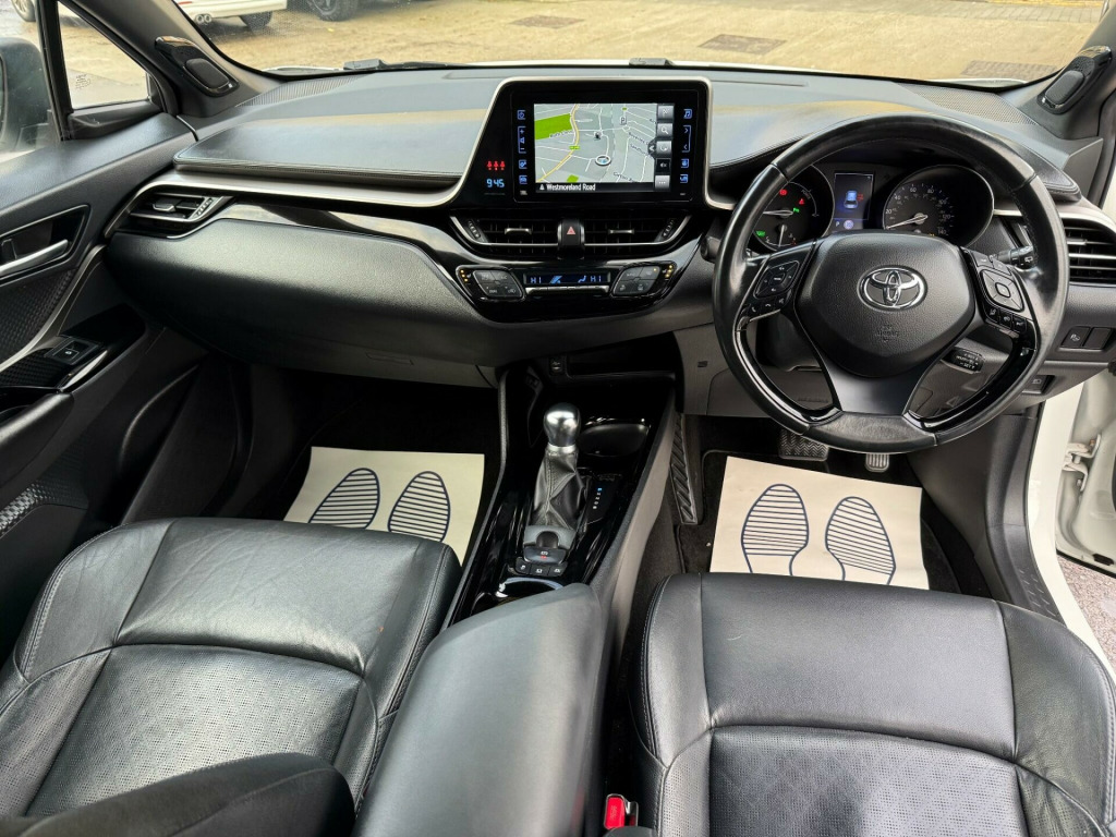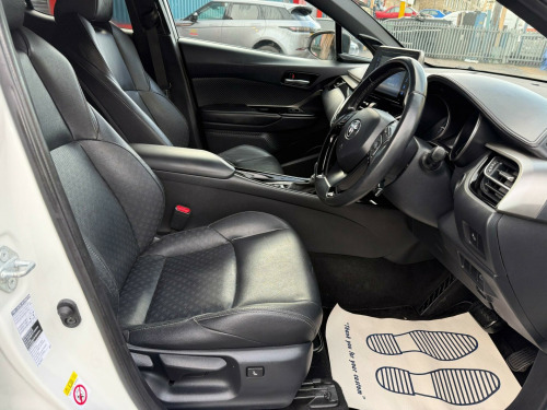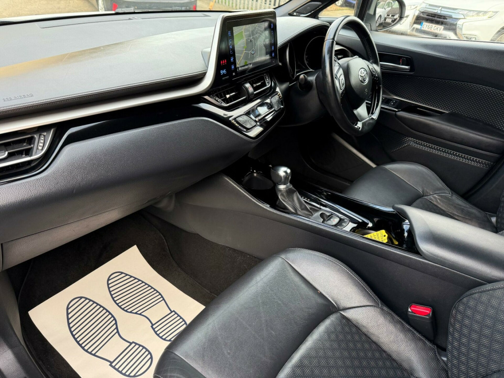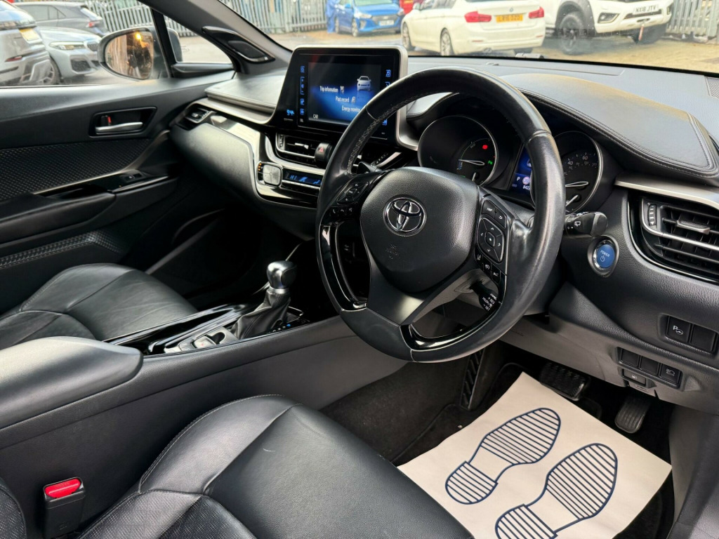 Discover this 2019 Toyota C-HR VVT-h Dynamic, a stylish and efficient hybrid that offers a compelling blend of technology and economy. This Euro 6 compliant model boasts a 1.8L petrol hybrid engine, ensuring a smooth and responsive driving experience. Inside, you'll find comfortable heated front seats, dual zone automatic air conditioning for personalised comfort, and seamless Bluetooth connectivity for your devices. The Dynamic trim also features advanced LED headlights with sequential indicators, enhancing both visibility and the vehicle's modern aesthetic. Navigating tight spaces is made effortless thanks to the intelligent park assist system, which includes front and rear parking sensors.This Toyota C-HR stands out with its impressive fuel economy, achieving a remarkable 60 mpg, which indicates it is more economical than many other vehicles in its class. Furthermore, its low CO2 emissions highlight its environmental consideration, and it sits in a low insurance group, suggesting that running costs are kept to a minimum. These factors combine to make this C-HR a sensible and appealing choice for those seeking a practical yet sophisticated vehicle. in alloy wheels - matt black dynamic, 3-spoke leather steering wheel with multimedia switches, 4.2in colour tft screen for multi-information display, abs - anti lock braking system, adjustable speed limiter - asl, audio and telephone switches on steering wheel, auto headlights, automatic headlight levelling, ba - brake assist, bi-tone black roof, black diffuser, black roof lining, black and body-coloured rear bumper, blind spot monitor - bsm, bluetooth connectivity, body-coloured door mirrors and handles, body-coloured front bumper, boot door release with push button, boot lamp, child safety locks on rear doors, dab digital radio, driver and front passenger personal lights, driver and front passenger whiplash injury lessening - wil - seats, dual-zone automatic air conditioning, electrically assisted power steering - eps, electronic parking brake, follow me home headlights, front cup holders, front fog lights - led, front led light guide, front passenger airbag on-off switch, front and rear power windows with auto up-down and anti-jam protection, glovebox with internal light, hac - hill start assist control, hard tonneau cover, heated driver and front passenger seat, high mounted rear brake light - led, isofix fixing points, illuminated entry system, immobiliser, intrusion alarm, led daytime running lights, led headlights with sequential led indicators, led rear brake lights, leather effect padded armrest on front console box, leather gear shift, light blue ambient lighting on front doors, motion sensor alarm, parking pack, parking sensors and intelligent park assist - ipa, power adjustable lumbar support on driver seat, power door locks, power-adjustable door mirrors, puddle lights on door mirrors, rain sensing wipers, rear cross traffic alert - rcta, rear lights - led, rear privacy glass, reversing camera, road sign assist, satin chrome rings on analogue speedometer, seat belt reminder - front and rear, silver deco line on dashboard, speakers x6, supplemental restraint system - srs - airbags - 7 airbags, tpms - tyre pressure monitoring system, tech pack, toyota safety sense, toyota touch 2 multimedia system with 7in display, toyota touch 2 with go navigation, traction control - trc, trailer sway control - tsc, usb and aux in connectors and 12v front outlet, vsc - vehicle stability control, voice recognition