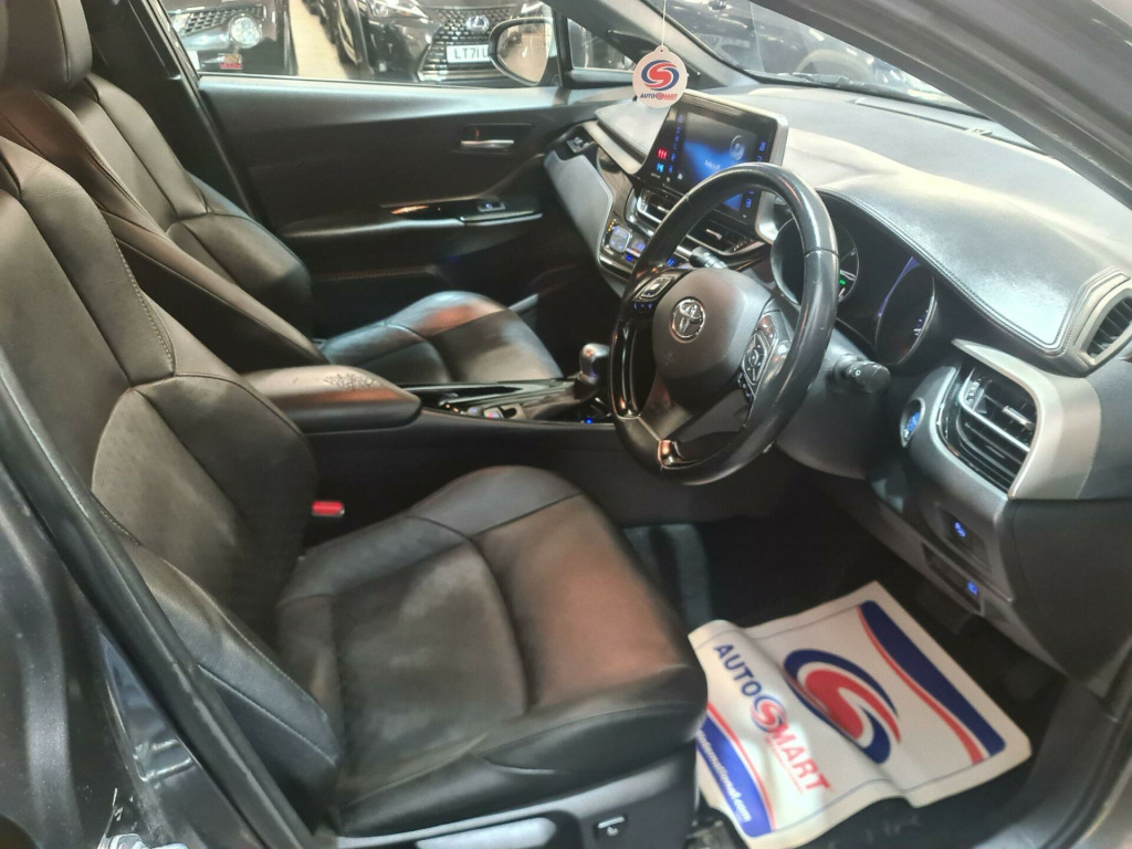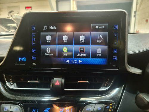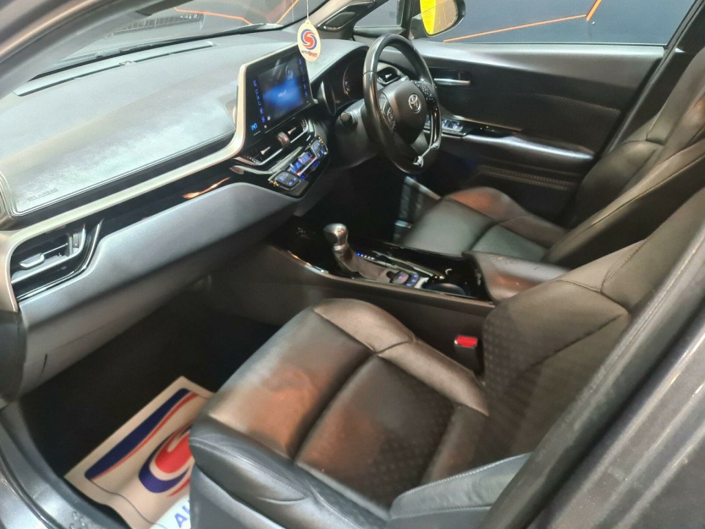 HPI clear, Fresh service, Full MOT history, Low Rate Finance Available, We offer great prices for your Part Exchange, Any Inspection welcome, delivery can be arranged, 3 to 48 months warranty available subject to terms and condition, 12 Months AA Breakdown included, temporary drive away Insurance can be arranged, Gearbox & Engine in Excellent Condition.This 2019 Toyota C-HR VVT-h Dynamic boasts exceptionally low mileage for its age, having covered just 50,221 miles, and comes with a clear vehicle history check. This stylish hatchback is powered by an efficient 1.8L Petrol Hybrid engine, meeting Euro 6 emission standards. The Dynamic trim level ensures a premium experience, featuring heated driver and front passenger seats for comfort in all seasons, and dual-zone automatic air conditioning to maintain the perfect cabin temperature. Driving is made safer and more convenient with LED headlights that include sequential LED indicators, automatic headlights that switch on when needed, and a blind spot monitor system to alert you to vehicles in your blind spots.The Toyota C-HR VVT-h Dynamic offers significant advantages, indicated by its impressive fuel economy of 60 mpg, which means fewer trips to the petrol station and lower running costs compared to many other vehicles. Furthermore, its low CO2 emissions contribute to a reduced environmental impact. This model also falls into a low insurance group, making it an economical choice for everyday driving. These highlights collectively demonstrate how this particular C-HR offers a compelling blend of efficiency, comfort, and advanced technology. in alloy wheels - black machined-faced - 5-double-spoke, 3-spoke leather steering wheel with multimedia switches, 4.2in colour tft screen for multi-information display, abs - anti lock braking system, adjustable speed limiter - asl, anodised blue decoration line on front door and dashboard, audio and telephone switches on steering wheel, auto folding - door mirrors, auto headlights, automatic headlight levelling, ba - brake assist, bi-tone black roof, black diffuser, black roof lining, black and body-coloured rear bumper, blind spot monitor - bsm, bluetooth connectivity, body coloured outside door handles, body-coloured front bumper, boot door release with push button, boot lamp, child safety locks on rear doors, dab digital radio, dark purple front door insert, driver and front passenger personal lights, driver and front passenger whiplash injury lessening - wil - seats, driver and passenger seatback pockets, dual-zone automatic air conditioning, electrically assisted power steering - eps, electronic parking brake, follow me home headlights, front cup holders, front fog lights - led, front led light guide, front passenger airbag on-off switch, front and rear power windows with auto up-down and anti-jam protection, glovebox with internal light, hac - hill start assist control, hard tonneau cover, heated driver and front passenger seat, high mounted rear brake light - led, isofix fixing points, illuminated entry system, immobiliser, intrusion alarm, led daytime running lights, led headlights with sequential led indicators, leather effect padded armrest on front console box, leather shift lever and knob, light blue ambient lighting on front doors, motion sensor alarm, parking pack, parking sensors and intelligent park assist - ipa, power adjustable lumbar support on driver seat, power door locks, push button start, rain sensing wipers, rear combination lights, rear cross traffic alert - rcta, rear privacy glass, rear window wiper, remote boot door release on key, reversing camera, satin chrome rings on analogue speedometer, seat belt reminder - front and rear, speakers x6, supplemental restraint system - srs - airbags - 7 airbags, tpms - tyre pressure monitoring system, toyota safety sense, toyota touch 2 multimedia system with 7in display, toyota touch 2 with go navigation, traction control - trc, tyre repair kit, usb and aux in connectors and 12v front outlet, vsc - vehicle stability control, voice recognition