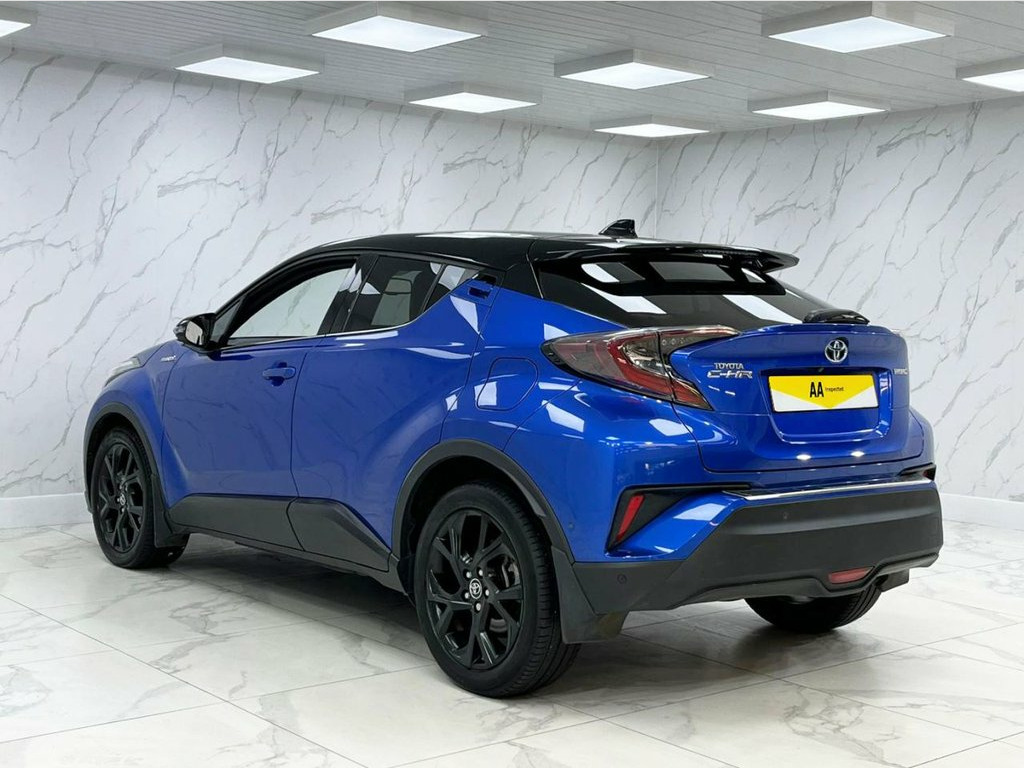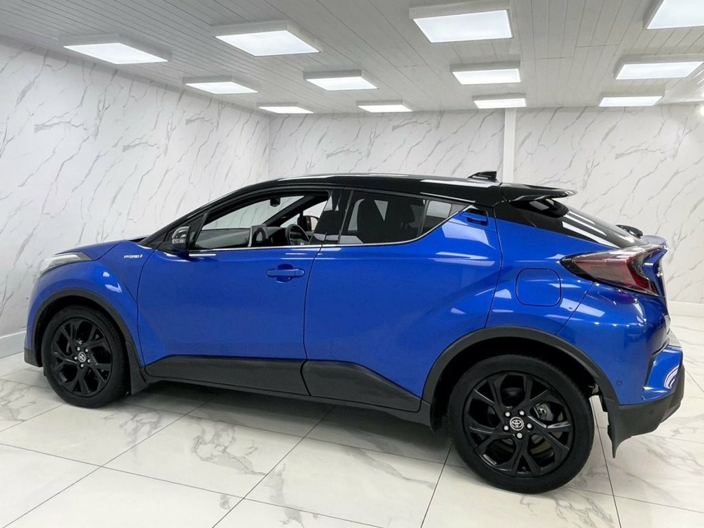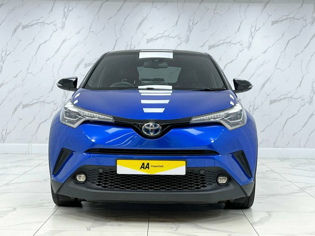 This 2019 Toyota C-HR VVT-h Dynamic is a standout example, boasting exceptionally low mileage of just 26,000 miles from its single owner. This Euro 6 compliant 1.8L petrol hybrid is presented in the Dynamic trim, featuring a desirable Leather Pack for enhanced interior comfort. The vehicle also benefits from a Tech Pack, which includes Blind Spot Assistance, keyless entry, and front and rear parking sensors, alongside adaptive LED headlights for improved visibility. Automatic headlights and dual zone climate control further add to the driving experience. You can drive away with confidence, as a 12 month MOT will be provided upon purchase. This C-HR is a smart choice for many reasons, offering an impressive fuel economy of 59 mpg, which is significantly better than many comparable vehicles. Its low CO2 emissions and low insurance group also contribute to lower running costs, making it an economical and practical option for everyday use. We offer a free 3-year warranty with all our vehicles for peace of mind with your purchase, please ask your salesman for more information! 18in Alloy Wheels - 5 Double Spoke - Mat, Leather Pack, Nebula Blue, Leather - Black, 18in Alloy Wheels - 10 Double Spoke - Da, 3-Spoke Nappa Leather Steering Wheel wit, 4.2in Colour TFT Screen for Multi-Inform, ABS - Anti Lock Braking System, Adaptive Cruise Control, Adaptive Front Light System - AFS, Adaptive LED Headlights, Adjustable Rear Headrests, Adjustable Speed Limiter -ASL- Switch on, Audio and Telephone Switches on Steering, Auto Headlights, Automatic Headlight Cut-Off, Automatic Headlight Levelling, Automatic High Beam, Black Bi-Tone Roof, Black Centre Console, Black Front Bumper, Black Front Door Assist Grips, Black Lower Dashboard, Black Lower Driver Dashboard, Black Upper Fron