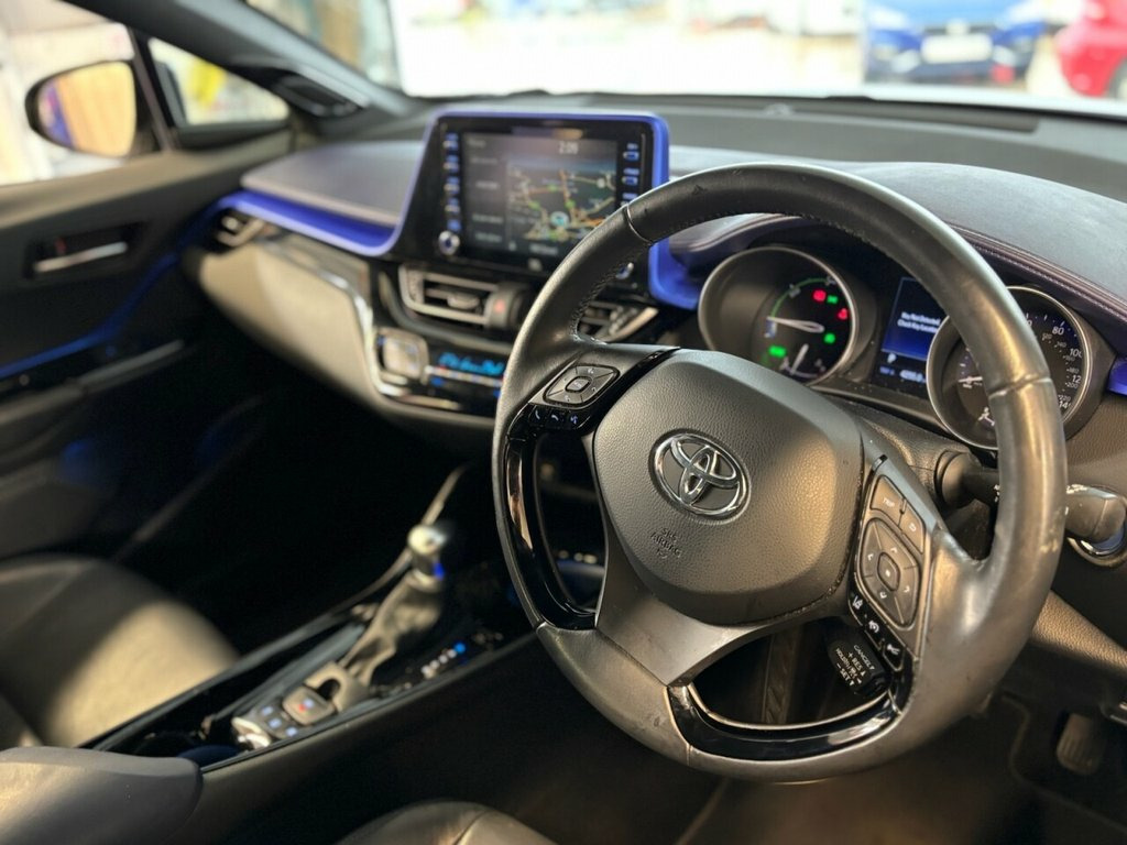 1 OWNER FROM NEW+HISTORY+MEDIA+FULL LEATHER SEATS+18" ALLOYS+NAV+PRIVACY+JBL AUDIO SYSTEM+PROTECTION PACK+BLUETOOTH+USB+AUX+DAB+CRUISE+HEATED FRONT SEATS+HPI CLEAR+VOSA HISTORY+FULL DEALER FACILITIES+FINANCE ARRANGED+CLEAN +GREAT DRIVE+GOOD MPG, The car is in very good condition in and out . Bodywork and interior clean for age and mileage . Interior is clean and tyres good ,Engine and gearbox in good order. This 2020 Toyota C-HR VVT-h Dynamic is a superb example, having been owned by just one person from new. This stylish hatchback features a 1.8L Petrol Hybrid engine, meeting Euro 6 emission standards. Inside, you'll find the advanced Tech Pack, which includes Blind Spot Assistance, Keyless Entry, and both front and rear parking sensors for added convenience. The Toyota Touch 2 Multimedia System with its 7in display seamlessly integrates Android Auto and Apple CarPlay, keeping you connected on the go. Enjoy a comfortable cabin with Dual-Zone Automatic Air Conditioning and stay connected with Bluetooth. A reversing camera further aids your parking manoeuvres. This C-HR Dynamic offers excellent running costs, achieving an impressive 59 miles per gallon, which is better than many similar vehicles. Its low CO2 emissions and low insurance group also contribute to its affordability. These highlights demonstrate how this Toyota C-HR provides a more economical and cost effective ownership experience compared to other cars in its class. 18in Alloy Wheels - 10 Double Spoke - Da, 3-Spoke Nappa Leather Steering Wheel wit, 4.2in Colour TFT Screen for Multi-Inform, ABS - Anti Lock Braking System, Adaptive Cruise Control, Adaptive Front Light System - AFS, Adaptive LED Headlights, Adjustable Rear Headrests, Adjustable Speed Limiter -ASL- Switch on, Audio and Telephone Switches on Steering, Auto Headlights, Automatic Headlight Cut-Off, Automatic Headlight Levelling, Automatic High Beam, Black and Body-Coloured Rear Bumper, Black Bi-Tone Roof, Black Centre Console, Black Front Bumper, Black Front Door Assist Grips, Black Lower Dashboard, Black Lower Driver Dashboard, Black Upper Front Grille, Blue Ambient Lighting on Front Cup Hold