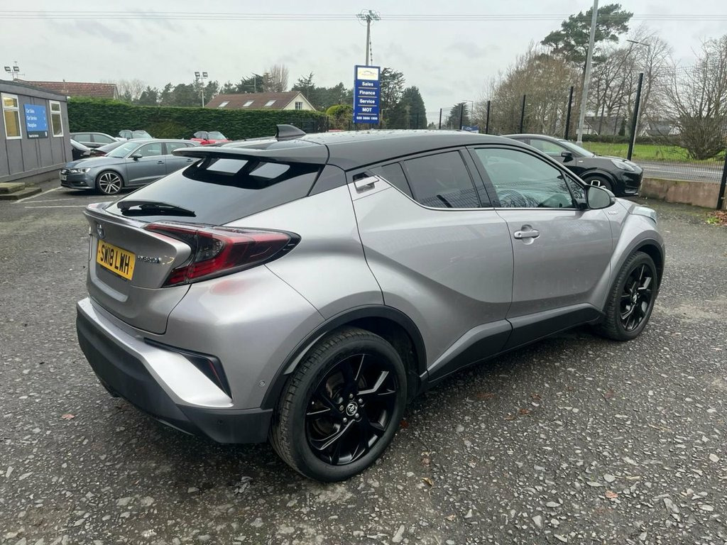 Step into standout design and effortless hybrid motoring with this 2018 Toyota C-HR 1.8 VVT-h Dynamic, a stylish compact SUV that blends futuristic looks, impressive fuel economy and Toyota's renowned reliability. The C-HR has become one of the most desirable hybrids on the market, and this Dynamic model showcases exactly why. With its sharp lines, coupe-inspired roofline and bold front-end styling, the C-HR makes a statement everywhere it goes. The Dynamic trim enhances the look with upgraded alloy wheels, privacy glass and premium exterior touches — giving the car a sporty, confident presence on the road. Inside, you'll find a modern, well-designed cabin with excellent build quality and comfort throughout. Thoughtful details, soft-touch materials and a driver-focused layout create an interior that feels genuinely premium. The blend of style and practicality makes every journey both enjoyable and relaxing. Powered by Toyota's proven 1.8 petrol hybrid system, the C-HR delivers smooth and quiet performance while keeping running costs impressively low. The self-charging hybrid setup seamlessly switches between electric and petrol power, meaning no plugging in — just efficient, effortless driving whether you're in town or on the motorway. The Dynamic specification is packed with desirable features, including a high-resolution touchscreen infotainment system, Bluetooth, reversing camera, Sat Nav (where fitted), dual-zone climate control, keyles 18in Alloy Wheels - Matt Black Dynamic, 3-Spoke Leather Steering Wheel with Mult, 4.2in Colour TFT Screen for Multi-Inform, ABS - Anti Lock Braking System, Adjustable Speed Limiter - ASL, Audio and Telephone Switches on Steering, Auto Headlights, Automatic Headlight Levelling, BA - Brake Assist, Bi-tone Black Roof, Black Diffuser, Black Roof Lining, Black and Body-Coloured Rear Bumper, Blind Spot Monitor - BSM, Bluetooth Connectivity, Body-Coloured Door Mirrors and Handles, Body-Coloured Front Bumper, Boot Door Release with Push Button, Boot Lamp, Child Safety Locks on Rear Doors, DAB Digital Radio, Driver and Front Passenger Personal Ligh, Driver and Front Passenger Whiplash Inju, Dual-Zone
