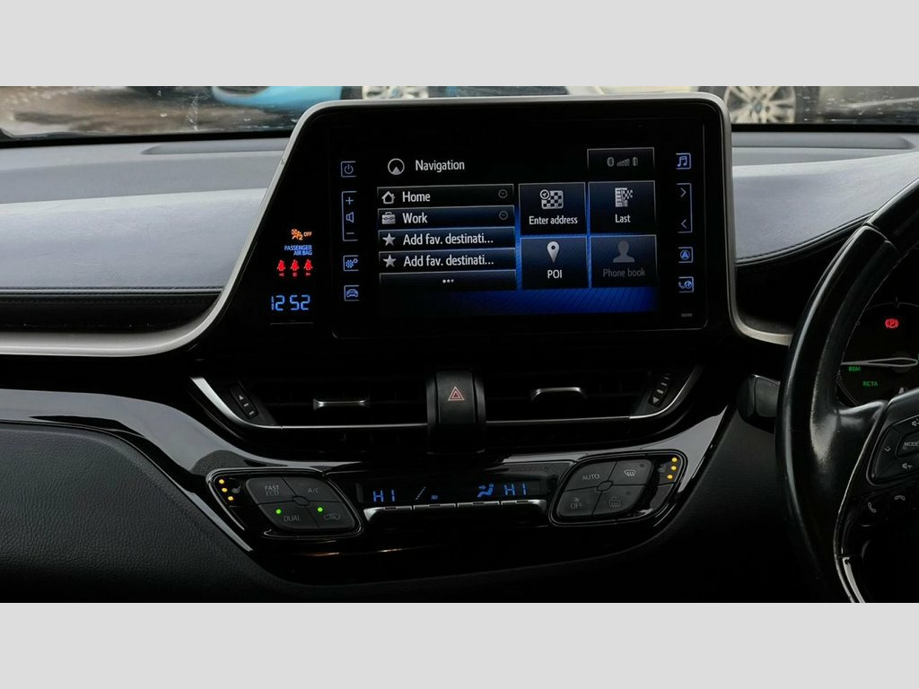 This 2018 Toyota C-HR VVT-h Dynamic is presented with a clear vehicle history check, offering peace of mind for its next owner. This stylish hatchback features a 1.8L petrol hybrid engine, meeting Euro 6 emissions standards. The Dynamic trim level includes a suite of desirable features such as heated front seats for enhanced comfort, LED headlights with sequential indicators for improved visibility and a modern look, and a reversing camera to aid with parking. Further enhancing its appeal, this C-HR is equipped with auto headlights and a Tech Pack that incorporates Blind Spot Assistance and keyless entry for added convenience and safety. The Toyota C-HR VVT-h Dynamic stands out with its impressive fuel economy, achieving a highlight of 61 miles per gallon, which indicates it is more economical than many similar vehicles. Its low CO2 emissions also contribute to its environmental credentials, further setting it apart. Additionally, this model benefits from a low insurance group, suggesting that running costs will be more affordable compared to other cars in its class. 18in Alloy Wheels - Matt Black Dynamic, 3-Spoke Leather Steering Wheel with Mult, 4.2in Colour TFT Screen for Multi-Inform, ABS - Anti Lock Braking System, Adjustable Speed Limiter - ASL, Audio and Telephone Switches on Steering, Auto Headlights, Automatic Headlight Levelling, BA - Brake Assist, Bi-tone Black Roof, Black Diffuser, Black Roof Lining, Black and Body-Coloured Rear Bumper, Blind Spot Monitor - BSM, Bluetooth Connectivity, Body-Coloured Door Mirrors and Handles, Body-Coloured Front Bumper, Boot Door Release with Push Button, Boot Lamp, Child Safety Locks on Rear Doors, DAB Digital Radio, Driver and Front Passenger Personal Ligh, Driver and Front Passenger Whiplash Inju, Dual-Zone
