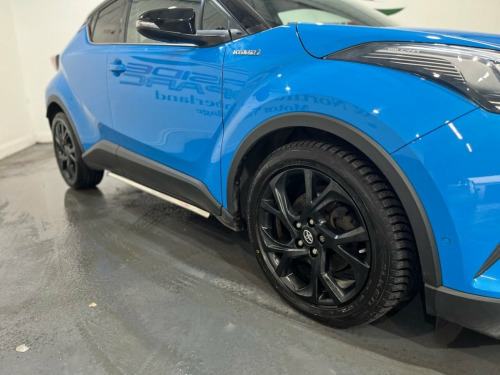 This Toyota C-HR 1.8 VVT-h Dynamic SUV is a stylish and efficient petrol hybrid, offering smooth CVT automatic performance and excellent economy while meeting Euro 6 emissions standards. The car has had just two owners and is supplied with two keys along with a full Toyota main dealer service history, with maintenance recorded at 12, 26, 40, 57 and 71 thousand miles, demonstrating careful ownership throughout. The Dynamic specification provides a strong level of equipment, including alloy wheels and privacy glass for a sporty appearance, along with folding door mirrors, automatic lights and automatic wipers for everyday convenience. Inside, the cabin is well appointed with heated front seats and climate control to ensure comfort in all seasons. Technology features include satellite navigation, DAB radio and Bluetooth connectivity, while the reverse camera makes parking and manoeuvring simple, making this Toyota C-HR a reliable, economical and well-equipped choice. 18in Alloy Wheels - Matt Black Dynamic, 3-Spoke Leather Steering Wheel with Mult, 4.2in Colour TFT Screen for Multi-Inform, ABS - Anti Lock Braking System, Adjustable Speed Limiter - ASL, Audio and Telephone Switches on Steering, Auto Headlights, Automatic Headlight Levelling, BA - Brake Assist, Bi-tone Black Roof, Black Diffuser, Black Roof Lining, Black and Body-Coloured Rear Bumper, Blind Spot Monitor - BSM, Bluetooth Connectivity, Body-Coloured Door Mirrors and Handles, Body-Coloured Front Bumper, Boot Door Release with Push Button, Boot Lamp, Child Safety Locks on Rear Doors, DAB Digital Radio, Driver and Front Passenger Personal Ligh, Driver and Front Passenger Whiplash Inju, Dual-Zone