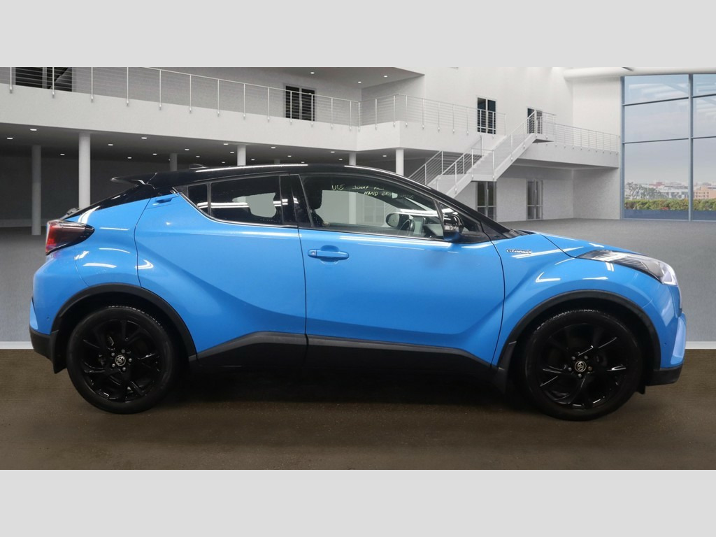 This 2018 Toyota C-HR 1.8 VVT-h Dynamic SUV with just 38057 miles on the clock is a reliable and efficient choice for anyone in the market for a Petrol Hybrid vehicle. With 5 seats and 5 doors, it offers plenty of space for passengers and cargo, while still being ULEZ compliant and stylish with its 18in Alloy Wheels and Bi-tone Black Roof. The MOT is valid until 06/05/2026, giving you peace of mind for years to come. This SUV is equipped with a powerful 122 ps engine and a smooth CVT transmission, making it a pleasure to drive on any road. The Black Diffuser and Body-Coloured Rear Bumper add a touch of sportiness to the exterior, while the Body-Coloured Door Mirrors and Handles give it a sleek and modern look. Whether you're navigating city streets or hitting the open road, this Toyota C-HR is ready for all of life's adventures. in alloy wheels - matt black dynamic, bi-tone black roof, black diffuser, black and body-coloured rear bumper, body-coloured door mirrors and handles, body-coloured front bumper, front led light guide, front and rear power windows with auto up-down and anti-jam protection, power-adjustable door mirrors, rear privacy glass, 3-spoke leather steering wheel with multimedia switches, audio and telephone switches on steering wheel, black roof lining, boot door release with push button, boot lamp, driver and front passenger personal lights, dual-zone automatic air conditioning, front cup holders, glovebox with internal light, hard tonneau cover, heated driver and front passenger seat, illuminated entry system, leather effect padded armrest on front console box, leather gear shift, light blue ambient lighting on front doors, power adjustable lumbar support on driver seat, rain sensing wipers, satin chrome rings on analogue speedometer, silver deco line on dashboard, tech pack, 4.2in colour tft screen for multi-information display, bluetooth connectivity, dab digital radio, speakers x6, toyota touch 2 multimedia system with 7in display, toyota touch 2 with go navigation, usb and aux in connectors and 12v front outlet, abs - anti lock braking system, ba - brake assist, child safety locks on rear doors, driver and front passenger whiplash injury lessening - wil - seats, electronic parking brake, front passenger airbag on-off switch, hac - hill start assist control, isofix fixing points, immobiliser, intrusion alarm, motion sensor alarm, parking pack, power door locks, rear cross traffic alert - rcta, seat belt reminder - front and rear, supplemental restraint system - srs - airbags - 7 airbags, toyota safety sense, traction control - trc, trailer sway control - tsc, vsc - vehicle stability control, adjustable speed limiter - asl, blind spot monitor - bsm, electrically assisted power steering - eps, parking sensors and intelligent park assist - ipa, reversing camera, road sign assist, tpms - tyre pressure monitoring system, voice recognition, auto headlights, automatic headlight levelling, follow me home headlights, front fog lights - led, high mounted rear brake light - led, led daytime running lights, led headlights with sequential led indicators, led rear brake lights, puddle lights on door mirrors, rear lights - led