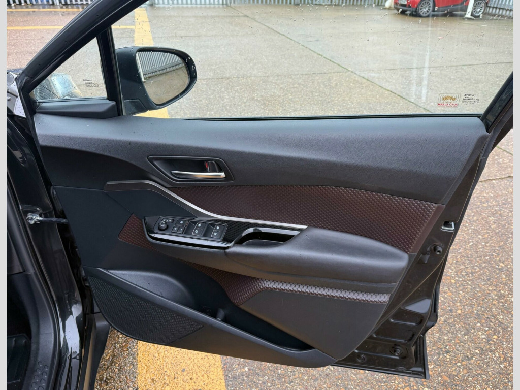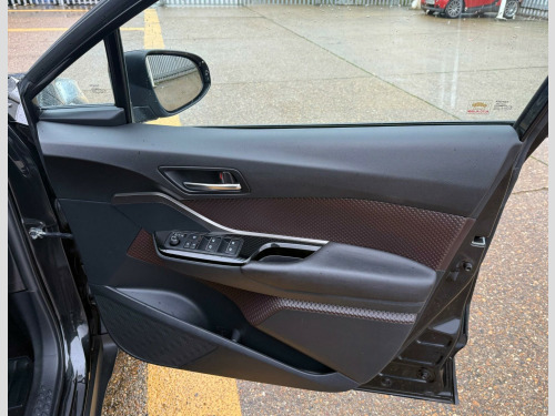 This 2017 Toyota C-HR VVT-h Excel is presented with a clear vehicle history check, offering you peace of mind. This stylish hatchback features a 1.8L petrol hybrid engine, meeting Euro 6 emissions standards. The Excel trim level ensures a well equipped experience, with notable features including a Smart Entry and Push Button Start System for effortless access and ignition. Maneuvering is made simple with a reversing camera and parking assistance, complemented by front and rear parking sensors and Intelligent Park Assist. Auto headlights adjust automatically, and Bluetooth connectivity keeps you connected on the go.The Toyota C-HR VVT-h Excel stands out with its impressive fuel economy, achieving a remarkable 72 mpg, which indicates it is more economical than many similar vehicles. Furthermore, its low insurance group rating suggests that running costs will be lower compared to other cars in its class. The vehicle also boasts low CO2 emissions, highlighting its environmental efficiency and potentially lower tax implications. ather pack, 18in alloy wheels - black machined-faced - 10-double-spoke, 3-spoke leather steering wheel with multimedia switches, 4.2in colour tft screen for multi-information display, abs - anti lock braking system, adjustable speed limiter - asl, audio and telephone switches on steering wheel, auto folding - door mirrors, auto headlights, ba - brake assist, black diffuser, black roof lining, black and body-coloured rear bumper, blind spot monitor - bsm, bluetooth connectivity, body coloured outside door handles, body-coloured front bumper, boot door release with push button, boot lamp, child safety locks on rear doors, dab digital radio, dark brown front door insert, driver and front passenger personal lights, driver and front passenger whiplash injury lessening - wil - seats, driver and passenger seatback pockets, dual-zone automatic air conditioning, electrically assisted power steering - eps, electronic parking brake, follow me home headlights, front cup holders, front fog lights, front passenger airbag on-off switch, front and rear power windows with auto up-down and anti-jam protection, glovebox with internal light, hac - hill start assist control, hard tonneau cover, heated driver and front passenger seat, high mounted rear brake light - led, humidifying nanoe air purifier, isofix fixing points, illuminated entry system, immobiliser, intrusion alarm, led daytime running lights, leather effect padded armrest on front console box, leather shift lever and knob, light blue ambient lighting on front doors, motion sensor alarm, parking pack, parking sensors and intelligent park assist - ipa, power adjustable lumbar support on driver seat, power door locks, projector and reflector halogen headlights, push button start, rain sensing wipers, rear combination lights, rear cross traffic alert - rcta, rear privacy glass, rear window wiper, remote boot door release on key, reversing camera, satin chrome rings on analogue speedometer, seat belt reminder - front and rear, silver decoration line on front door and dashboard, smart entry and push button start system, speakers x6, supplemental restraint system - srs - airbags - 7 airbags, tpms - tyre pressure monitoring system, toyota safety sense, toyota touch 2 multimedia system with 7in display, toyota touch 2 with go navigation, traction control - trc, tyre repair kit, usb and aux in connectors and 12v front outlet, vsc - vehicle stability control, voice recognition