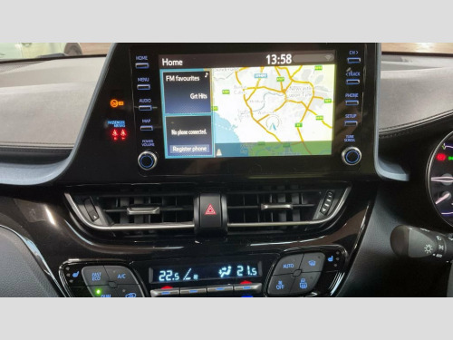With only one owner and a remarkably low mileage of 17649 miles for its 2021 registration, this Toyota C-HR VVT-h Design presents an exceptional find. This Euro 6 compliant, 1.8L petrol hybrid model boasts a clear vehicle history check and an MOT valid until September 2026, offering peace of mind. Inside, you'll appreciate the convenience of Dual-Zone Automatic Air Conditioning, seamless Smartphone Integration with Apple CarPlay and Android Auto, and the ease of a Reversing Camera for parking assistance. The Design trim also features Auto Headlights and Smart Entry with Push-Button Start for effortless access and operation. This Toyota C-HR is designed to impress with its efficiency and cost-effectiveness. Its outstanding fuel economy of 58 mpg, combined with a low insurance group and low CO2 emissions, means you can expect lower running costs compared to many other vehicles in its class. These highlights demonstrate how this particular C-HR offers a more economical and environmentally conscious driving experience. Fabric - Black with Light Blue Stitching, Eclipse Black, 18in Alloy Wheels - 5 Double Spoke - Bla, 3-Spoke Nappa Leather Steering Wheel, 4.2in Colour TFT Screen for Multi-Inform, ABS - Anti Lock Braking System, AM-FM Radio, Acoustic Vehicle Alert System - AVAS, Adaptive Cruise Control, Adjustable Rear Headrests, Adjustable Speed Limiter - ASL, Adjustable Speed Limiter -ASL- Switch on, Anti-Jam Protection on Power Windows, Audio and Telephone Switches on Steering, Auto Dimming Rear View Mirror, Auto Headlights, Auto Up and Down Function on Power Windo, Auto Wipers, Automatic Headlight Cut-Off, Automatic High Beam, Automatically Retractable Door Mirrors, Black Centre Console, Black Front Door