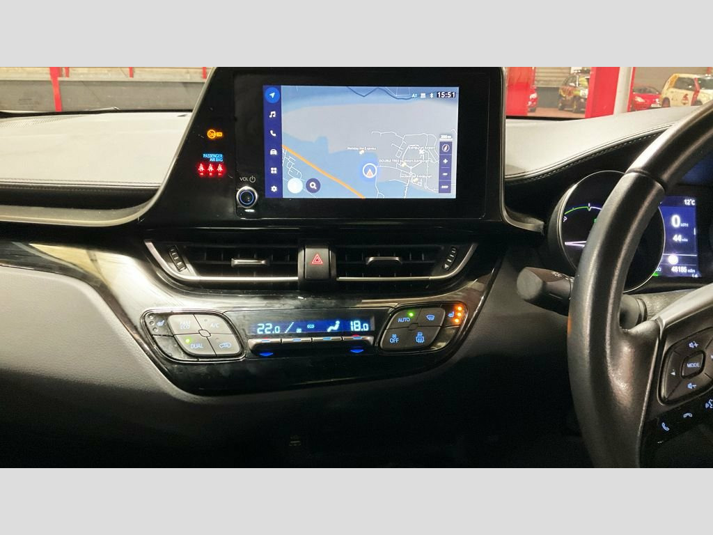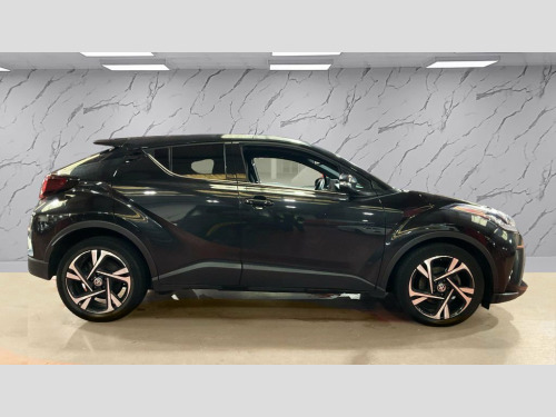 This 2023 Toyota C-HR VVT-h Design is a superb example, boasting a full service history and having had only one owner from new. This stylish compact SUV features a responsive 1.8L petrol hybrid engine, meeting Euro 6 emissions standards. It comes equipped with desirable features such as 18in matt black alloy wheels, Bluetooth connectivity, a reversing camera for easier parking, and smart entry with push button start for keyless convenience. The advanced Blind Spot Monitor system also enhances safety and awareness on the road. You can drive with confidence knowing this C-HR comes with a 36 month warranty and a 12 month MOT provided on purchase. Its impressive fuel economy of 58 mpg highlights its efficiency, making it a cost effective choice. Furthermore, its low CO2 emissions and low insurance group indicate that running costs are kept to a minimum, setting it apart from many other vehicles in its class. 18in Alloy Wheels - 5 Double Spoke - Mat, Eclipse Black, Fabric with Partial Synthetic Leather - , 18in Alloy Wheels - 5 Double Spoke, 3-Spoke Nappa Leather Steering Wheel, 4.2in Colour TFT Screen for Multi-Inform, 8in HD Toyota Smart Connect Multimedia S, ABS - Anti Lock Braking System, AM-FM Radio, Acoustic Vehicle Alert System - AVAS, Adaptive Cruise Control, Adjustable Rear Headrests, Adjustable Speed Limiter - ASL, Adjustable Speed Limiter -ASL- Switch on, Anti-Jam Protection on Power Windows, Audio and Telephone Switches on Steering, Auto Dimming Rear View Mirror, Auto Headlights, Auto Up and Down Function on Power Windo, Auto Wipers, Automatic Headlight Cut-Off, Automatic High Beam, A