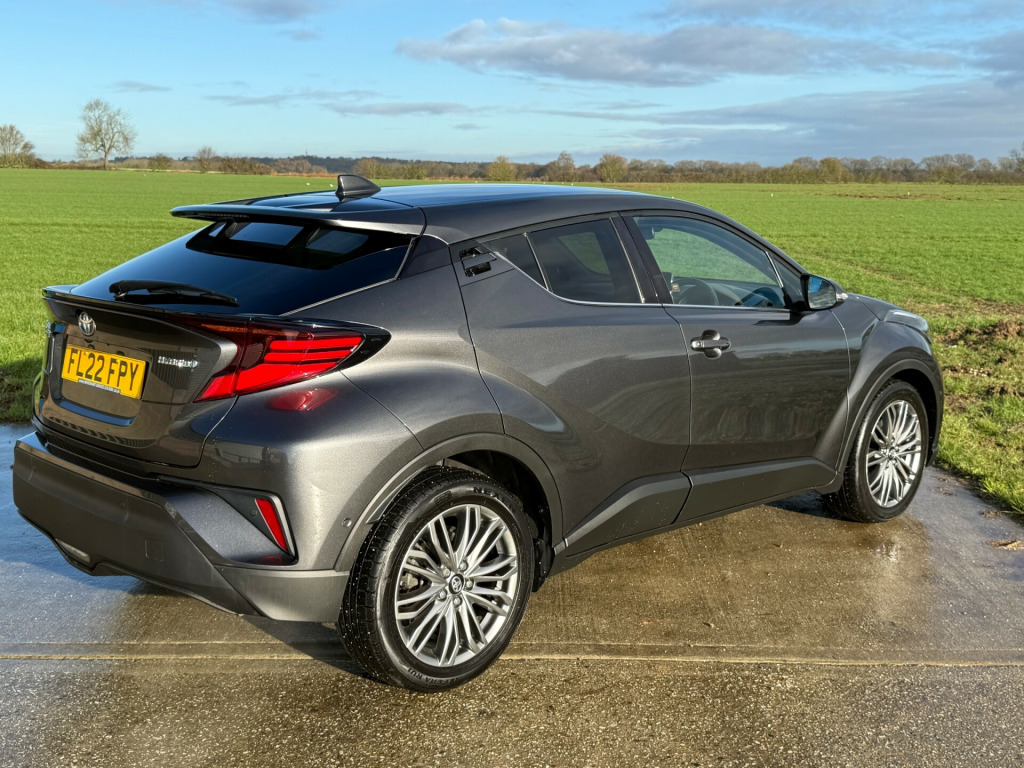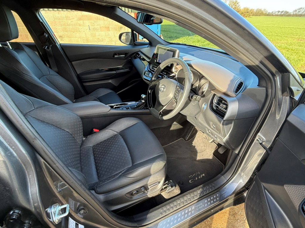 Here at Whitehart Service Station, we are delighted to offer this 2022 ''22'' Toyota C-HR 1.8 Excel CVT Automatic 5door, Petrol self-charging hybrid, finished in metallic grey with only 37200 miles and a Full Service History. Some of the massive specification includes Climate control air conditioning, heated front seats, Distronic cruise control, reversing camera, lane departure warning system, blind spot monitoring, satellite navigation, Bluetooth, steering wheel controls, and much more. If you have any questions, please call the showroom on 01702 202202 or Stuart direct on 07814 001598. in alloy wheels - 10 double spoke - dark chrome, automatic headlight cut-off, black and body-coloured rear bumper, body coloured door handles, body coloured door mirrors, body coloured front spoiler, body-coloured front bumper, chrome interior door handles, electric and heated door mirrors, front led light guide, front power windows, honeycomb lower front grille, noise reduction layer on front windows and windscreen, privacy glass, rear power windows, rear spoiler, rear tailgate, tyre repair kit, uv-filter on drivers and front passenger windows, uv-filter on rear windows, 3-spoke nappa leather steering wheel, adjustable rear headrests, adjustable speed limiter -asl- switch on steering wheel, audio and telephone switches on steering wheel, auto dimming rear view mirror, auto up and down function on power windows, black centre console, black front door assist grips, black lower dashboard, black lower driver dashboard, blue ambient lighting on front cup holders, blue ambient lighting on front doors, boot door release with push button, boot light, dark brown upper dashboard, driver and front passenger personal lights, driver and passenger seatback pockets, dual-zone automatic air conditioning, floor mats, front cup holders, front and centre pillar assist grips, glovebox with light, hard tonneau cover, heated driver and front passenger seat, hooks for luggage holding belt, humidifying nanoe air purifier, illuminated entry system, leather gear shift, leather pack, light on driver sun visor, light on passenger sun visor, manual height adjustable front passengers seat, manual tilt steering wheel, manually reclining front passengers seat, manually sliding front passenger seat, microphone on front personal light, mirror on driver sun visor, mirror on passenger sun visor, multimedia switches on steering wheel, pollen air filter, power adjustable lumbar support on driver seat, power passenger window lock, rear headrests x3, rear seats 60-40 split folding, rear sequential indicators, rear window defogger, seats - front sport, shopping bag hooks, silver deco line on upper dashboard, slow opening lower glovebox, steering wheel - heated, steering wheel - manual telescopic adjustment, tech pack, voice recognition switch on steering wheel, 4.2in colour tft screen for multi-information display, 8in hd toyota smart connect multimedia system, am-fm radio, bluetooth connectivity, digital audio broadcast - dab, front 12v power outlet, shark fin antenna, speakers x6, usb connector, wi-fi connectivity, abs - anti lock braking system, acoustic vehicle alert system - avas, anti-jam protection on power windows, child safety locks on rear doors, driver and front passenger whiplash lessening - headrest, electronic parking brake, glass-breaking alarm sensors, hac - hill start assist control, isofix seat fixing - rear, immobiliser, intrusion alarm, motion sensor alarm, parking pack, passenger airbag on-off switch, power door locks, pre-collision warning system with pedestrian detection, rear window wiper, remote door locking, seat belt - pre-tensioners and force limiters, seat belt reminder - front and rear, smart entry and push-button start, supplemental restraint system - srs - airbags - 5 airbags, vsc - vehicle stability control, adaptive cruise control, adjustable speed limiter - asl, electric power steering - eps, hybrid system indicator, lane departure alert with switches on steering wheel, reversing camera, road sign assist, simple intelligent park assist, tpms - tyre pressure monitoring system, voice recognition, adaptive front light system - afs, adaptive led headlights, auto headlights, automatic headlight levelling, automatic high beam, follow me home headlights, front fog lights - led, led daytime running lights, led high-mounted stop light, led rear brake lights, led rear combination lights