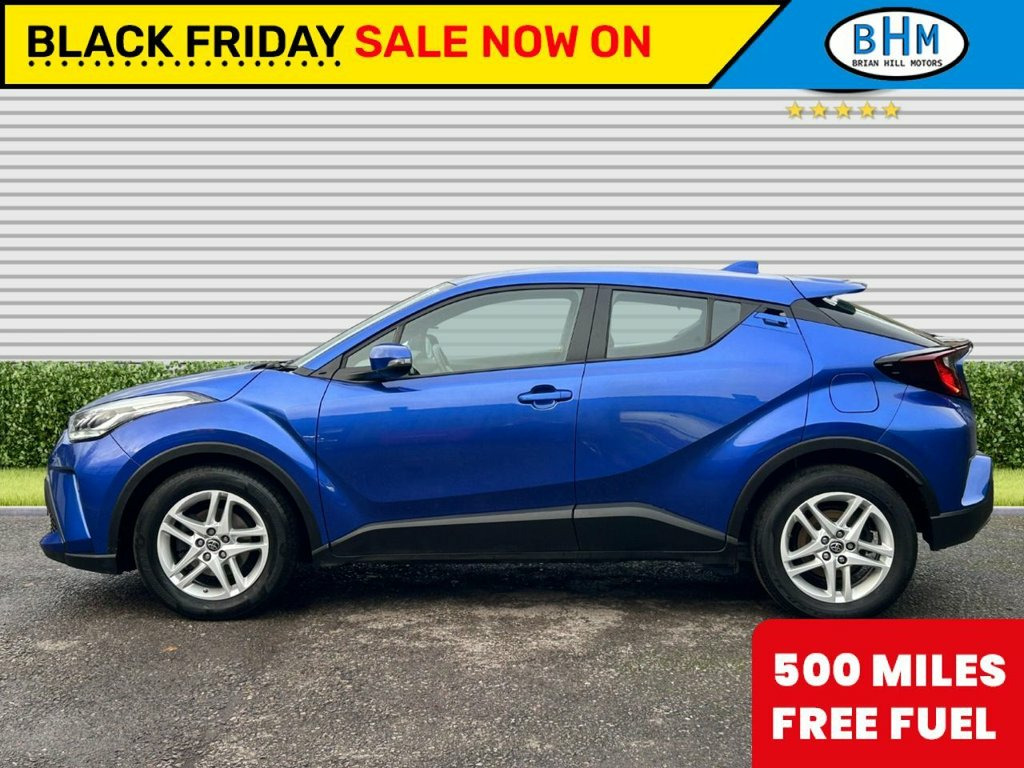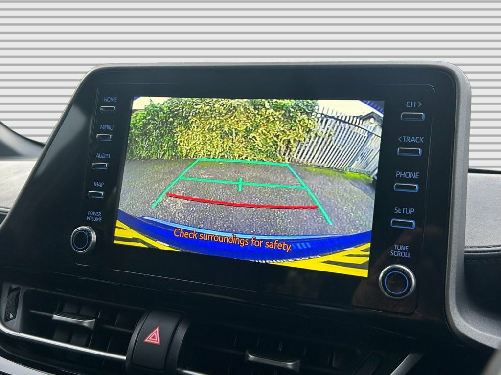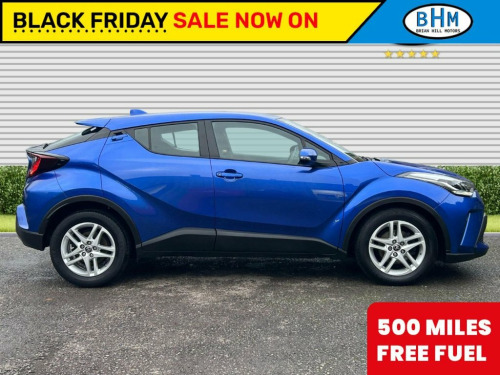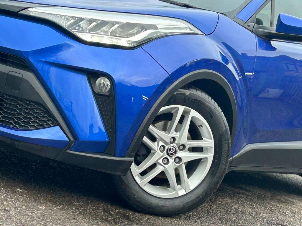 This 2022 Toyota C-HR VVT-h Icon is a superb example, boasting a full dealership service history and having had only one owner from new. This Euro 6 compliant, 1.8L petrol hybrid model offers an impressive fuel economy of 58 miles per gallon. Its Icon trim level comes equipped with practical features such as LED reflector headlights, auto headlights, and a reversing camera for enhanced visibility and ease of parking. Stay connected on the go with seamless Bluetooth connectivity, and enjoy personalised comfort thanks to the dual-zone automatic air conditioning with climate control. The highlights of this Toyota C-HR demonstrate its excellent value and efficiency compared to other vehicles in its class. Its low CO2 emissions and low insurance group rating mean lower running costs, making it an economical choice for many drivers. The efficient 1.8L petrol hybrid engine contributes significantly to its outstanding 58 mpg fuel economy, ensuring fewer trips to the petrol station. Midnight Teal, Fabric - Black with Light Grey Stitching, 17in Alloy Wheels - 5 Double Spoke - Sil, 3-Spoke Nappa Leather Steering Wheel, 4.2in Colour TFT Screen for Multi-Inform, ABS - Anti Lock Braking System, AM-FM Radio, Acoustic Vehicle Alert System - AVAS, Adaptive Cruise Control, Adjustable Rear Headrests, Adjustable Speed Limiter - ASL, Adjustable Speed Limiter -ASL- Switch on, Anti-Jam Protection on Power Windows, Audio and Telephone Switches on Steering, Auto Headlights, Auto Up and Down Function on Power Windo, Automatic Headlight Cut-Off, Automatic High Beam, Black Front Door Assist Grips, Black Lower Dashboard, Black Lower Driver Dashboard, Black Upper Dashboard, Black and Body-C