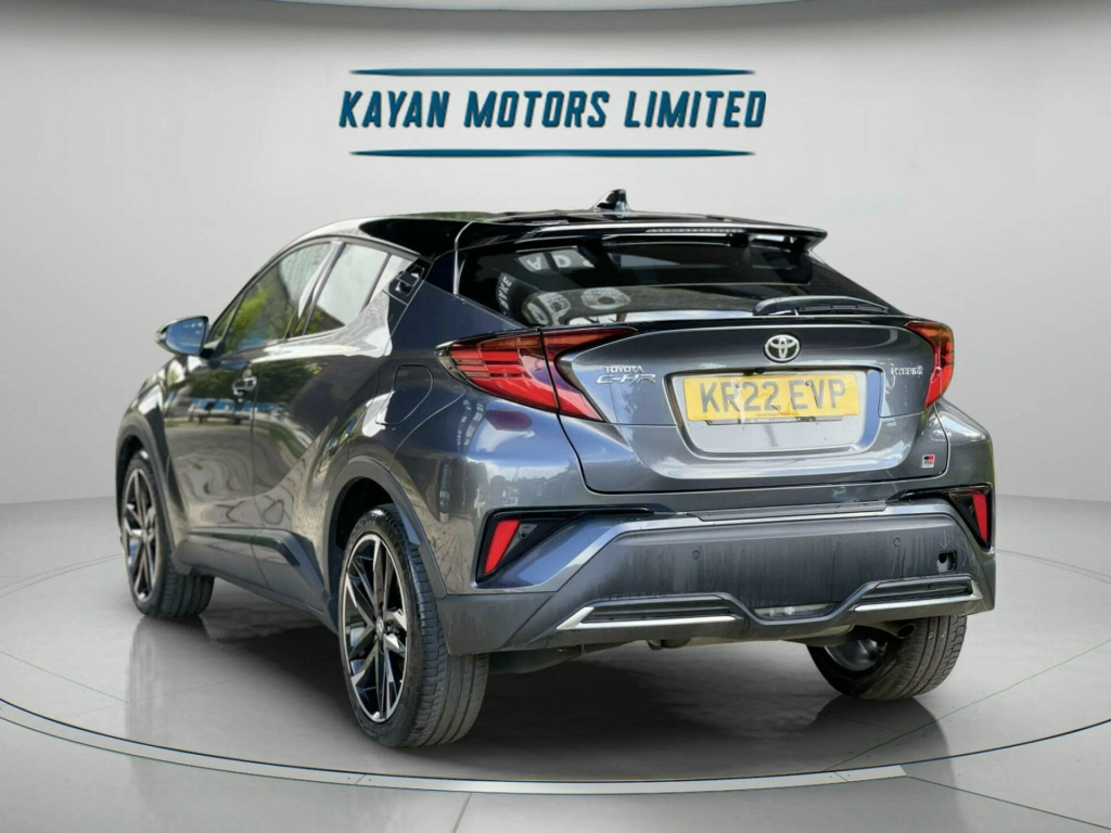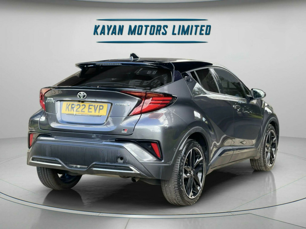 ------PART/EXCHANGE WELCOME. NATIONWIDE WIDE DELIVERY. -----,HPI CLEAR, ULEZ COMPLIANCE, FULL DEALERSHIP-SERVICE HISTORY, 2 KEYS, AND 1 YEAR FREE WARRANTY FOR YOUR PEACE OF MIND.=================This 2022 Toyota C-HR VVT-h GR SPORT is a superb example, boasting a full dealership service history and having had only one owner from new. As a Euro 6 compliant vehicle, it features a 1.8L petrol hybrid engine, offering an impressive 58 miles per gallon. The GR SPORT trim ensures a stylish and dynamic presence, complemented by notable features such as dual zone automatic air conditioning, heated front seats for enhanced comfort, and a reversing camera for easier parking. You can also enjoy seamless connectivity with smartphone integration for both Apple CarPlay and Android Auto, alongside auto headlights for convenience. With its MOT valid until May 2026 and a clear vehicle history check, this C-HR provides excellent peace of mind, further supported by a 12 month warranty.The appeal of this Toyota C-HR is further enhanced by its economical running costs, being in a low insurance group and producing low CO2 emissions, making it a sensible choice for many drivers. These highlights demonstrate how this particular vehicle offers a superior ownership experience compared to similar models on the market, combining efficiency, technology, and comfort in a well maintained package. in alloy wheels - 5-double-spoke - black machined-face, 3-spoke perforated leather steering wheel, 4.2in colour tft screen for multi-information display, abs - anti lock braking system, am-fm radio, acoustic vehicle alert system - avas, adaptive cruise control, adaptive front light system - afs, adaptive led headlights, adjustable rear headrests, adjustable speed limiter - asl, adjustable speed limiter -asl- switch on steering wheel, anti-jam protection on power windows, audio and telephone switches on steering wheel, auto dimming rear view mirror, auto headlights, auto up and down function on power windows, automatic headlight cut-off, automatic headlight levelling, automatic high beam, black bi-tone roof, black centre console, black front door assist grips, black front spoiler, black lower dashboard, black lower driver dashboard, black upper dashboard, black and body-coloured rear bumper, blue ambient lighting on front cup holders, blue ambient lighting on front doors, bluetooth connectivity, body coloured door handles, body coloured door mirrors, body-coloured front bumper, boot door release with push button, boot light, child safety locks on rear doors, chrome interior door handles, cool silver deco line on upper dashboard, dark chrome lower front grille, digital audio broadcast - dab, driver and front passenger personal lights, driver and front passenger whiplash lessening - headrest, driver and passenger seatback pockets, dual-zone automatic air conditioning, electric power steering - eps, electric and heated door mirrors, electronic parking brake, floor mats, follow me home headlights, front 12v power outlet, front cup holders, front fog lights - led, front led light guide, front power windows, front and centre pillar assist grips, glass-breaking alarm sensors, glovebox with light, hac - hill start assist control, hard tonneau cover, heated driver and front passenger seat, hooks for luggage holding belt, humidifying nanoe air purifier, hybrid system indicator, isofix seat fixing - rear, illuminated entry system, immobiliser, intrusion alarm, led daytime running lights, led high-mounted stop light, led rear brake lights, led rear combination lights, lane departure alert with switches on steering wheel, leather gear shift, light on driver sun visor, light on passenger sun visor, manual height adjustable front passengers seat, manual height adjustable for drivers seat, manual tilt steering wheel, manually reclining driver seat, manually reclining front passengers seat, manually sliding drivers seat, manually sliding front passenger seat, microphone on front personal light, mirror on driver sun visor, mirror on passenger sun visor, motion sensor alarm, multimedia switches on steering wheel, noise reduction layer on front windows and windscreen, parking pack, passenger airbag on-off switch, pollen air filter, power adjustable lumbar support on driver seat, power door locks, power passenger window lock, pre-collision warning system with pedestrian detection, privacy glass, rear headrests x3, rear power windows, rear seats 60-40 split folding, rear sequential indicators, rear spoiler, rear tailgate, rear window defogger, rear window wiper, remote door locking, reversing camera, road sign assist, seat belt - pre-tensioners and force limiters, seat belt reminder - front and rear, seats - front sport, shark fin antenna, shopping bag hooks, simple intelligent park assist, slow opening lower glovebox, smart entry and push-button start, smartphone integration - apple car play and android auto, speakers x6, steering wheel - manual telescopic adjustment, supplemental restraint system - srs - airbags - 5 airbags, tpms - tyre pressure monitoring system, tech pack, toyota touch 2 multimedia system with 8in display, toyota touch 2 with go navigation system, tyre repair kit, usb connector, uv-filter on drivers and front passenger windows, uv-filter on rear windows, vsc - vehicle stability control, voice recognition, voice recognition switch on steering wheel, wi-fi connectivity
