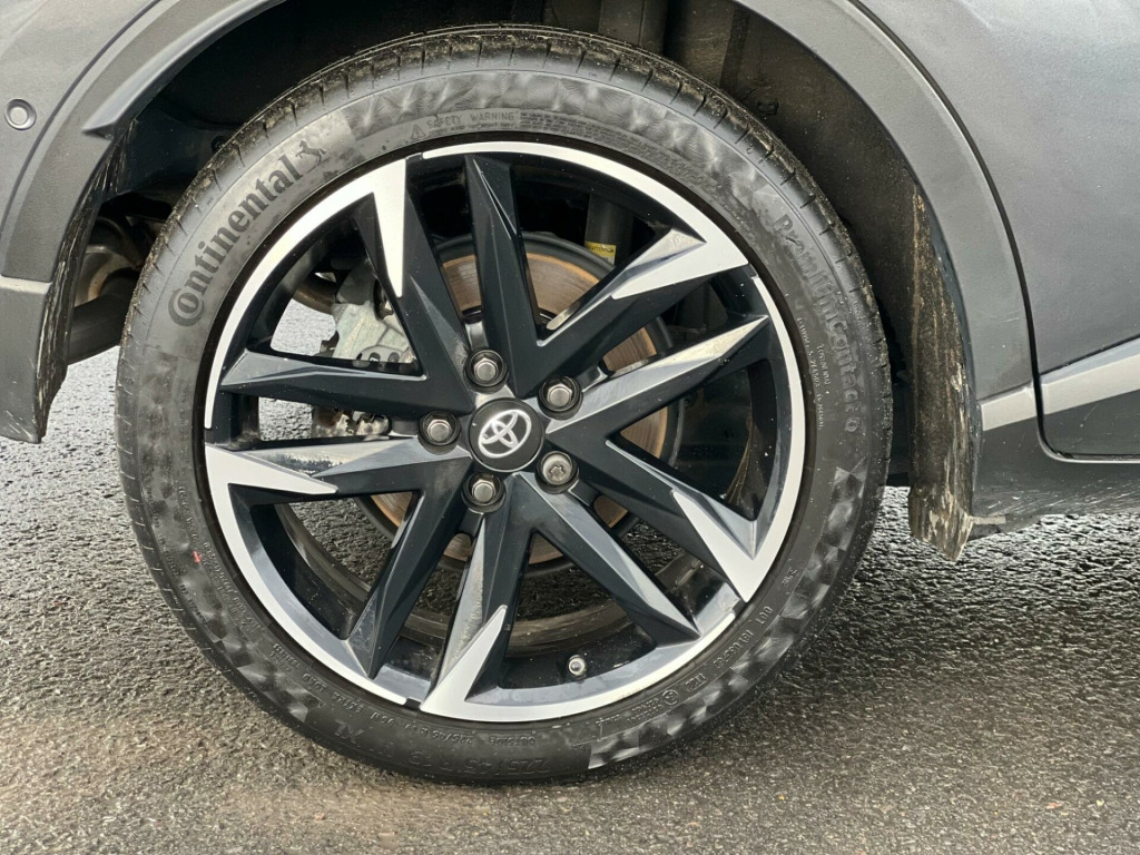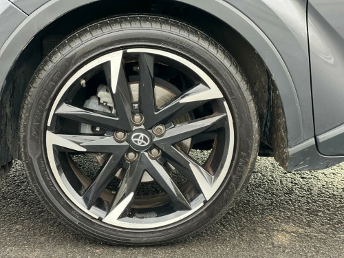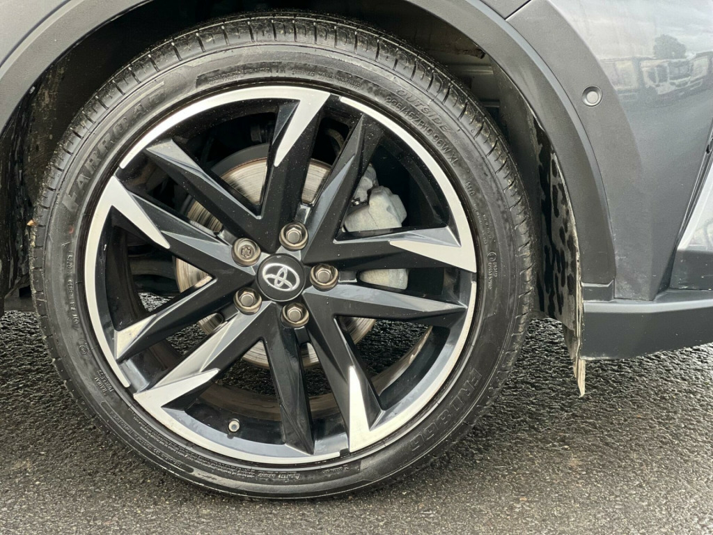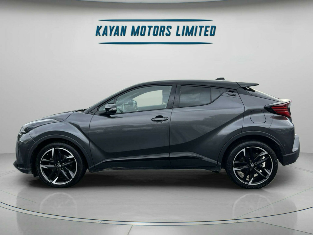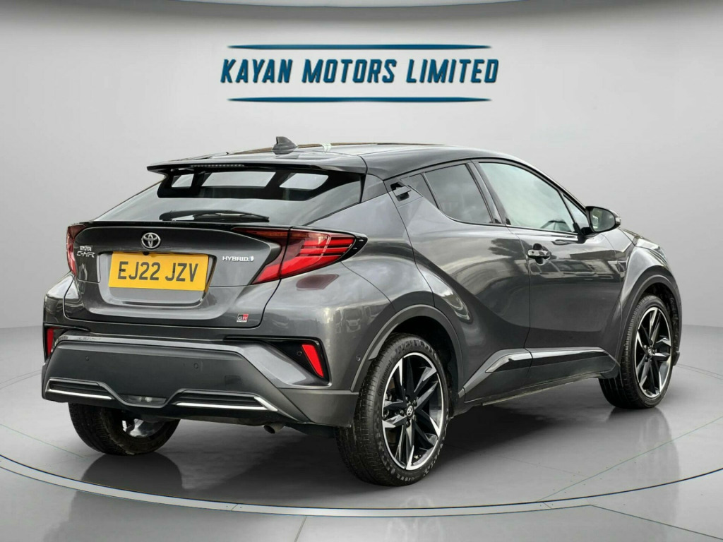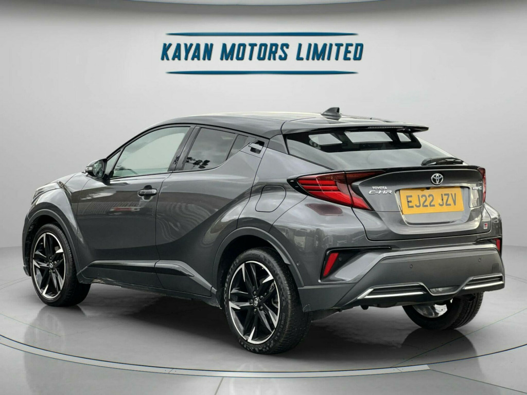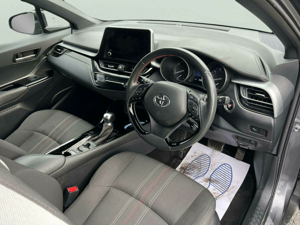 ------PART/EXCHANGE WELCOME. NATIONWIDE WIDE DELIVERY. -----,HPI CLEAR, ULEZ COMPLIANCE, FULL DEALERSHIP-SERVICE HISTORY, AND 1 YEAR FREE WARRANTY FOR YOUR PEACE OF MIND.=================This 2022 Toyota C-HR VVT-h GR SPORT is a superb example, boasting a full dealership service history and a clear vehicle history check, ensuring complete peace of mind. With only 20,000 miles on the clock, it is exceptionally low for its age. This Euro 6-compliant 1.8L petrol hybrid is presented in the GR SPORT trim, offering a refined driving experience. It comes with a 12-month warranty, and its MOT is valid until June 2026. Notable features include Adaptive Cruise Control, a Tech Pack with Blind Spot Assistance and front and rear parking sensors, and the Toyota Touch 2 multimedia system with an 8-inch display, compatible with Android Auto and Apple CarPlay. Comfort is enhanced by heated front seats and automatic headlights.The highlights of this Toyota C-HR demonstrate its superior value. Achieving an impressive 58 mpg, it offers excellent fuel economy, making it an economical choice for daily driving. Its low insurance group rating further contributes to lower running costs. Furthermore, its low CO2 emissions are beneficial for the environment. These factors combined indicate that this C-HR is a more efficient and cost-effective option compared to many other vehicles in its class. in alloy wheels - 5-double-spoke - black machined-face, 3-spoke perforated leather steering wheel, 4.2in colour tft screen for multi-information display, abs - anti lock braking system, am-fm radio, acoustic vehicle alert system - avas, adaptive cruise control, adaptive front light system - afs, adaptive led headlights, adjustable rear headrests, adjustable speed limiter - asl, adjustable speed limiter -asl- switch on steering wheel, anti-jam protection on power windows, audio and telephone switches on steering wheel, auto dimming rear view mirror, auto headlights, auto up and down function on power windows, automatic headlight cut-off, automatic headlight levelling, automatic high beam, black bi-tone roof, black centre console, black front door assist grips, black front spoiler, black lower dashboard, black lower driver dashboard, black upper dashboard, black and body-coloured rear bumper, blue ambient lighting on front cup holders, blue ambient lighting on front doors, bluetooth connectivity, body coloured door handles, body coloured door mirrors, body-coloured front bumper, boot door release with push button, boot light, child safety locks on rear doors, chrome interior door handles, cool silver deco line on upper dashboard, dark chrome lower front grille, digital audio broadcast - dab, driver and front passenger personal lights, driver and front passenger whiplash lessening - headrest, driver and passenger seatback pockets, dual-zone automatic air conditioning, electric power steering - eps, electric and heated door mirrors, electronic parking brake, floor mats, follow me home headlights, front 12v power outlet, front cup holders, front fog lights - led, front led light guide, front power windows, front and centre pillar assist grips, glass-breaking alarm sensors, glovebox with light, hac - hill start assist control, hard tonneau cover, heated driver and front passenger seat, hooks for luggage holding belt, humidifying nanoe air purifier, hybrid system indicator, isofix seat fixing - rear, illuminated entry system, immobiliser, intrusion alarm, led daytime running lights, led high-mounted stop light, led rear brake lights, led rear combination lights, lane departure alert with switches on steering wheel, leather gear shift, light on driver sun visor, light on passenger sun visor, manual height adjustable front passengers seat, manual height adjustable for drivers seat, manual tilt steering wheel, manually reclining driver seat, manually reclining front passengers seat, manually sliding drivers seat, manually sliding front passenger seat, microphone on front personal light, mirror on driver sun visor, mirror on passenger sun visor, motion sensor alarm, multimedia switches on steering wheel, noise reduction layer on front windows and windscreen, parking pack, passenger airbag on-off switch, pollen air filter, power adjustable lumbar support on driver seat, power door locks, power passenger window lock, pre-collision warning system with pedestrian detection, privacy glass, rear headrests x3, rear power windows, rear seats 60-40 split folding, rear sequential indicators, rear spoiler, rear tailgate, rear window defogger, rear window wiper, remote door locking, reversing camera, road sign assist, seat belt - pre-tensioners and force limiters, seat belt reminder - front and rear, seats - front sport, shark fin antenna, shopping bag hooks, simple intelligent park assist, slow opening lower glovebox, smart entry and push-button start, smartphone integration - apple car play and android auto, speakers x6, steering wheel - manual telescopic adjustment, supplemental restraint system - srs - airbags - 5 airbags, tpms - tyre pressure monitoring system, tech pack, toyota touch 2 multimedia system with 8in display, toyota touch 2 with go navigation system, tyre repair kit, usb connector, uv-filter on drivers and front passenger windows, uv-filter on rear windows, vsc - vehicle stability control, voice recognition, voice recognition switch on steering wheel, wi-fi connectivity