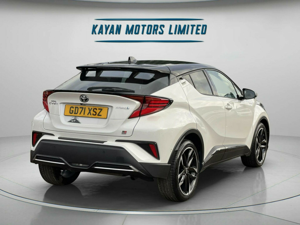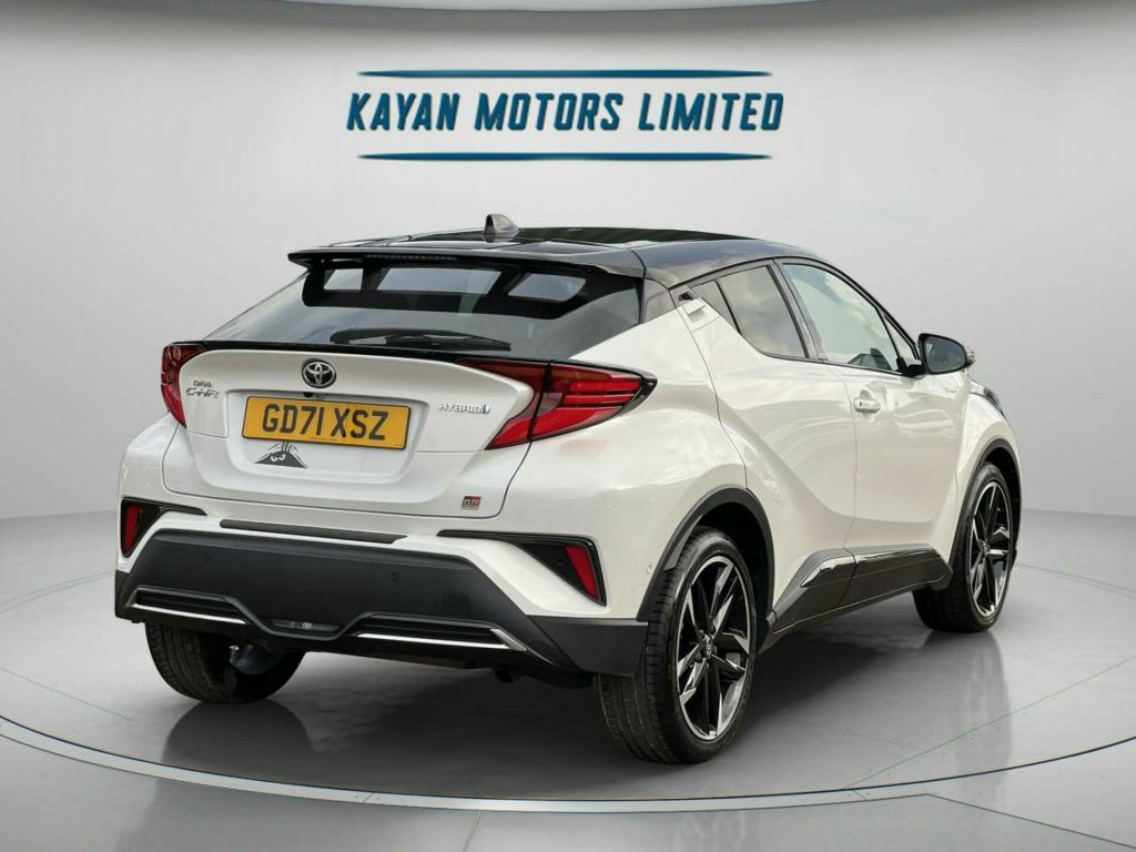 ------FINANCE OPTIONS AVAILABLE, PART/EXCHANGE WELCOME. NATIONWIDE WIDE DELIVERY. -----,HPI CLEAR, ULEZ COMPLIANCE, FULL-SERVICE HISTORY, 2 KEYS, JUST SERVICED & M.O.T AND 1 YEAR FREE WARRANTY FOR YOUR PEACE OF MIND.=================This 2021 Toyota C-HR VVT-h GR SPORT boasts a full dealership service history and an MOT valid until January 2027, offering excellent peace of mind. This stylish GR SPORT trim features a 1.8L Petrol Hybrid engine, meeting Euro 6 emissions standards. It comes with a clear vehicle history check and had its last service at 53,166 miles on 28 January 2026. Inside, you'll find Dual-Zone Automatic Air Conditioning, a Parking Pack with front and rear sensors, and a Reversing Camera for effortless manoeuvring. The Toyota Touch 2 Multimedia System with an 8in display supports Android Auto and Apple CarPlay, alongside Bluetooth connectivity, while Adaptive Cruise Control enhances your driving experience.The Toyota C-HR GR SPORT stands out with its impressive fuel economy, achieving 58 mpg, which is better than many other vehicles in its class. Its low CO2 emissions and low insurance group also contribute to lower running costs, making it a more economical choice. Furthermore, the vehicle is supplied with a 12-month warranty, ensuring continued confidence in your purchase. in alloy wheels - 5-double-spoke - black machined-face, 3-spoke perforated leather steering wheel, 4.2in colour tft screen for multi-information display, abs - anti lock braking system, am-fm radio, acoustic vehicle alert system - avas, adaptive cruise control, adaptive front light system - afs, adaptive led headlights, adjustable rear headrests, adjustable speed limiter - asl, adjustable speed limiter -asl- switch on steering wheel, anti-jam protection on power windows, audio and telephone switches on steering wheel, auto dimming rear view mirror, auto headlights, auto up and down function on power windows, automatic headlight cut-off, automatic headlight levelling, automatic high beam, black bi-tone roof, black centre console, black front door assist grips, black front spoiler, black lower dashboard, black lower driver dashboard, black upper dashboard, black and body-coloured rear bumper, blue ambient lighting on front cup holders, blue ambient lighting on front doors, bluetooth connectivity, body coloured door handles, body coloured door mirrors, body-coloured front bumper, boot door release with push button, boot light, child safety locks on rear doors, chrome interior door handles, cool silver deco line on upper dashboard, dark chrome lower front grille, digital audio broadcast - dab, driver and front passenger personal lights, driver and front passenger whiplash lessening - headrest, driver and passenger seatback pockets, dual-zone automatic air conditioning, electric power steering - eps, electric and heated door mirrors, electronic parking brake, floor mats, follow me home headlights, front 12v power outlet, front cup holders, front fog lights - led, front led light guide, front power windows, front and centre pillar assist grips, glass-breaking alarm sensors, glovebox with light, hac - hill start assist control, hard tonneau cover, heated driver and front passenger seat, hooks for luggage holding belt, humidifying nanoe air purifier, hybrid system indicator, isofix seat fixing - rear, illuminated entry system, immobiliser, intrusion alarm, led daytime running lights, led high-mounted stop light, led rear brake lights, led rear combination lights, lane departure alert with switches on steering wheel, leather gear shift, light on driver sun visor, light on passenger sun visor, manual height adjustable front passengers seat, manual height adjustable for drivers seat, manual tilt steering wheel, manually reclining driver seat, manually reclining front passengers seat, manually sliding drivers seat, manually sliding front passenger seat, microphone on front personal light, mirror on driver sun visor, mirror on passenger sun visor, motion sensor alarm, multimedia switches on steering wheel, noise reduction layer on front windows and windscreen, parking pack, passenger airbag on-off switch, pollen air filter, power adjustable lumbar support on driver seat, power door locks, power passenger window lock, pre-collision warning system with pedestrian detection, privacy glass, rear headrests x3, rear power windows, rear seats 60-40 split folding, rear sequential indicators, rear spoiler, rear tailgate, rear window defogger, rear window wiper, remote door locking, reversing camera, road sign assist, seat belt - pre-tensioners and force limiters, seat belt reminder - front and rear, seats - front sport, shark fin antenna, shopping bag hooks, simple intelligent park assist, slow opening lower glovebox, smart entry and push-button start, smartphone integration - apple car play and android auto, speakers x6, steering wheel - manual telescopic adjustment, supplemental restraint system - srs - airbags - 5 airbags, tpms - tyre pressure monitoring system, tech pack, toyota touch 2 multimedia system with 8in display, toyota touch 2 with go navigation system, tyre repair kit, usb connector, uv-filter on drivers and front passenger windows, uv-filter on rear windows, vsc - vehicle stability control, voice recognition, voice recognition switch on steering wheel, wi-fi connectivity