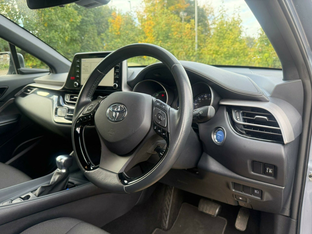 This 2022 Toyota C-HR VVT-h Icon is a superb example, having had only one owner since new. This stylish hatchback is powered by an efficient 1.8L petrol hybrid engine, meeting Euro 6 emission standards. It comes equipped with a range of desirable features, including Bluetooth connectivity for seamless phone integration, and dual zone automatic air conditioning to ensure comfort for all occupants. The Icon trim also benefits from automatic LED reflector headlights and adaptive cruise control, making journeys more relaxed and convenient.The Toyota C-HR Icon offers significant advantages for its owner. Its impressive fuel economy of 58 mpg means fewer trips to the petrol station, and its low CO2 emissions contribute to a more environmentally friendly drive. Furthermore, being in a low insurance group makes this vehicle more affordable to run. These highlights demonstrate how this particular C-HR provides excellent value and a superior ownership experience compared to many other vehicles in its class.. 17in Alloy Wheels - 5 Double Spoke - Silver, 3-Spoke Nappa Leather Steering Wheel, 4.2in Colour TFT Screen for Multi-Information Display, ABS - Anti Lock Braking System, AM-FM Radio, Acoustic Vehicle Alert System - AVAS, Adaptive Cruise Control, Adjustable Rear Headrests, Adjustable Speed Limiter - ASL, Adjustable Speed Limiter -ASL- Switch on Steering Wheel, Anti-Jam Protection on Power Windows, Audio and Telephone Switches on Steering Wheel, Auto Headlights, Auto Up and Down Function on Power Windows, Automatic Headlight Cut-Off, Automatic High Beam, Black Front Door Assist Grips, Black Lower Dashboard, Black Lower Driver Dashboard, Black Upper Dashboard, Black and Body-Coloured Rear Bumper, Bluetooth Connectivity, Body Coloured Door Handles, Body Coloured Door Mirrors, Body Coloured Front Spoiler, Body-Coloured Front Bumper, Boot Door Release with Push Button, Boot Light, Child Safety Locks on Rear Doors, Chrome Interior Door Handles, Digital Audio Broadcast - DAB, Driver and Front Passenger Personal Lights, Driver and Front Passenger Whiplash Lessening - Headrest, Dual-Zone Automatic Air Conditioning, Electric Power Steering - EPS, Electric and Heated Door Mirrors, Electronic Parking Brake, Floor Mats, Follow Me Home Headlights, Front 12V Power Outlet, Front Cup Holders, Front Fog Lights, Front LED Light Guide, Front Power Windows, Front and Centre Pillar Assist Grips, Glass-Breaking Alarm Sensors, Glovebox with Light, Grey Deco Line on Upper Dashboard, HAC - Hill Start Assist Control, Hard Tonneau Cover, Honeycomb Lower Front Grille, Hooks for Luggage Holding Belt, Humidifying Nanoe Air Purifier, Hybrid System Indicator, ISOFIX Seat Fixing - Rear, Illuminated Entry System, Immobiliser, Intrusion Alarm, LED Daytime Running Lights, LED High-Mounted Stop Light, LED Rear Brake Lights, LED Rear Combination Lights, LED Reflector Headlights, Lane Departure Alert with Switches on Steering Wheel, Leather Gear Shift, Light on Driver Sun Visor, Light on Passenger Sun Visor, Manual Headlight Levelling, Manual Height Adjustable for Drivers Seat, Manual Tilt Steering Wheel, Manually Adjustable Lumbar Support on Driver Seat, Manually Reclining Driver Seat, Manually Reclining Front Passengers Seat, Manually Retractable Door Mirrors, Manually Sliding Drivers Seat, Manually Sliding Front Passenger Seat, Matte Black Centre Console, Microphone on Front Personal Light, Mirror on Driver Sun Visor, Mirror on Passenger Sun Visor, Motion Sensor Alarm, Multimedia Switches on Steering Wheel, Noise Reduction Layer on Front Windows and Windscreen, Passenger Airbag On-Off Switch, Pollen Air Filter, Power Door Locks, Power Passenger Window Lock, Pre-Collision Warning System with Pedestrian Detection, Rear Headrests x3, Rear Power Windows, Rear Seats 60-40 Split Folding, Rear Spoiler, Rear Tailgate, Rear Window Defogger, Rear Window Wiper, Remote Door Locking, Reversing Camera, Road Sign Assist, Seat Belt - Pre-Tensioners and Force Limiters, Seat Belt Reminder - Front and Rear, Seats - Front Sport, Shark Fin Antenna, Shopping Bag Hooks, Slow Opening Lower Glovebox, Smartphone Integration - Apple Car Play and Android Auto, Speakers x6, Steering Wheel - Manual Telescopic Adjustment, Supplemental Restraint System - SRS - Airbags - 5 Airbags, TPMS - Tyre Pressure Monitoring System, Toyota Touch 2 Multimedia System with 8in Display, Tyre Repair Kit, USB Connector, UV-Filter on Drivers and Front Passenger Windows, UV-Filter on Rear Windows, VSC - Vehicle Stability Control, Voice Recognition, Voice Recognition Switch on Steering Wheel, Wi-Fi Connectivity.