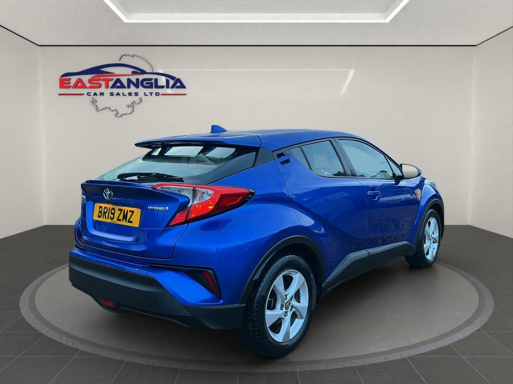 At East Anglia Car Sales we are proud to present this 2019 Toyota C-HR VVT-h Icon boasts exceptionally low mileage for its age, having covered just 46068 miles, and benefits from an MOT valid until September 2026. This Euro 6 compliant 1.8L petrol hybrid is presented with a clear vehicle history check and comes with a 3 month warranty for your peace of mind. Inside, youll find Dual-Zone Automatic Air Conditioning for personalised comfort, a Reversing Camera with parking assistance, and the comprehensive Toyota Safety Sense suite, which includes Adaptive Cruise Control. Auto headlights and Bluetooth connectivity further enhance the driving experience. The C-HR Icon stands out with its impressive fuel economy, achieving an excellent 55 mpg, and its low CO2 emissions, making it a more economical choice for your journeys. Its low insurance group also highlights its affordability. These factors combined indicate that this Toyota C-HR offers a superior ownership proposition compared to many other vehicles in its class. Call now to arrange a viewing or book a test drive! , Part exchange is welcome and finance options are available. Any of our vehicles can be secured by a refundable deposit. This is only subject to a refund if the buyer pays the deposit prior to viewing and on viewing is not happy with the sale.