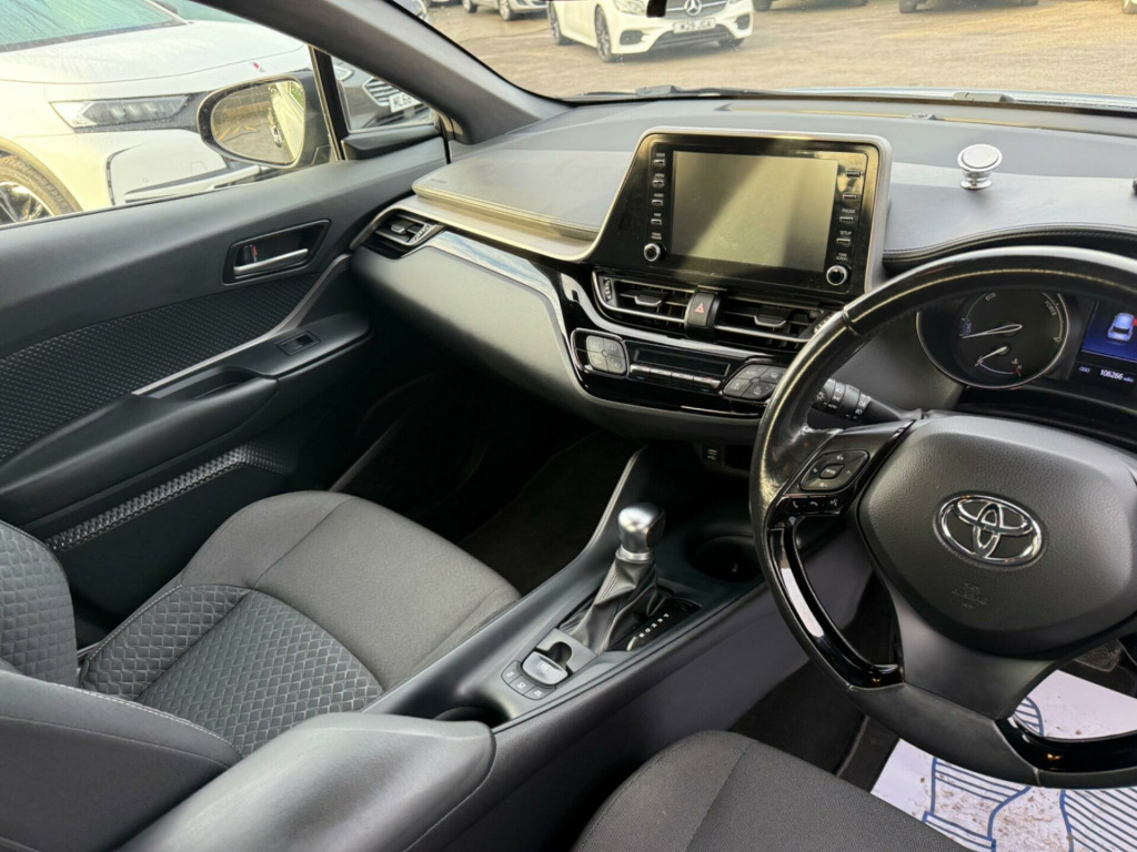This 2020 Toyota C-HR VVT-h Icon is a superb example, having been owned by just one careful keeper since new. It boasts a 1.8L petrol hybrid engine, meeting Euro 6 emissions standards, and comes in the well appointed Icon trim. Inside, you'll find the Toyota Touch 2 multimedia system, complete with a 7in display that seamlessly integrates with Android Auto and Apple CarPlay, alongside Bluetooth connectivity for your devices. For added convenience and safety, this C-HR features Adaptive Cruise Control, a reversing camera for easier parking, and dual-zone automatic air conditioning to ensure comfort for all occupants.This particular Toyota C-HR stands out with its impressive fuel economy, achieving a remarkable 59 miles per gallon, which indicates it is more economical than many other vehicles in its class. Furthermore, its low CO2 emissions and low insurance group rating highlight its cost effectiveness and make it an attractive choice for many drivers. These combined benefits suggest this C-HR offers a more affordable and efficient ownership experience compared to similar models. in alloy wheels - 5 double spoke - silver, 3-spoke nappa leather steering wheel with multimedia switches, 4.2in colour tft screen for multi-information display, abs - anti lock braking system, adaptive cruise control, adjustable rear headrests, adjustable speed limiter -asl- switch on steering wheel, audio and telephone switches on steering wheel, auto headlights, automatic headlight cut-off, automatic high beam, black front bumper, black front door assist grips, black lower dashboard, black lower driver dashboard, black upper dashboard, black upper front grille, black and body-coloured rear bumper, bluetooth connectivity, body-coloured door mirrors and handles, body-coloured front bumper, boot door release with push button, boot lamp, child safety locks on rear doors, chrome interior door handles, dab digital radio, driver and front passenger personal lights, driver and front passenger whiplash injury lessening - wil - seats, dual-zone automatic air conditioning, electric and heated door mirrors, electrically assisted power steering - eps, electronic parking brake, floor mats, follow me home headlights, front 12v power outlet, front cup holders, front fog lights, front led light guide, front passenger airbag on-off switch, front and centre pillar assist grips, front and rear power windows with auto up-down and anti-jam protection, front and rear spoilers, glass-breaking alarm sensors, glovebox with internal light, grey deco line on upper dashboard, hac - hill start assist control, hard tonneau cover, high mounted rear brake light - led, honeycomb lower front grille, hooks for luggage holding belt, humidifying nanoe air purifier, hybrid system indicator, isofix fixing points, illuminated entry system, immobiliser, intrusion alarm, led daytime running lights, led rear brake lights, led rear combination lights, leather gear shift, light and mirror on driver and front passenger sun visors, manual headlight levelling, manual tilting and telescopic steering wheel, manually height-adjustable sliding and reclining driver seat, manually height-adjustable sliding and reclining front passenger seat, matte black centre console, microphone on front personal light, motion sensor alarm, noise reduction layer on front windows and windscreen, pollen air filter, power door locks, power passenger window lock, power-adjustable door mirrors, rear seats 60-40 split folding, rear tailgate, rear window defogger, rear window wiper, remote boot door release in cabin, remote boot door release on key, remote door locking, reversing camera, road sign assist, seat belt - pre-tensioners and force limiters, seat belt reminder - front and rear, seats - front sport, shark fin antenna, shopping bag hooks, slow opening lower glovebox, speakers x6, supplemental restraint system - srs - airbags - 5 airbags, tpms - tyre pressure monitoring system, toyota safety sense, toyota touch 2 multimedia system with 7in display, usb and aux in connectors and 12v front outlet, uv-filter on drivers and front passenger windows, uv-filter on rear windows, vsc - vehicle stability control, tech pack