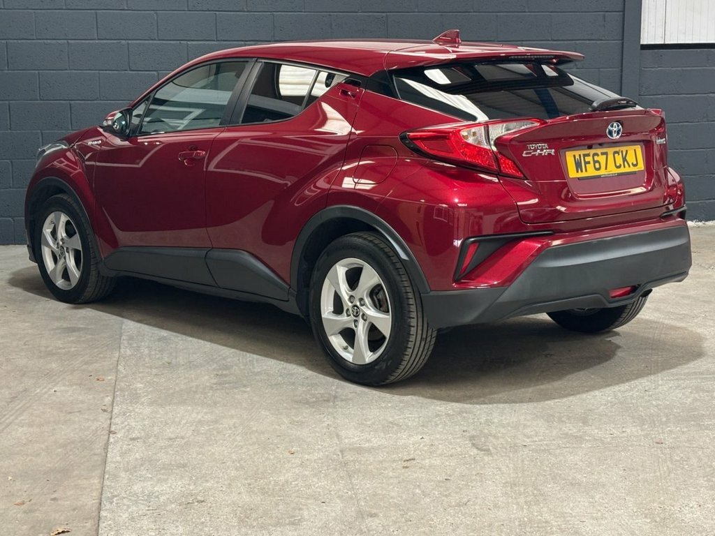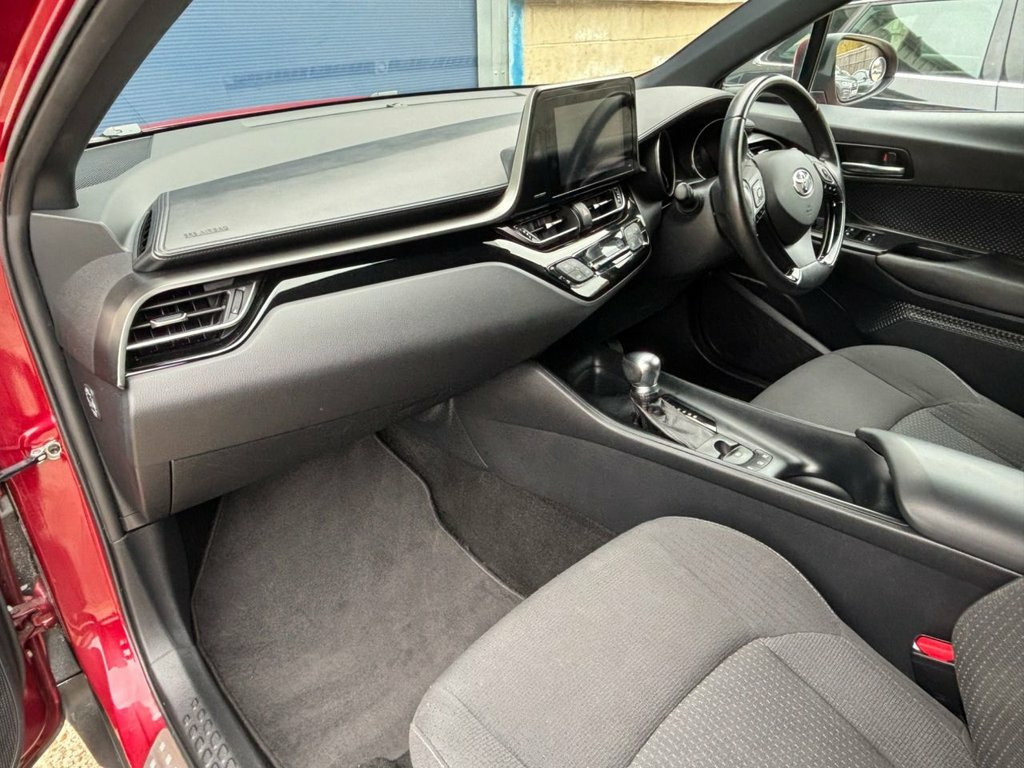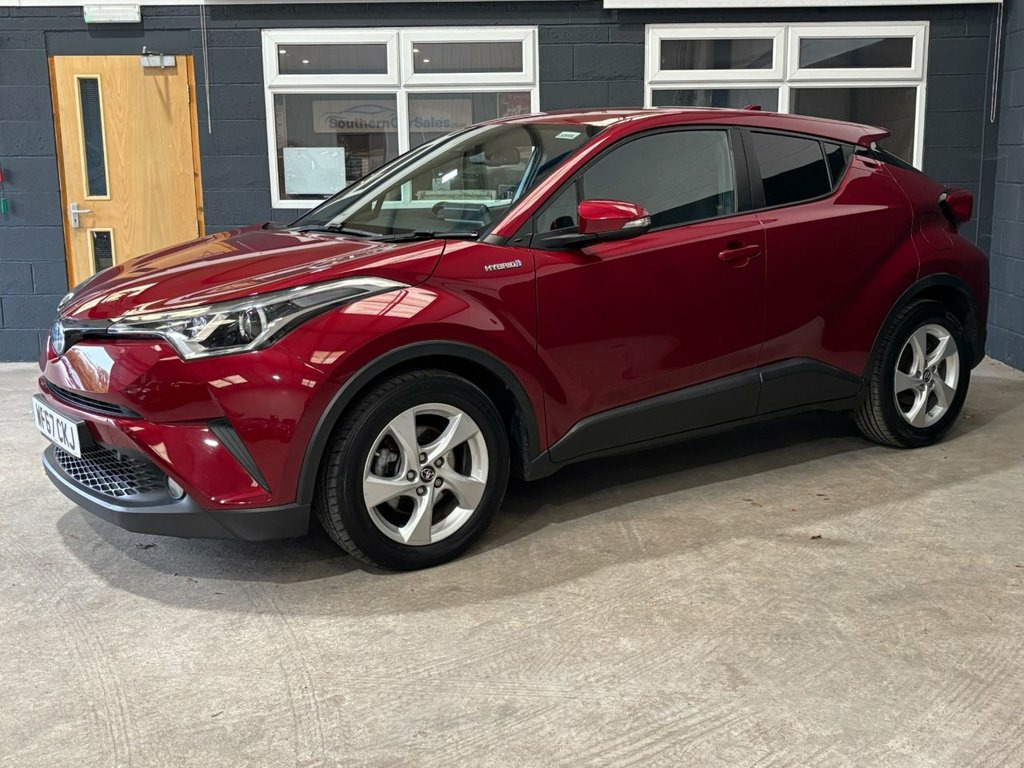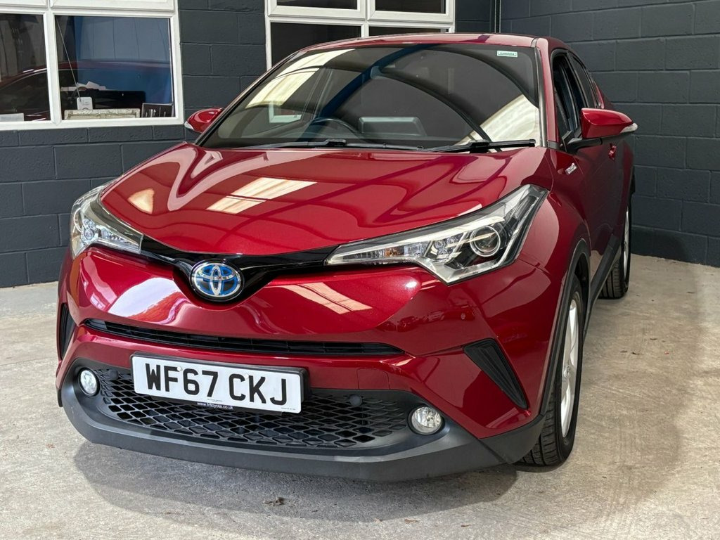 We purchased this Toyota CHR from the most recent owner. The car looks lovely, finished in metallic Ruby red and a contrasting grey interior. The car drives exactly as it should and has the famous Toyota Hybrid fuel economy, achieving a remarkable average of 74mpg (according to manufacturer figures) The service history consists of 5 Toyota main dealer services, We have arranged for the car to be serviced at our local Toyota dealership, meaning the car will come with a full one-year Toyota warranty! The mot runs to August 2026 and is free from advisory work. 4.2in Colour TFT Screen for Multi-Inform, Bluetooth Connectivity, DAB Digital Radio, Speakers x6, Toyota Touch 2 Multimedia System with 7i, USB and Aux In Connectors and 12V Front , 17in Alloy Wheels - 5 Spoke, Black Diffuser, Black and Body-Coloured Rear Bumper, Body Coloured Outside Door Handles, Body-Coloured Front Bumper, Front and Rear Power Windows with Auto U, Tyre Repair Kit, 3-Spoke Leather Steering Wheel with Mult, Audio and Telephone Switches on Steering, Black Front Door Insert, Black Roof Lining, Boot Door Release with Push Button, Boot Lamp, Driver and Front Passenger Personal Ligh, Dual-Zone Automatic Air Conditioning, Front Cup Holders, Glovebox with Internal Light, Gunmetal