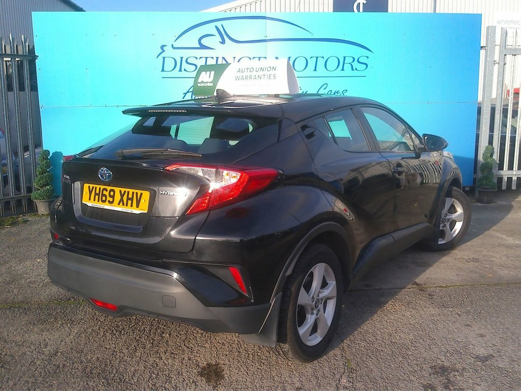 A GREAT EXAMPLE TYPICALLY ECONOMICAL TOYOTA C-HR PETROL-HYBRID AUTO ICON EDITION IN METALLIC BLACK OFFERED WITH 15 MONTHS NATIONWIDE WARRANTY FOR THIS WEEK ONLY FOR ADDED PEACE OF MIND!. WE ARE A FAMILY RUN BUSINESS WITH MOST OF OUR VEHICLES PURCHASED FROM REPUTABLE MAIN AGENTS AND WE PREPARE OUR VEHICLES TO THE HIGHEST OF STANDARDS WHICH IS WHY WE ARE CONFIDENT ENOUGH TO OFFER 15 MONTHS NATIONWIDE WARRANTY. ONLY 1 FORMER OWNER FROM NEW AND OFFERED WITH EXCELLENT SERVICE HISTORY (6 SERVICES LAST SERVICED AT 76K MILES), LONG MOT TO 12/26 WITH NO ADVISORIES, FULLY HPI CLEAR WITH FULLY VERIFIED MILEAGE CHECKS COMPLETED TOO. BOTH THE INTERIOR AND EXTERIOR CONDITION EXCELLENT THROUGHOUT WITH GREAT SPECIFICATION INCLUDING ALLOY WHEELS, CRUISE CONTROL, REVERSE CAMERA, BLUETOOTH, CLIMATE CONTROL, FRONT AND REAR ELECTRIC WINDOWS, PARKING SENSORS, AUTO LIGHTS, DAB RADIO, REMOTE CENTRAL LOCKING, HEATED ELECTRIC MIRRORS AND MUCH MORE ! 17in Alloy Wheels - 5 Double Spoke - Sil, 3-Spoke Nappa Leather Steering Wheel wit, 4.2in Colour TFT Screen for Multi-Inform, ABS - Anti Lock Braking System, Adaptive Cruise Control, Adjustable Rear Headrests, Adjustable Speed Limiter -ASL- Switch on, Audio and Telephone Switches on Steering, Auto Headlights, Automatic Headlight Cut-Off, Automatic High Beam, Black and Body-Coloured Rear Bumper, Black Front Bumper, Black Front Door Assist Grips, Black Lower Dashboard, Black Lower Driver Dashboard, Black Upper Dashboard, Black Upper Front Grille, Bluetooth Connectivity, Body-Coloured Door Mirrors and Handles, Body-Coloured Front Bumper, Boot Door Release with Push Button, Boot Lamp, Child Safe