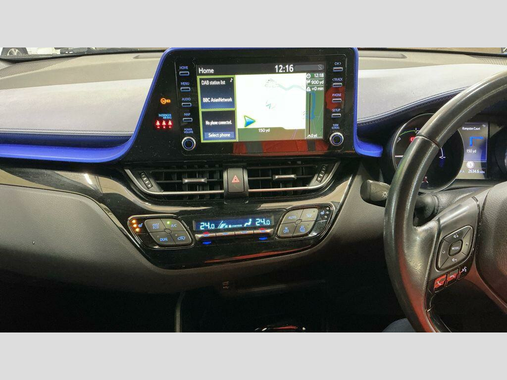 The Toyota C-HR VVT-h Dynamic is a 2021 model, boasting a 2.0L Petrol Hybrid Engine and a Euro 6 emission class. This vehicle has a clear vehicle history check, indicating a clean ownership record. With only one previous owner, you can be confident in the car's maintenance and servicing history. The Dynamic trim level comes equipped with a range of desirable features, including heated driver and front passenger seats, Bluetooth connectivity, and a comprehensive Tech Pack that includes Blind Spot Assistance, Keyless Entry, and Parking Assistance systems. Additionally, the vehicle features Auto Headlights, Dual-Zone Automatic Air Conditioning, and a range of other convenient amenities.This Toyota C-HR VVT-h Dynamic is a standout choice in its class, offering impressive fuel economy of up to 54 mpg. It's also a low insurance group, making it an attractive option for those looking to keep costs down. Furthermore, its low CO2 emissions make it an environmentally friendly choice. On the road, the C-HR accelerates from 0-62mph in a respectable 8.2 seconds, making it a great option for those who want a smooth and responsive driving experience. With its impressive combination of features, fuel efficiency, and low running costs, the Toyota C-HR VVT-h Dynamic is an excellent choice for anyone looking for a reliable and practical vehicle. in alloy wheels - 10 double spoke - dark grey machined-faced, 3-spoke nappa leather steering wheel with multimedia switches, 4.2in colour tft screen for multi-information display, abs - anti lock braking system, adaptive cruise control, adaptive front light system - afs, adaptive led headlights, adjustable rear headrests, adjustable speed limiter -asl- switch on steering wheel, audio and telephone switches on steering wheel, auto headlights, automatic headlight cut-off, automatic headlight levelling, automatic high beam, black bi-tone roof, black centre console, black front bumper, black front door assist grips, black lower dashboard, black lower driver dashboard, black upper front grille, black and body-coloured rear bumper, blue ambient lighting on front cup holders, blue ambient lighting on front doors, blue deco line on upper dashboard, blue upper dashboard, bluetooth connectivity, body-coloured door mirrors and handles, body-coloured front bumper, boot door release with push button, boot lamp, child safety locks on rear doors, chrome interior door handles, dab digital radio, driver and front passenger personal lights, driver and front passenger whiplash injury lessening - wil - seats, driver and passenger seatback pockets, dual-zone automatic air conditioning, electric and heated door mirrors, electrically assisted power steering - eps, electrochromatic rear-view mirror, electronic parking brake, floor mats, follow me home headlights, front 12v power outlet, front cup holders, front fog lights - led, front led light guide, front passenger airbag on-off switch, front and centre pillar assist grips, front and rear power windows with auto up-down and anti-jam protection, front and rear spoilers, glass-breaking alarm sensors, glovebox with internal light, hac - hill start assist control, hard tonneau cover, heated driver and front passenger seat, high mounted rear brake light - led, honeycomb lower front grille, hooks for luggage holding belt, humidifying nanoe air purifier, hybrid system indicator, isofix fixing points, illuminated entry system, immobiliser, intrusion alarm, led daytime running lights, led rear brake lights, led rear combination lights, leather gear shift, light and mirror on driver and front passenger sun visors, manual tilting and telescopic steering wheel, manually adjustable lumbar support on driver seat, manually height-adjustable sliding and reclining driver seat, manually height-adjustable sliding and reclining front passenger seat, microphone on front personal light, motion sensor alarm, noise reduction layer on front windows and windscreen, pollen air filter, power door locks, power passenger window lock, privacy glass, rain sensing wipers, rear seats 60-40 split folding, rear tailgate, rear window defogger, rear window wiper, remote boot door release in cabin, remote boot door release on key, remote door locking, reversing camera, road sign assist, seat belt - pre-tensioners and force limiters, seat belt reminder - front and rear, seats - front sport, shark fin antenna, shopping bag hooks, simple intelligent park assist, slow opening lower glovebox, smart entry and push-button start, speakers x6, supplemental restraint system - srs - airbags - 5 airbags, tpms - tyre pressure monitoring system, tech pack, toyota safety sense, toyota touch 2 multimedia system with 7in display, toyota touch 2 with go navigation, usb and aux in connectors and 12v front outlet, uv-filter on drivers and front passenger windows, uv-filter on rear windows, vsc - vehicle stability control, voice recognition, wi-fi connectivity, 18in alloy wheels - 5 double spoke - matt black, chrome pack, essential protection pack, fabric - black with light blue stitching, navigation system, heatyed seats front