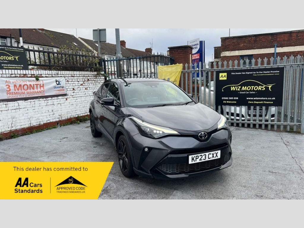 Dear customers let me introduce you to our beautiful Toyota C-HR 2.0 VVT-h GR SPORT SUV 5dr Petrol Hybrid CVT Euro 6 (s/s) (184 ps) . It has Low Mileage. Good Condition. HPI Clear. MOT Not Due as yet. Car will come with warranty and Free 12MONTHS roadside recovery. You are in safe Hands as we have signed our dealer promise with AA. Delivery on Your Doorstep, Credit & Debit Cards Accepted. Part exchange welcome. We Offer Zero Deposit Finance with Rates starting from 5.5% Flat Rate ( subject to status) and deal with different panel of Lenders to get you the best Possible Rates to suit your budget. We can arrange your finance Online, over the phone or in person. You can Also apply finance directly on Our website at www.wizmotors.co.uk or call us on 01582 383038 We offer Part Exchange Valuations and give you the best possible Price for you Part Exchange car. wiz motors ltd. Provides high standard of Customer care over 06 Years. Our Friendly and Experienced Staff are always here to Help you with your finance packages, settlements, part exchange valuations and all aspects of your purchase to help making your purchase a very pleasant experience and make your next purchase a memorable one. We prepare our vehicles to a high standard. All our cars are mechanically inspected by our experienced engineers and HPI checked. Full HPI report, vehicle comes with warranty, Free 12MONTHS roadside recovery with AA. 5days Drive away Insurance can be arranged (Charges Apply). All Dealer facilities available. We accept all major debit and credit cards. We deliver cars Nationwide to your door step. The vehicle specification displayed may not be exact for this vehicle. Please contact us to confirm the precise specifications. Always check Outstanding recalls. Please ask the salesman if the recall will be carried out before you make your purchase. Calll 01582 383038, for any further details, Our address is Wizmotors ltd.Front Parking Yard, Britania Estate,Leagrave Road. Luton, Beds. LU3 1RJ, Opposite 320 LEAGRAVE ROAD, Luton, LU31Rj Open 7days. Vehicle admin fee £99 Note. At Wiz Motors, we check every vehicle for any outstanding recalls. This can be found on https://www.gov.uk/check-mot-history Before purchasing a vehicle from our dealership, please check the car on the link above for your own piece of mind. Any recall is repaired free of charge by the manufacture. Give us a call if you find any outstanding recall so we can book this vehicle with manufacturer to sort it out 12V Power Socket, 19in Alloy Wheels, ABS, Adjustable Steering, Air Conditioning, Alarm, Alloy Wheels, Apple CarPlay, Automatic Headlight Levelling, Automatic Rearview Mirror Dimming, Bluetooth, Body Coloured Bumpers, Brake Assist, CD Multichanger, CD Player, Cassette Player, Catalytic Converter, Central Locking, Climate Control, Cruise Control, Cup Holders, DVD Player, Day/night Rearview Mirror, Daytime Running Lights, ESP, Electric Adjustable Seats, Electric Folding Mirrors, Electric Heated Seats, Electric Mirrors, Electric Windows, Engine Immobiliser, Folding Rear Seats, Front Airbags, Front Fog Lights, Heated Door Mirrors, Heated Rear Windshield, Heated Windscreen, ISOFix Anchor Point, Keyless Door Locks, LED Lights, Lane Assist, MOT, MP3, MP3 Player Connection, Parking Assistance, Parking Camera, Parking Sensors, Particule Filter, Power Assisted Steering, Privacy/Tinted Glass, Radio, Rain Sensor, Reading Lights, Rear Air Vents, Rear Airbags, Rear Spoiler, Safety Belts, Safety Belts Rear, Satellite Navigation, Side Impact Airbags, Spare Wheel, Speakers, Speed Limiter, Start Stop System, Steering Wheel Controls, Traction Control, Tuning, V5 Registration Document, Voice Control