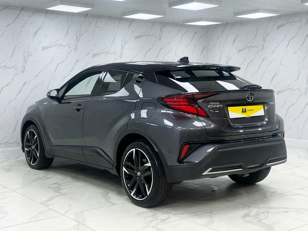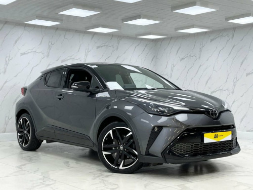 This 2022 Toyota C-HR VVT-h GR SPORT is a superb example, having had only one owner from new and boasting a full service history. This Euro 6 compliant model features a responsive 2.0L petrol hybrid engine, offering an impressive 53 mpg combined fuel economy. You can drive with confidence knowing it comes with 36 months warranty and a 12 month MOT provided on purchase, all supported by a clear vehicle history check. Inside, you'll find the 8in HD Toyota Smart Connect Multimedia System with wireless phone charging, Bluetooth connectivity, and a reversing camera with parking assistance. Keyless entry is provided by the Smart Entry and Push-Button Start system, while Adaptive Cruise Control enhances your driving experience. The GR SPORT trim level signifies a sporty and dynamic feel, further enhanced by its acceleration from 0-60mph in just 8.2 seconds. This Toyota C-HR also stands out with its low insurance group and low CO2 emissions, indicating it is more economical to own and run compared to many similar vehicles. These combined attributes make this C-HR a compelling choice for those seeking style, efficiency, and engaging performance. Decuma Grey, GR-Sport Alcantara - Leather - Black, 19in Alloy Wheels - 5-Double-Spoke - Bla, 3-Spoke Perforated Leather Steering Whee, 4.2in Colour TFT Screen for Multi-Inform, 8in HD Toyota Smart Connect Multimedia S, ABS - Anti Lock Braking System, AM-FM Radio, Acoustic Vehicle Alert System - AVAS, Adaptive Cruise Control, Adaptive Front Light System - AFS, Adaptive LED Headlights, Adjustable Rear Headrests, Adjustable Speed Limiter - ASL, Adjustable Speed Limiter -ASL- Switch on, Anti-Jam Protection on Power Windows, Audio and Telephone Switches on Steering, Auto Dimming Rear View Mirror, Auto Headlights, Auto Up and Down Function on Power Windo, Automatic Headlight Cut-Off, Automatic Hea