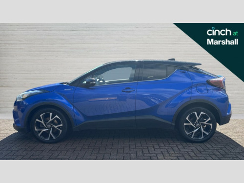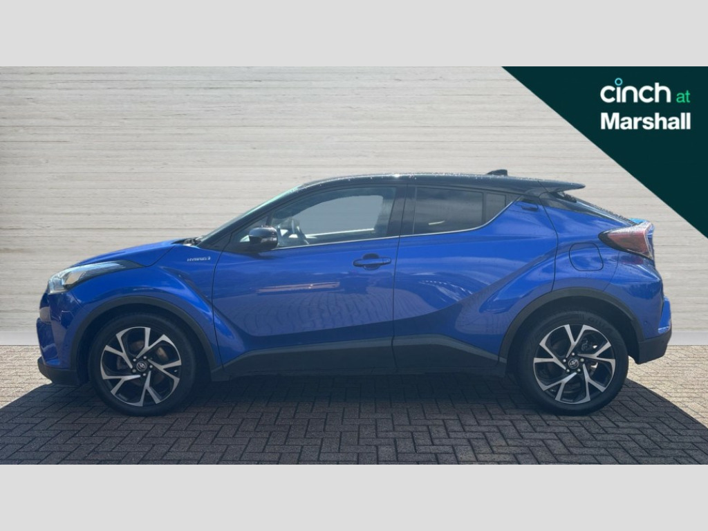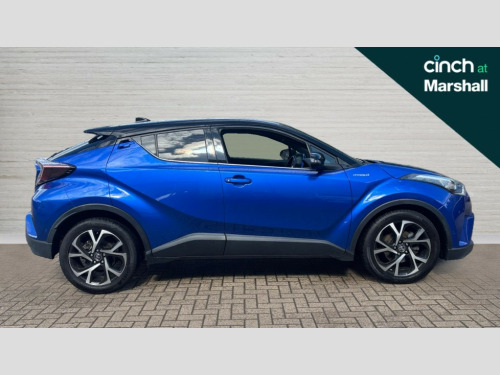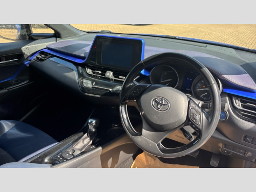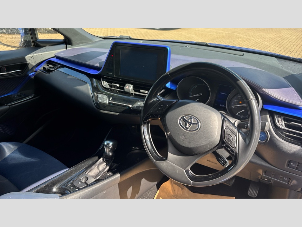 Toyota C-HR 1.8 Hybrid Dynamic 5dr CVT 4.2" Colour TFT driver information display, Adaptive cruise control, Bluetooth system, Collision prevention assist, Intelligent parking assist with front, rear and side parking sensors, Lane change assist and blind spot monitor, Lane departure warning system, Lights on warning, PAS, Push button starter, Rear cross traffic alert, Reversing camera, Touch 2 Go navigation system, Traffic sign recognition, Trip computer, Vehicle Stability Control (VSC), Auxiliary input socket, Steering wheel mounted controls, USB connection, Auto dimming rear view mirror, Auto high beam, Automatic headlight levelling, Bi-tone black roof, Body colour door handles, Body colour heated door mirrors, Body coloured bumpers, Electric door mirrors, Electric folding door mirrors, Follow me home headlights, Front and rear electric windows, Front fog lights, Heated rear windscreen, LED daytime running lights, LED Headlights, LED rear lights, Privacy glass, Rain sensitive windscreen wipers, Rear spoiler, Rear wiper, Shark fin roof aerial, 12V Accessory socket, Child seat anchorage points, Chrome interior door handles, Cloth upholstery, Driver/passenger sunvisors and illuminated vanity mirrors, Dual zone automatic air conditioning, Folding rear seats, Front and rear door pockets, Front centre armrest, Front cupholders x 2, Front head restraints, Heated front seats, Height adjustable drivers seat, Illuminated door sills, Illuminated entry system, Leather gear knob, Lumbar support, Nappa leather steering wheel, Rear headrests, Tilt/telescopic steering column, 3x3 point rear seatbelts, ABS+EBD+Brake assist, Airbag deactivation switch, Driver/Front Passenger airbags, Driver/front passenger side airbags, Drivers knee airbag, ESP + traction control, Front and rear curtain airbags, Hill start assist control (HAC), Rear child proof door locks, Road sign information display, Tyre pressure monitoring system, Alarm, Immobiliser, Remote central locking, Smart entry, Tyre repair kit