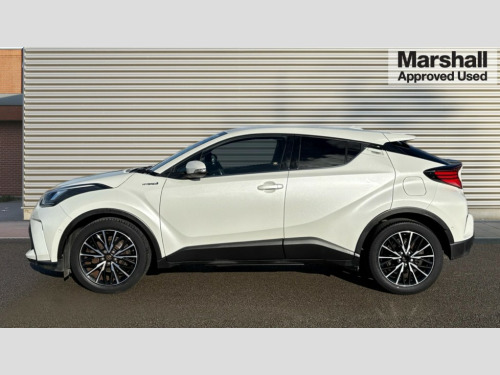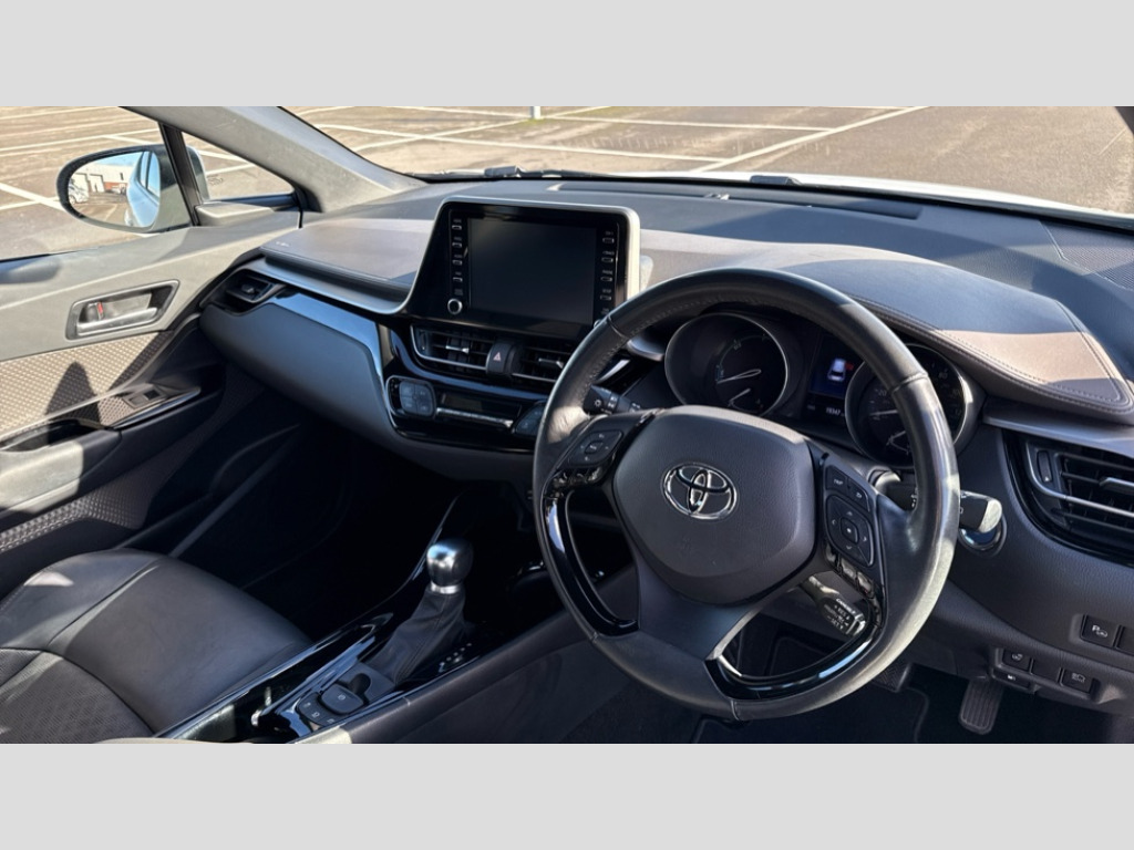 Toyota C-HR 1.8 Hybrid Excel 5dr CVT 4.2" coloured TFT screen for multi-information display, Adaptive cruise control, Bluetooth connectivity, Electric power steering, Hybrid system indicator, Lane departure alert with steering control, Remote boot door release in cabin, Remote boot door release in key, Reversing camera, Road sign assist - RSA, Simple Intelligent parking assist, Touch 2 Go navigation system, Trip computer, Voice recognition, Vehicle Stability Control (VSC), 6 speakers, Aux connectors + 12V front outlet, DAB Radio (Digital Audio Broadcasting), Toyota touch 2 multimedia system with 8" display, USB connector integrated with radio and CD player, Wi-fi connectivity, Adaptive front light system, Adaptive LED Headlights, Anti-jam protection on power windows, Auto high beam, Auto up and down function on all power windows, Automatic headlight levelling, Automatic headlights, Automatic headlights cut-off, Automatic wipers with heated folding mirrors, Black and body coloured rear bumper, Black front bumper, Black upper front grille, Body colour door handles, Body colour door mirrors, Boot door release with push button, Electric heated door mirrors, Follow me home headlights, Front and rear power windows, Front spoiler, Honeycomb lower front grille, LED daytime running lights, LED fog lights, LED front light guide, LED High mounted stop light, LED rear brake lights, LED rear combination lights, Noise reduction layer on front windows and windscreen, Power adjustable door mirrors, Privacy glass, Rear spoiler, Rear tailgate, Rear window defogger, Rear window wiper, Shark fin antenna, UV-filter on driver and passenger windows, UV-filter on rear windows, 12v power outlet - front, 3 rear headrests, 3 spoke leather steering wheel, 60/40 split folding rear seat, Adjustable rear headrests, Adjustable speed limiter switch on steering wheel, Assist grips front and centre pillar, Audio and telephone switches on steering wheel, Black front door assist grips, Blue ambient lighting on front cup holders, Blue ambient lighting on front doors, Boot light, Chrome interior door handles, Driver and front passenger personal light, Driver and front passenger Whiplash Injury Lessening seats, Driver and passenger seatback pockets, Dual zone automatic air conditioning, Floor mats, Front cupholders, Front head restraints, Front sports seats, Glovebox with internal light, Hard tonneau cover, Heated driver and front passenger seats, Heated steering wheel, Hooks for luggage holding net, Humidifying Nanoe air purifier, Illuminated entry system, Isofix attachments on outer rear seats, Leather gearshift, Light on driver sun visor, Light on passenger sun visor, Manual telescopic steering wheel, Manual tilt steering wheel, Manually height adjustable front passenger seat, Manually reclining front passenger seat, Manually sliding front passenger seat, Microphone on front personal light, Mirror on driver sun visor, Mirror on passenger sun visor, Multimedia switches on steering wheel, Pollen filter, Power adjustable lumbar support on driver seat, Power height adjustable driver seat, Power reclining driver seat, Power sliding driver seat, Power tilting cushion on driver seat, Shopping bag hooks, Slow opening on lower glovebox, Voice recognition switch on steering wheel, Leather pack - C-HR, Parking sensor pack - C-HR, Tech pack - C-HR, 16 Disk front wheel brake, 3x3 point rear seatbelts, ABS+EBD+Brake assist, Electronic parking brake, ESP + traction control, Front and rear seatbelt reminder, Front passenger airbag on/off switch, Hill start assist control (HAC), Pre collision system with pedestrian detection, Pre-tensioners and force limiters, Rear door child safety locks, SRS Airbags - Driver + Front passenger, front side, front and rear curtain and driver's knee airbags, Toyota safety sense, Tyre pressure monitoring system, Glass-breaking alarm sensors, Immobiliser, Intrusion alarm, Intrusion sensor, Motion sensor alarm, Power door locks, Power passenger window lock, Remote central locking, Remote door lock, Black lower dashboard, Black lower driver dashboard, Dark brown upper dashboard, Piano black console, Silver deco line on upper dashboard, Tyre repair kit