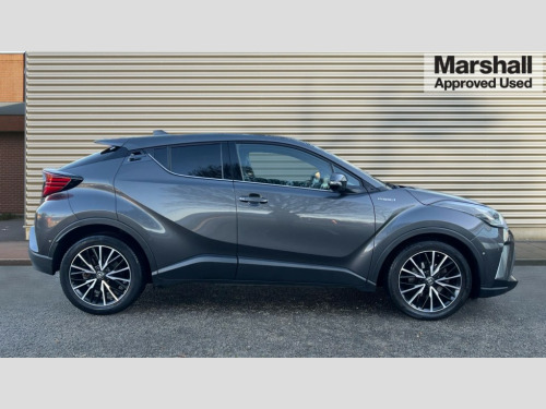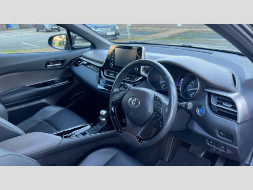 Toyota C-HR 1.8 Hybrid Excel 5dr CVT 4.2" coloured TFT screen for multi-information display, Adaptive cruise control, Bluetooth connectivity, Electric power steering, Hybrid system indicator, Lane departure alert with steering control, Remote boot door release in cabin, Remote boot door release in key, Reversing camera, Road sign assist - RSA, Simple Intelligent parking assist, Touch 2 Go navigation system, Trip computer, Voice recognition, Vehicle Stability Control (VSC), 6 speakers, Aux connectors + 12V front outlet, DAB Radio (Digital Audio Broadcasting), Toyota touch 2 multimedia system with 8" display, USB connector integrated with radio and CD player, Wi-fi connectivity, Adaptive front light system, Adaptive LED Headlights, Anti-jam protection on power windows, Auto high beam, Auto up and down function on all power windows, Automatic headlight levelling, Automatic headlights, Automatic headlights cut-off, Automatic wipers with heated folding mirrors, Black and body coloured rear bumper, Black front bumper, Black upper front grille, Body colour door handles, Body colour door mirrors, Boot door release with push button, Electric heated door mirrors, Follow me home headlights, Front and rear power windows, Front spoiler, Honeycomb lower front grille, LED daytime running lights, LED fog lights, LED front light guide, LED High mounted stop light, LED rear brake lights, LED rear combination lights, Noise reduction layer on front windows and windscreen, Power adjustable door mirrors, Privacy glass, Rear spoiler, Rear tailgate, Rear window defogger, Rear window wiper, Shark fin antenna, UV-filter on driver and passenger windows, UV-filter on rear windows, 12v power outlet - front, 3 rear headrests, 3 spoke leather steering wheel, 60/40 split folding rear seat, Adjustable rear headrests, Adjustable speed limiter switch on steering wheel, Assist grips front and centre pillar, Audio and telephone switches on steering wheel, Black front door assist grips, Blue ambient lighting on front cup holders, Blue ambient lighting on front doors, Boot light, Chrome interior door handles, Driver and front passenger personal light, Driver and front passenger Whiplash Injury Lessening seats, Driver and passenger seatback pockets, Dual zone automatic air conditioning, Floor mats, Front cupholders, Front head restraints, Front sports seats, Glovebox with internal light, Hard tonneau cover, Heated driver and front passenger seats, Heated steering wheel, Hooks for luggage holding net, Humidifying Nanoe air purifier, Illuminated entry system, Isofix attachments on outer rear seats, Leather gearshift, Light on driver sun visor, Light on passenger sun visor, Manual telescopic steering wheel, Manual tilt steering wheel, Manually height adjustable front passenger seat, Manually reclining front passenger seat, Manually sliding front passenger seat, Microphone on front personal light, Mirror on driver sun visor, Mirror on passenger sun visor, Multimedia switches on steering wheel, Pollen filter, Power adjustable lumbar support on driver seat, Power height adjustable driver seat, Power reclining driver seat, Power sliding driver seat, Power tilting cushion on driver seat, Shopping bag hooks, Slow opening on lower glovebox, Voice recognition switch on steering wheel, Leather pack - C-HR, Tech with parking sensor pack - C-HR, 16 Disk front wheel brake, 3x3 point rear seatbelts, ABS+EBD+Brake assist, Electronic parking brake, ESP + traction control, Front and rear seatbelt reminder, Front passenger airbag on/off switch, Hill start assist control (HAC), Pre collision system with pedestrian detection, Pre-tensioners and force limiters, Rear door child safety locks, SRS Airbags - Driver + Front passenger, front side, front and rear curtain and driver's knee airbags, Toyota safety sense, Tyre pressure monitoring system, Glass-breaking alarm sensors, Immobiliser, Intrusion alarm, Intrusion sensor, Motion sensor alarm, Power door locks, Power passenger window lock, Remote central locking, Remote door lock, Black lower dashboard, Black lower driver dashboard, Dark brown upper dashboard, Piano black console, Silver deco line on upper dashboard, Tyre repair kit