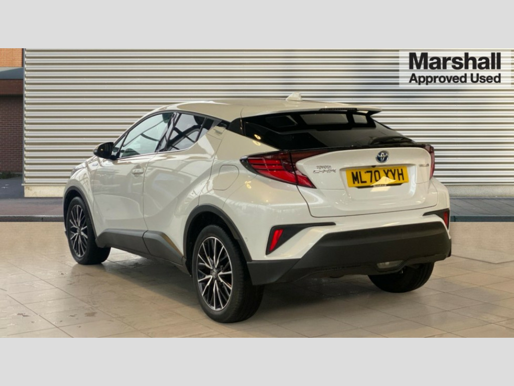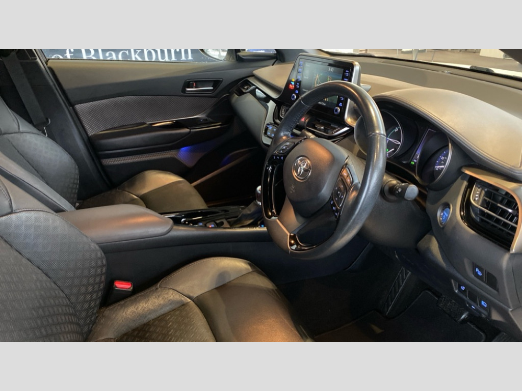 Toyota C-HR 1.8 Hybrid Excel 5dr CVT 4.2" coloured TFT screen for multi-information display, Adaptive cruise control, Bluetooth connectivity, Electric power steering, Hybrid system indicator, Lane departure alert with steering control, Remote boot door release in cabin, Remote boot door release in key, Reversing camera, Road sign assist - RSA, Simple Intelligent parking assist, Touch 2 Go navigation system, Trip computer, Voice recognition, Vehicle Stability Control (VSC), 6 speakers, AM/FM radio, DAB Radio (Digital Audio Broadcasting), Toyota touch 2 multimedia system with 8" display, USB connector, Wi-fi connectivity, Adaptive front light system, Adaptive LED Headlights, Anti-jam protection on power windows, Auto high beam, Auto up and down function on all power windows, Automatic headlight levelling, Automatic headlights, Automatic headlights cut-off, Black and body coloured rear bumper, Black upper front grille, Body colour door handles, Body colour door mirrors, Body colour front spoiler lip, Body coloured front bumper, Boot door release with push button, Electric heated door mirrors, Follow me home headlights, Front and rear power windows, Honeycomb lower front grille, LED daytime running lights, LED fog lights, LED front light guide, LED High mounted stop light, LED rear brake lights, LED rear combination lights, Noise reduction layer on front windows and windscreen, Power adjustable door mirrors, Privacy glass, Rear sequential indicators, Rear spoiler, Rear tailgate, Rear window defogger, Rear window wiper, Shark fin antenna, UV-filter on driver and passenger windows, UV-filter on rear windows, 12v power outlet - front, 3 rear headrests, 3 spoke leather steering wheel, 60/40 split folding rear seat, Adjustable rear headrests, Adjustable speed limiter switch on steering wheel, Assist grips front and centre pillar, Audio and telephone switches on steering wheel, Black front door assist grips, Blue ambient lighting on front cup holders, Blue ambient lighting on front doors, Boot light, Chrome interior door handles, Driver and front passenger personal light, Driver and front passenger Whiplash Injury Lessening seats, Driver and passenger seatback pockets, Dual zone automatic air conditioning, Front cupholders, Front head restraints, Front sports seats, Glovebox with internal light, Hard tonneau cover, Heated driver and front passenger seats, Heated steering wheel, Hooks for luggage holding net, Humidifying Nanoe air purifier, Illuminated entry system, Isofix attachments on outer rear seats, Leather gearshift, Light on driver sun visor, Light on passenger sun visor, Manual telescopic steering wheel, Manual tilt steering wheel, Manually height adjustable front passenger seat, Manually reclining front passenger seat, Manually sliding front passenger seat, Microphone on front personal light, Mirror on driver sun visor, Mirror on passenger sun visor, Multimedia switches on steering wheel, Pollen filter, Power adjustable lumbar support on driver seat, Power tilting cushion on driver seat, Shopping bag hooks, Slow opening on lower glovebox, Voice recognition switch on steering wheel, Leather pack - C-HR, Tech with parking sensor pack - C-HR, 16 Disk front wheel brake, 3x3 point rear seatbelts, ABS+EBD+Brake assist, Electronic parking brake, Front and rear seatbelt reminder, Front passenger airbag on/off switch, Hill start assist control (HAC), Pre collision system with pedestrian detection, Pre-tensioners and force limiters, Rear door child safety locks, SRS Airbags - Driver + Front passenger, front side, front and rear curtain and driver's knee airbags, Toyota safety sense, Tyre pressure monitoring system, Acoustic vehicle alert system (AVAS), Glass-breaking alarm sensors, Immobiliser, Intrusion alarm, Intrusion sensor, Motion sensor alarm, Power door locks, Power passenger window lock, Remote central locking, Black lower dashboard, Dark brown upper dashboard, Piano black console, Silver deco line on upper dashboard, Tyre repair kit