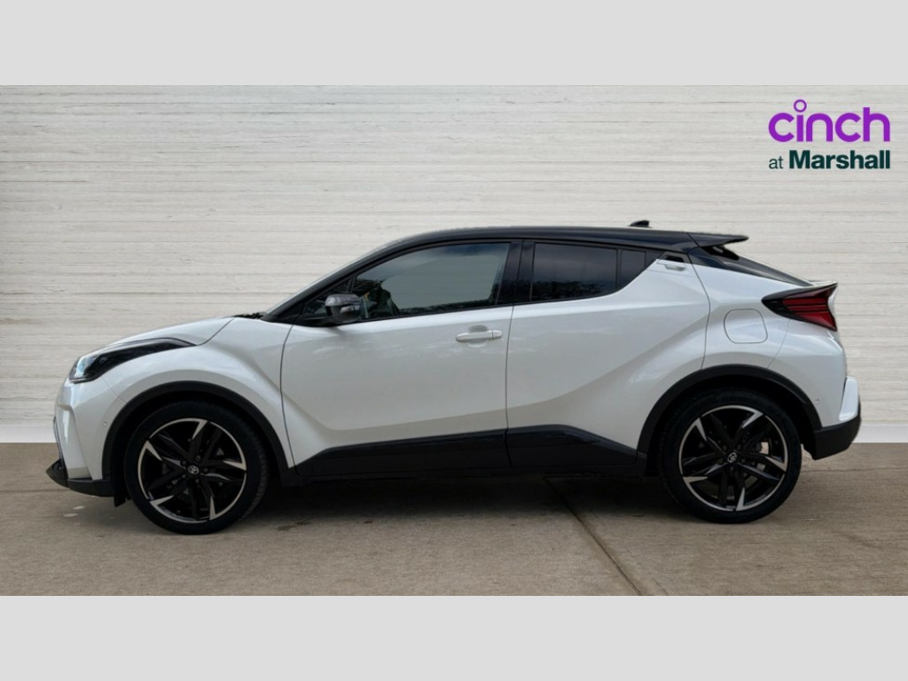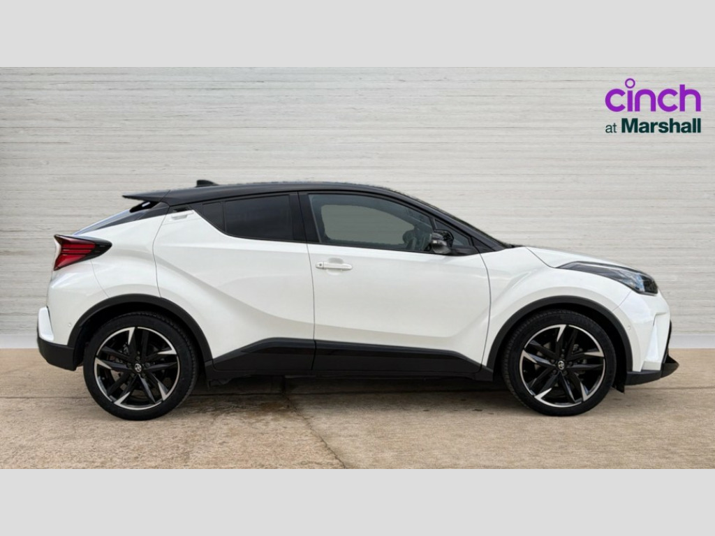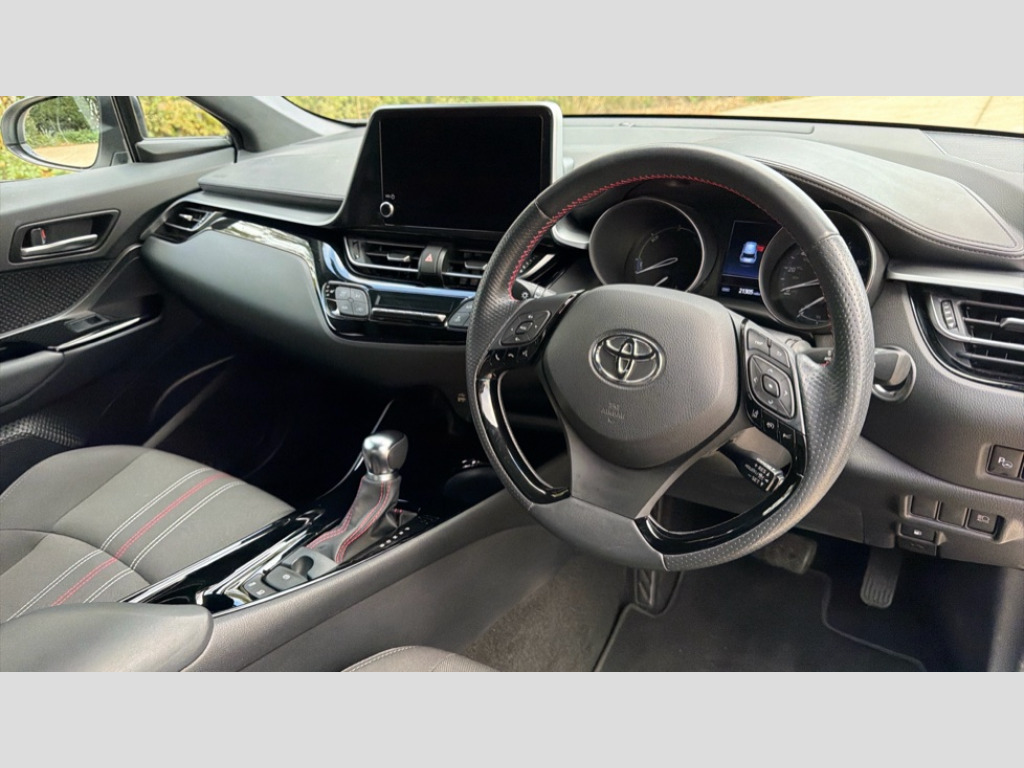 Toyota C-HR 1.8 Hybrid GR Sport 5dr CVT 4.2" coloured TFT screen for multi-information display, Adaptive cruise control, Apple car play and Android auto, Bluetooth connectivity, E-call, Electric power steering, Hybrid system indicator, Lane departure alert with steering control, Lane trace assist, Push button tailgate release, Remote boot door release in cabin, Remote boot door release in key, Reversing camera, Road sign assist - RSA, Simple Intelligent parking assist, Smart voice assist, Touch 2 Go navigation system, Trip computer, Voice recognition, Wireless smartphone integration, Vehicle Stability Control (VSC), 6 speakers, AM/FM radio, DAB Radio (Digital Audio Broadcasting), Toyota touch 2 multimedia system with 8" display, USB connector, Wi-fi connectivity, Adaptive front light system, Adaptive LED Headlights, Anti-jam protection on power windows, Auto high beam, Auto up and down function on all power windows, Automatic headlight levelling, Automatic headlights, Automatic headlights cut-off, Black and body coloured rear bumper, Black upper front grille, Body colour door handles, Body colour door mirrors, Body coloured front bumper, Boot door release with push button, Chrome front lower bumper, Electric heated door mirrors, Follow me home headlights, Front and rear power windows, Front spoiler lip in black, Headlight cut off reminder, Honeycomb lower front grille, LED daytime running lights, LED fog lights, LED front light guide, LED High mounted stop light, LED rear brake lights, LED rear combination lights, Noise reduction layer on front windows and windscreen, Power adjustable door mirrors, Privacy glass, Rain sensor, Rear sequential indicators, Rear side wing doors, Rear spoiler, Rear tailgate, Rear window defogger, Rear window wiper, Shark fin antenna, UV-filter on driver and passenger windows, UV-filter on rear windows, Variable front intermittent wipers, 12v power outlet - front, 3 rear headrests, 3 seat bench in 2nd row, 3 spoke perforated leather steering wheel, 60/40 split folding 2nd row rear seats, Adjustable rear headrests, Adjustable speed limiter switch on steering wheel, Assist grips front and centre pillar, Audio and telephone switches on steering wheel, Black front door assist grips, Blue ambient lighting on front cup holders, Blue ambient lighting on front doors, Boot light, Chrome interior door handles, Cloth upholstery, Driver and front passenger personal light, Driver and front passenger Whiplash Injury Lessening seats, Driver and passenger seatback pockets, Dual zone automatic air conditioning, Floor mats, Front cupholders, Front head restraints, Front sports seats, Glovebox with internal light, Hard tonneau cover, Heated driver and front passenger seats, Hooks for luggage holding net, Humidifying Nanoe air purifier, Illuminated entry system, Isofix attachments on outer rear seats, Leather gearshift, Light on driver sun visor, Light on passenger sun visor, Manual telescopic steering wheel, Manual tilt steering wheel, Manually height adjustable driver seat, Manually height adjustable front passenger seat, Manually reclining driver seat, Manually reclining front passenger seat, Manually sliding driver seat, Manually sliding front passenger seat, Microphone on front personal light, Mirror on driver sun visor, Mirror on passenger sun visor, Multimedia switches on steering wheel, Pollen filter, Power adjustable lumbar support on driver seat, Shopping bag hooks, Single front passenger seat, Slow opening on lower glovebox, Voice recognition switch on steering wheel, Tech with parking sensor pack - C-HR, 16 Disk front wheel brake, 3x3 point rear seatbelts, ABS+EBD+Brake assist, Electronic parking brake, Front and rear seatbelt reminder, Front passenger airbag on/off switch, Hill start assist control (HAC), Pre collision system with pedestrian detection, Pre-tensioners and force limiters, Rear door child safety locks, SRS Airbags - Driver + Front passenger, front side, front and rear curtain and driver's knee airbags, Toyota safety sense, Tyre pressure monitoring system, Tyre pressure warning system, Acoustic vehicle alert system (AVAS), Glass-breaking alarm sensors, Immobiliser, Intrusion alarm, Intrusion sensor, Motion sensor alarm, Power door locks, Power passenger window lock, Remote central locking, Black lower dashboard, Black upper dashboard, Piano black console, Silver deco line on upper dashboard, 19" Black machined alloy wheels, Tyre repair kit