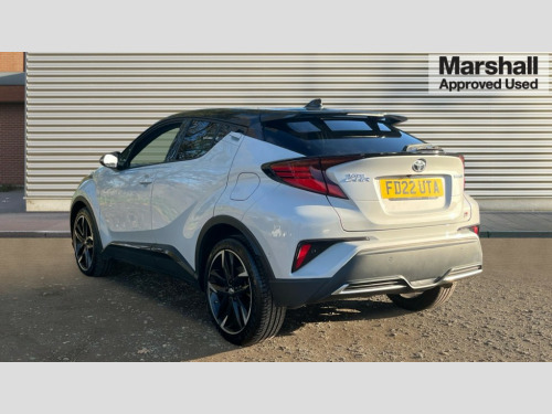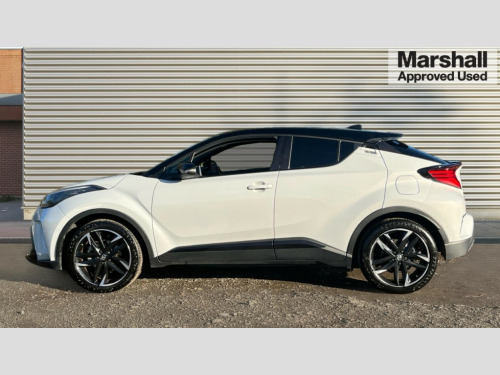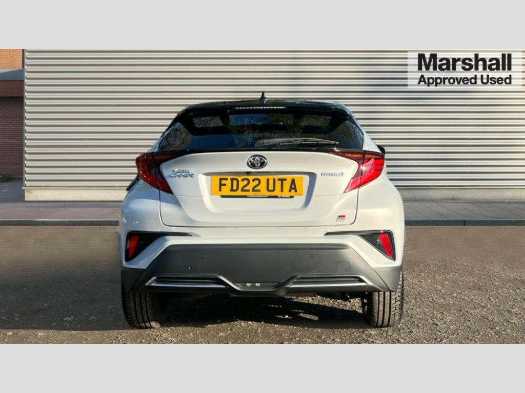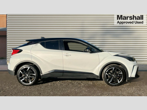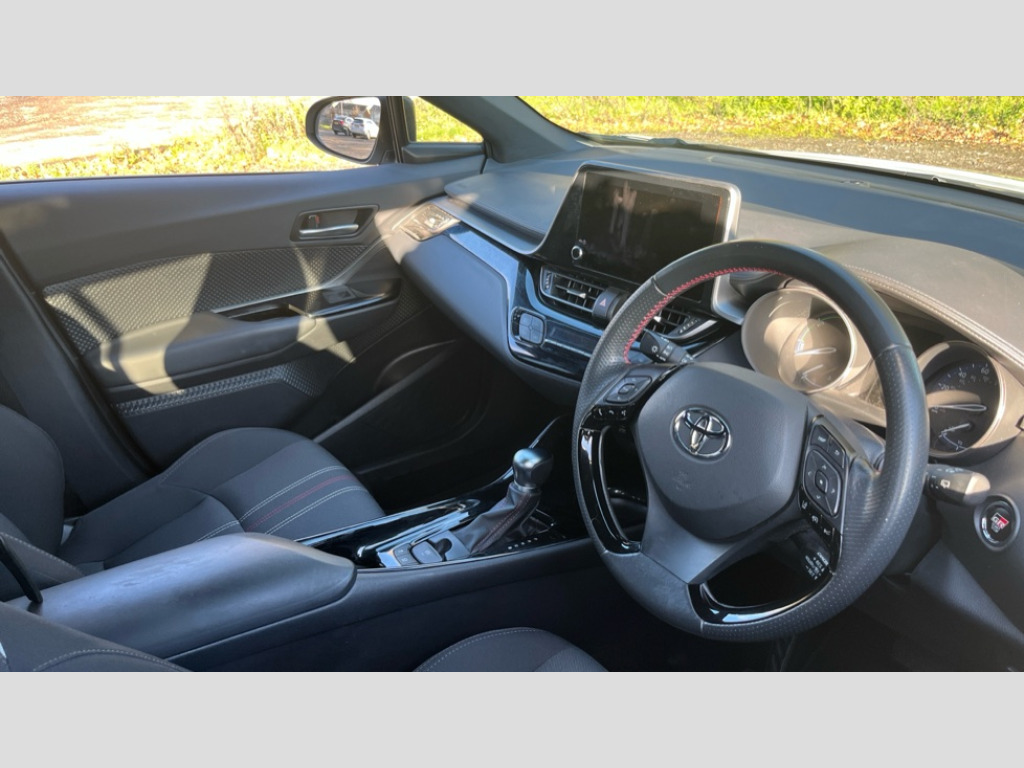 Toyota C-HR 1.8 Hybrid GR Sport 5dr CVT 4.2" coloured TFT screen for multi-information display, Adaptive cruise control, Bluetooth connectivity, E-call, Electric power steering, Hybrid system indicator, Lane departure alert with steering control, Remote boot door release in cabin, Remote boot door release in key, Reversing camera, Road sign assist - RSA, Simple Intelligent parking assist, Touch 2 Go navigation system, Trip computer, Voice recognition, Vehicle Stability Control (VSC), 6 speakers, AM/FM radio, DAB Radio (Digital Audio Broadcasting), Toyota touch 2 multimedia system with 8" display, USB connector, Wi-fi connectivity, Adaptive front light system, Adaptive LED Headlights, Anti-jam protection on power windows, Auto high beam, Auto up and down function on all power windows, Automatic headlight levelling, Automatic headlights, Automatic headlights cut-off, Black and body coloured rear bumper, Black upper front grille, Body colour door handles, Body colour door mirrors, Body coloured front bumper, Boot door release with push button, Chrome front lower bumper, Electric heated door mirrors, Follow me home headlights, Front and rear power windows, Front spoiler lip in black, Honeycomb lower front grille, LED daytime running lights, LED fog lights, LED front light guide, LED High mounted stop light, LED rear brake lights, LED rear combination lights, Noise reduction layer on front windows and windscreen, Power adjustable door mirrors, Privacy glass, Rain sensor, Rear sequential indicators, Rear side wing doors, Rear spoiler, Rear tailgate, Rear window defogger, Rear window wiper, Shark fin antenna, UV-filter on driver and passenger windows, UV-filter on rear windows, 12v power outlet - front, 3 rear headrests, 3 seat bench in 2nd row, 3 spoke perforated leather steering wheel, 60/40 split folding rear seat, Adjustable rear headrests, Adjustable speed limiter switch on steering wheel, Assist grips front and centre pillar, Audio and telephone switches on steering wheel, Black front door assist grips, Blue ambient lighting on front cup holders, Blue ambient lighting on front doors, Boot light, Chrome interior door handles, Driver and front passenger personal light, Driver and front passenger Whiplash Injury Lessening seats, Driver and passenger seatback pockets, Dual zone automatic air conditioning, Fabric upholstery, Floor mats, Front cupholders, Front head restraints, Front sports seats, Glovebox with internal light, Hard tonneau cover, Heated driver and front passenger seats, Hooks for luggage holding net, Humidifying Nanoe air purifier, Illuminated entry system, Isofix attachments on outer rear seats, Leather gearshift, Light on driver sun visor, Light on passenger sun visor, Manual telescopic steering wheel, Manual tilt steering wheel, Manually height adjustable driver seat, Manually height adjustable front passenger seat, Manually reclining driver seat, Manually reclining front passenger seat, Manually sliding driver seat, Manually sliding front passenger seat, Microphone on front personal light, Mirror on driver sun visor, Mirror on passenger sun visor, Multimedia switches on steering wheel, Pollen filter, Power adjustable lumbar support on driver seat, Shopping bag hooks, Single front passenger seat, Slow opening on lower glovebox, Voice recognition switch on steering wheel, Tech with parking sensor pack - C-HR, 16 Disk front wheel brake, 3x3 point rear seatbelts, ABS+EBD+Brake assist, Electronic parking brake, Front and rear seatbelt reminder, Front passenger airbag on/off switch, Hill start assist control (HAC), Pre collision system with pedestrian detection, Pre-tensioners and force limiters, Rear door child safety locks, SRS Airbags - Driver + Front passenger, front side, front and rear curtain and driver's knee airbags, Toyota safety sense, Tyre pressure monitoring system, Acoustic vehicle alert system (AVAS), Glass-breaking alarm sensors, Immobiliser, Intrusion alarm, Intrusion sensor, Motion sensor alarm, Power door locks, Power passenger window lock, Remote central locking, Black lower dashboard, Black upper dashboard, Piano black console, Silver deco line on upper dashboard, 19" Black machined alloy wheels, Tyre repair kit