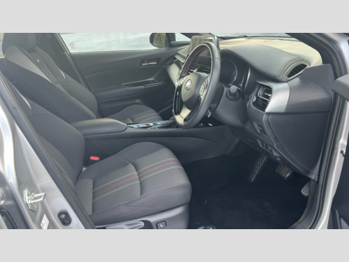 Toyota C-HR 2.0 Hybrid GR Sport 5dr CVT 4.2" coloured TFT screen for multi-information display, Adaptive cruise control, Bluetooth connectivity, E-call, Electric power steering, Hybrid system indicator, Lane departure alert with steering control, Remote boot door release in cabin, Remote boot door release in key, Reversing camera, Road sign assist - RSA, Simple Intelligent parking assist, Touch 2 Go navigation system, Trip computer, Voice recognition, Vehicle Stability Control (VSC), 6 speakers, AM/FM radio, DAB Radio (Digital Audio Broadcasting), Toyota touch 2 multimedia system with 8" display, USB connector, Wi-fi connectivity, Adaptive front light system, Adaptive LED Headlights, Anti-jam protection on power windows, Auto high beam, Auto up and down function on all power windows, Automatic headlight levelling, Automatic headlights, Automatic headlights cut-off, Black and body coloured rear bumper, Black upper front grille, Body colour door handles, Body colour door mirrors, Body coloured front bumper, Boot door release with push button, Chrome front lower bumper, Electric heated door mirrors, Follow me home headlights, Front and rear power windows, Front spoiler lip in black, Honeycomb lower front grille, LED daytime running lights, LED fog lights, LED front light guide, LED High mounted stop light, LED rear brake lights, LED rear combination lights, Noise reduction layer on front windows and windscreen, Power adjustable door mirrors, Privacy glass, Rain sensor, Rear sequential indicators, Rear side wing doors, Rear spoiler, Rear tailgate, Rear window defogger, Rear window wiper, Shark fin antenna, UV-filter on driver and passenger windows, UV-filter on rear windows, 12v power outlet - front, 3 rear headrests, 3 seat bench in 2nd row, 3 spoke perforated leather steering wheel, 60/40 split folding rear seat, Adjustable rear headrests, Adjustable speed limiter switch on steering wheel, Assist grips front and centre pillar, Audio and telephone switches on steering wheel, Black front door assist grips, Blue ambient lighting on front cup holders, Blue ambient lighting on front doors, Boot light, Chrome interior door handles, Driver and front passenger personal light, Driver and front passenger Whiplash Injury Lessening seats, Driver and passenger seatback pockets, Dual zone automatic air conditioning, Fabric upholstery, Floor mats, Front cupholders, Front head restraints, Front sports seats, Glovebox with internal light, Hard tonneau cover, Heated driver and front passenger seats, Hooks for luggage holding net, Humidifying Nanoe air purifier, Illuminated entry system, Isofix attachments on outer rear seats, Leather gearshift, Light on driver sun visor, Light on passenger sun visor, Manual telescopic steering wheel, Manual tilt steering wheel, Manually height adjustable driver seat, Manually height adjustable front passenger seat, Manually reclining driver seat, Manually reclining front passenger seat, Manually sliding driver seat, Manually sliding front passenger seat, Microphone on front personal light, Mirror on driver sun visor, Mirror on passenger sun visor, Multimedia switches on steering wheel, Pollen filter, Power adjustable lumbar support on driver seat, Shopping bag hooks, Single front passenger seat, Slow opening on lower glovebox, Voice recognition switch on steering wheel, Tech with parking sensor pack - C-HR, 16 Disk front wheel brake, 3x3 point rear seatbelts, ABS+EBD+Brake assist, Electronic parking brake, Front and rear seatbelt reminder, Front passenger airbag on/off switch, Hill start assist control (HAC), Pre collision system with pedestrian detection, Pre-tensioners and force limiters, Rear door child safety locks, SRS Airbags - Driver + Front passenger, front side, front and rear curtain and driver's knee airbags, Toyota safety sense, Tyre pressure monitoring system, Acoustic vehicle alert system (AVAS), Glass-breaking alarm sensors, Immobiliser, Intrusion alarm, Intrusion sensor, Motion sensor alarm, Power passenger window lock, Remote central locking, Black lower dashboard, Black upper dashboard, Piano black console, Silver deco line on upper dashboard, 19" Black machined alloy wheels, Tyre repair kit