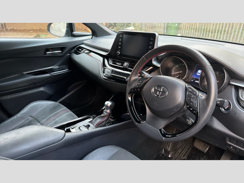 Toyota C-HR 2.0 Hybrid GR Sport 5dr CVT 4.2" coloured TFT screen for multi-information display, Adaptive cruise control, Bluetooth connectivity, Electric power steering, Hybrid system indicator, Lane departure alert with steering control, Remote boot door release in cabin, Remote boot door release in key, Reversing camera, Road sign assist - RSA, Simple Intelligent parking assist, Touch 2 Go navigation system, Trip computer, Voice recognition, Vehicle Stability Control (VSC), 6 speakers, AM/FM radio, DAB Radio (Digital Audio Broadcasting), Toyota touch 2 multimedia system with 8" display, USB connector, Wi-fi connectivity, Adaptive front light system, Adaptive LED Headlights, Anti-jam protection on power windows, Auto high beam, Auto up and down function on all power windows, Automatic headlight levelling, Automatic headlights, Automatic headlights cut-off, Black and body coloured rear bumper, Black upper front grille, Body colour door handles, Body colour door mirrors, Body coloured front bumper, Boot door release with push button, Chrome front lower bumper, Electric heated door mirrors, Follow me home headlights, Front and rear power windows, Front spoiler lip in black, Honeycomb lower front grille, LED daytime running lights, LED fog lights, LED front light guide, LED High mounted stop light, LED rear brake lights, LED rear combination lights, Noise reduction layer on front windows and windscreen, Power adjustable door mirrors, Privacy glass, Rear sequential indicators, Rear spoiler, Rear tailgate, Rear window defogger, Rear window wiper, Shark fin antenna, UV-filter on driver and passenger windows, UV-filter on rear windows, 12v power outlet - front, 3 rear headrests, 3 spoke perforated leather steering wheel, 60/40 split folding rear seat, Adjustable rear headrests, Adjustable speed limiter switch on steering wheel, Assist grips front and centre pillar, Audio and telephone switches on steering wheel, Black front door assist grips, Blue ambient lighting on front cup holders, Blue ambient lighting on front doors, Boot light, Chrome interior door handles, Driver and front passenger personal light, Driver and front passenger Whiplash Injury Lessening seats, Driver and passenger seatback pockets, Dual zone automatic air conditioning, Electric front seats, Floor mats, Front cupholders, Front head restraints, Front sports seats, Glovebox with internal light, Hard tonneau cover, Heated driver and front passenger seats, Hooks for luggage holding net, Humidifying Nanoe air purifier, Illuminated entry system, Isofix attachments on outer rear seats, Leather gearshift, Leather/Alcantara upholstery, Light on driver sun visor, Light on passenger sun visor, Manual telescopic steering wheel, Manual tilt steering wheel, Microphone on front personal light, Mirror on driver sun visor, Mirror on passenger sun visor, Multimedia switches on steering wheel, Pollen filter, Power adjustable lumbar support on driver seat, Shopping bag hooks, Slow opening on lower glovebox, Voice recognition switch on steering wheel, Tech with parking sensor pack - C-HR, 16 Disk front wheel brake, 3x3 point rear seatbelts, ABS+EBD+Brake assist, Electronic parking brake, Front and rear seatbelt reminder, Front passenger airbag on/off switch, Hill start assist control (HAC), Pre collision system with pedestrian detection, Pre-tensioners and force limiters, Rear door child safety locks, SRS Airbags - Driver + Front passenger, front side, front and rear curtain and driver's knee airbags, Toyota safety sense, Tyre pressure monitoring system, Acoustic vehicle alert system (AVAS), Glass-breaking alarm sensors, Immobiliser, Intrusion alarm, Intrusion sensor, Motion sensor alarm, Power passenger window lock, Remote central locking, Black lower dashboard, Black upper dashboard, Piano black console, Silver deco line on upper dashboard, 19" Black machined alloy wheels, Tyre repair kit
