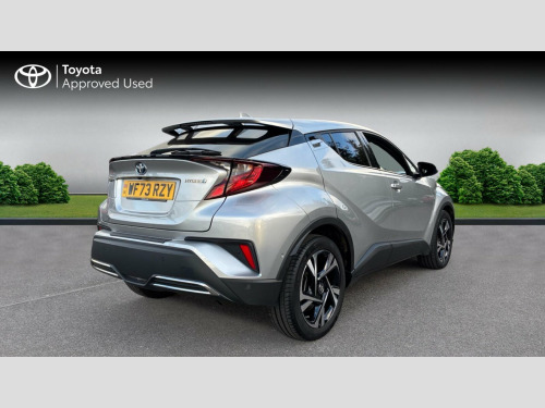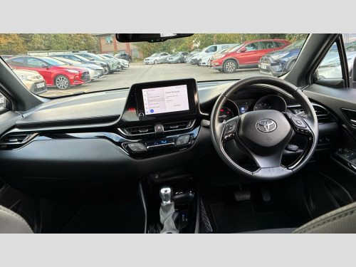 This 2023 Toyota C-HR VVT-h Design is a Toyota manufacturer approved vehicle with a full service history, having only had one owner and its MOT valid until October 2026. This Euro 6 compliant model features a 2.0L petrol hybrid engine and was last serviced at 19,854 miles on 23 September 2025. Inside, you'll find Dual-Zone Automatic Air Conditioning, heated front seats, and an 8in HD Toyota Smart Connect Multimedia System with wireless phone charging. The Design trim also benefits from a Parking Pack with front and rear sensors, and LED reflector headlights.